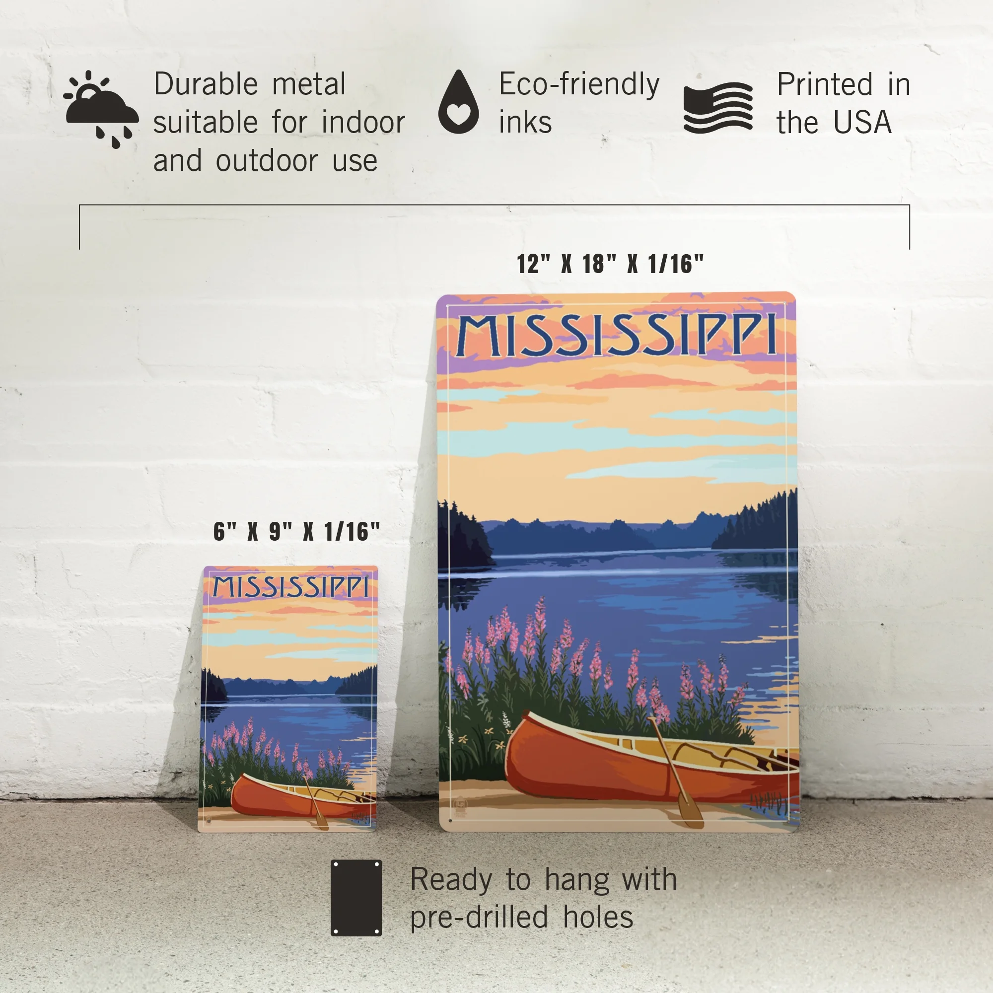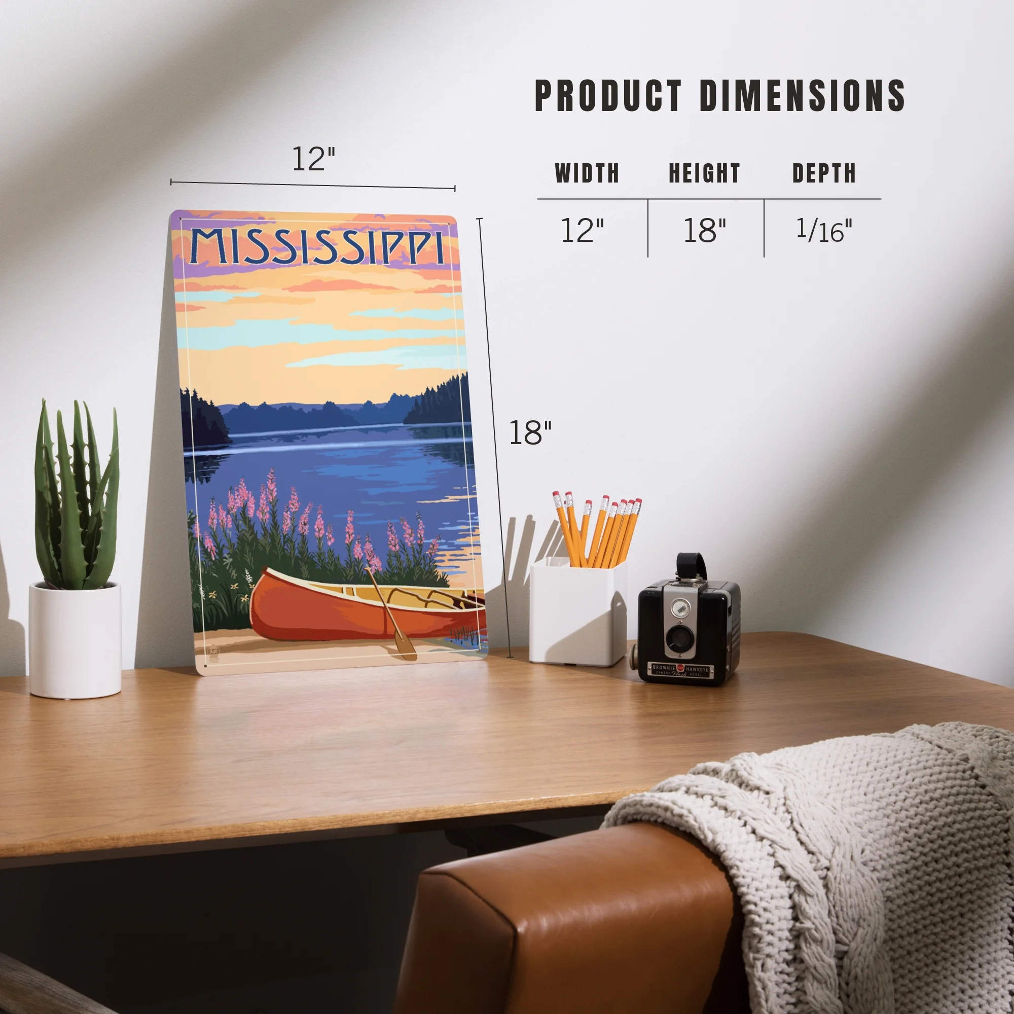 Mississippi, Canoe and Lake (12x18 Aluminum Art, Indoor Outdoor Metal Sign Decor)