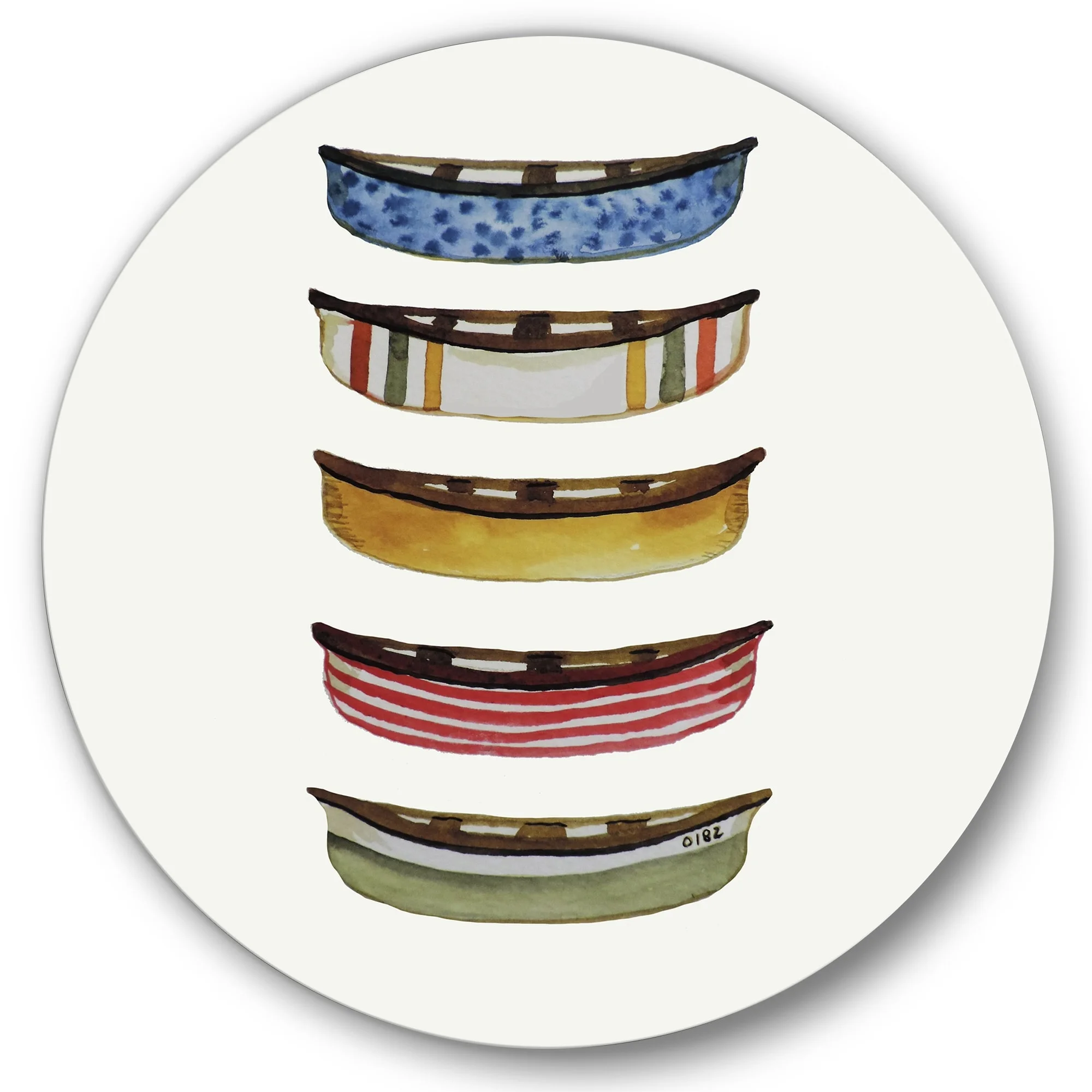 DESIGN ART Designart 'Five Canoes' Lake House Metal Circle Wall Art 23 X 23 - Disc Of 23 Inch
