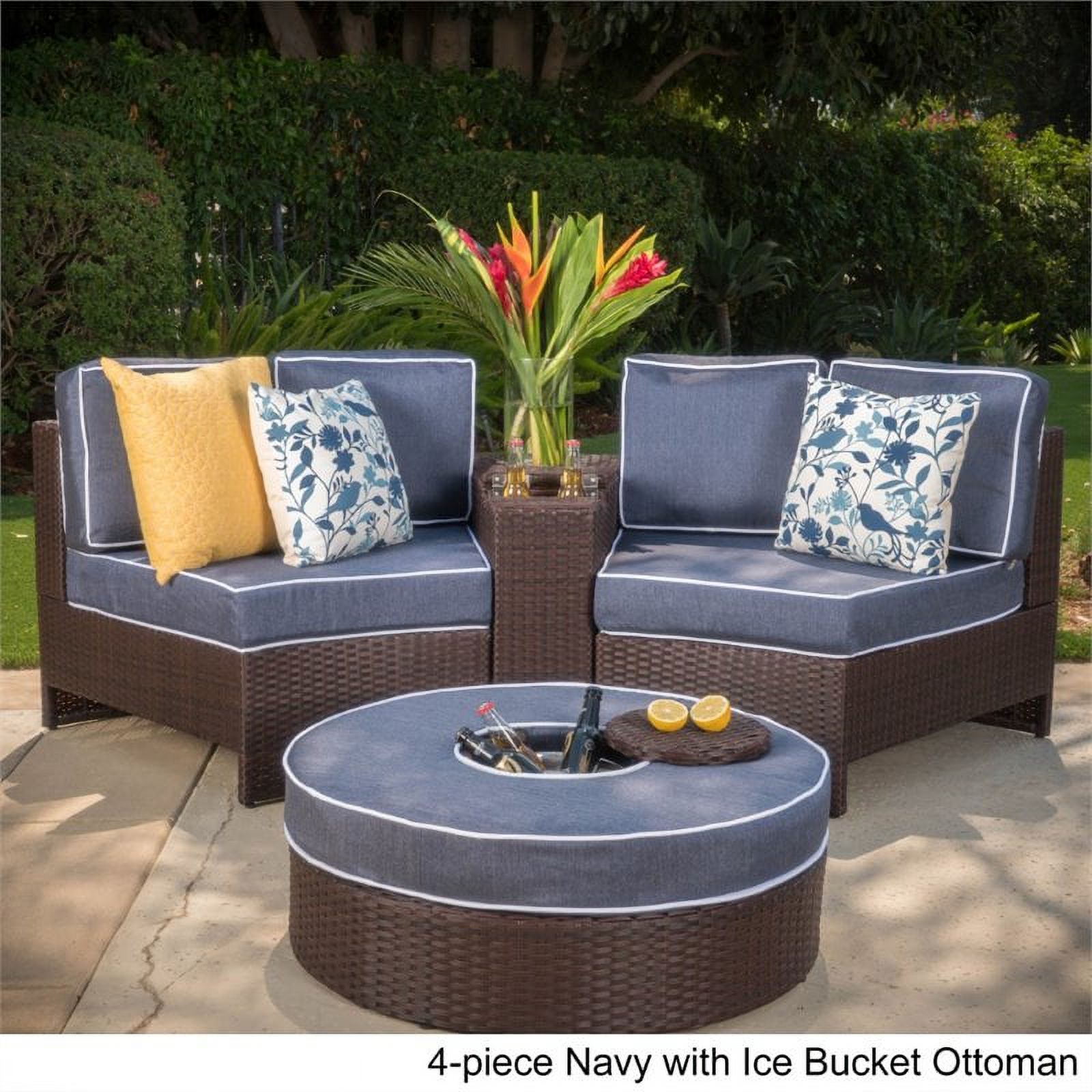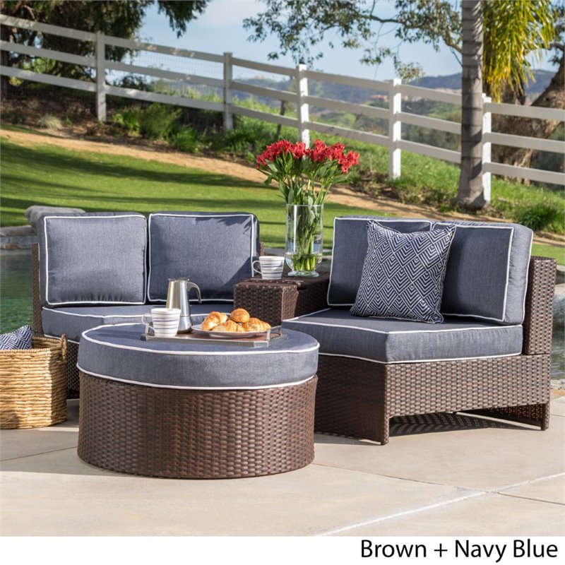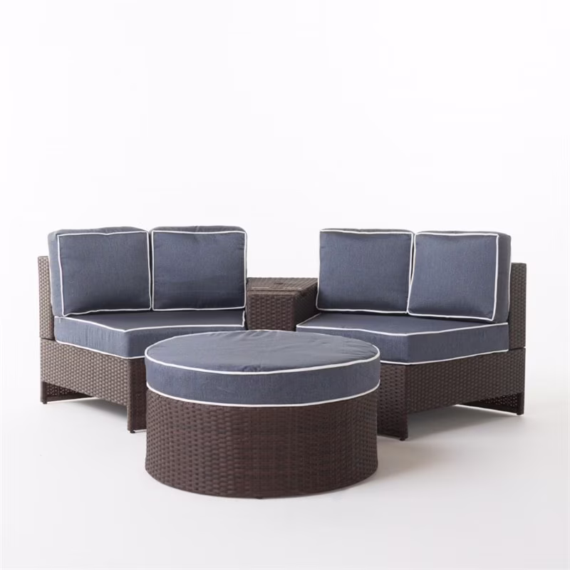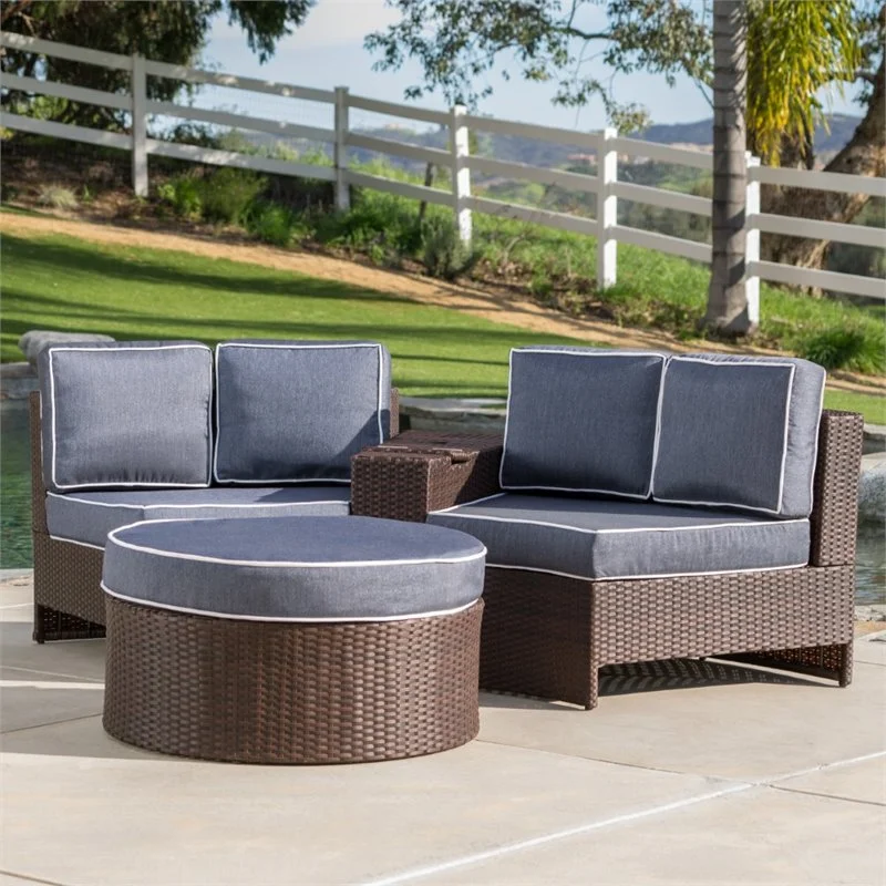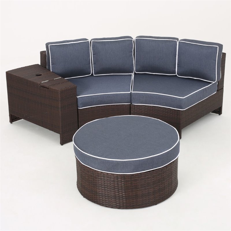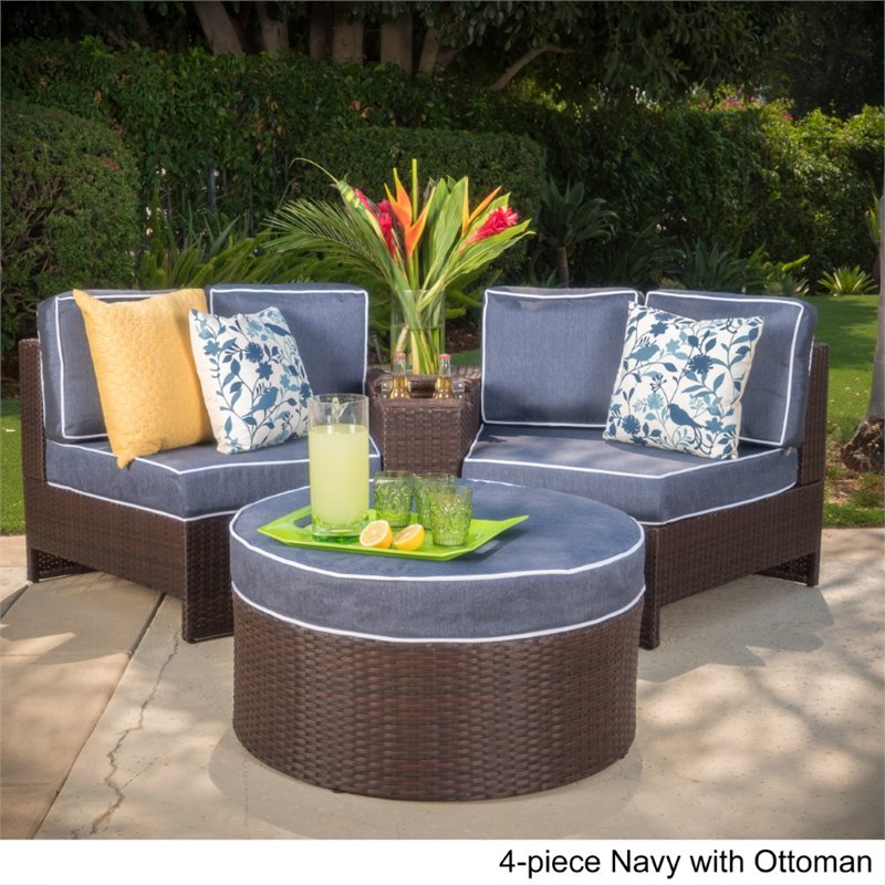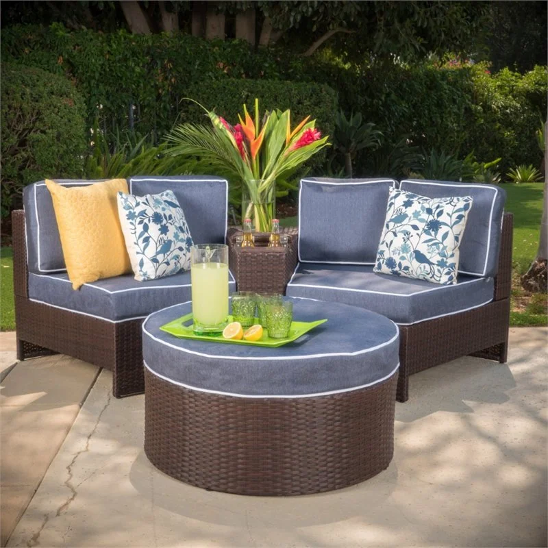 Noble House Madras Ibiza 4 Piece Outdoor Wicker Sectional Sofa Set in Navy Blue