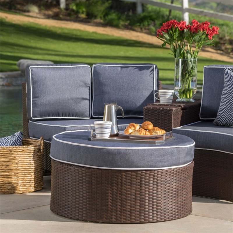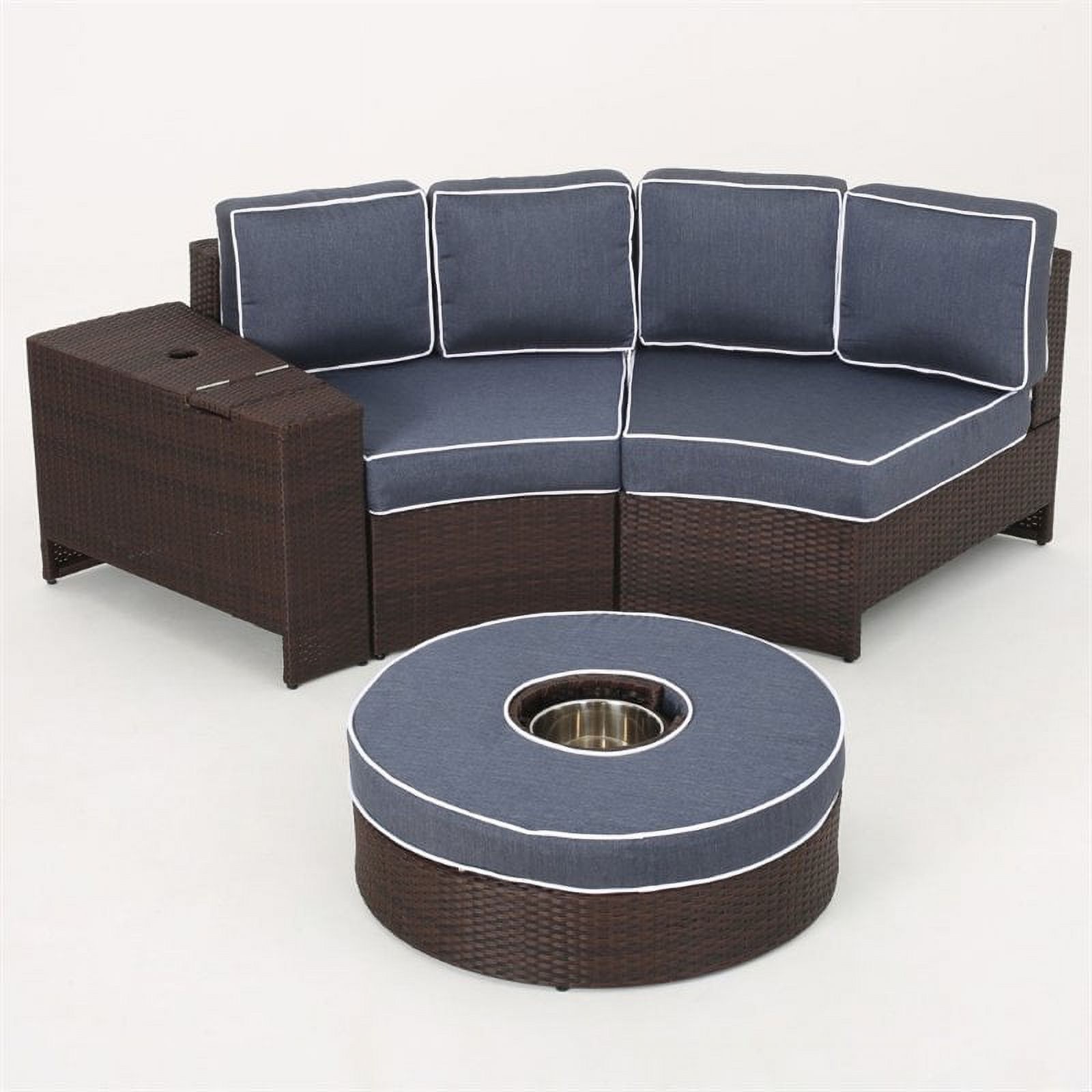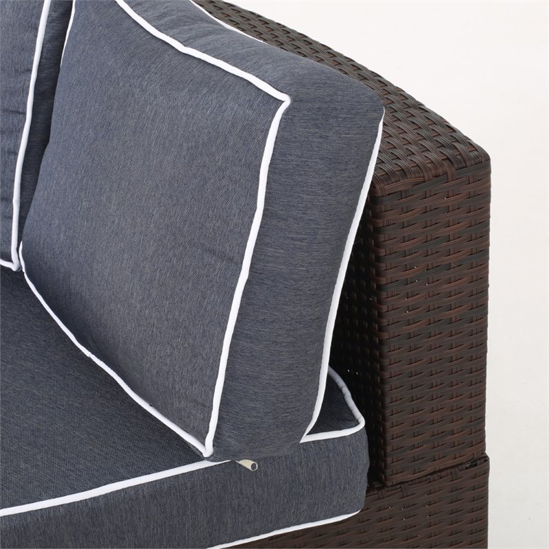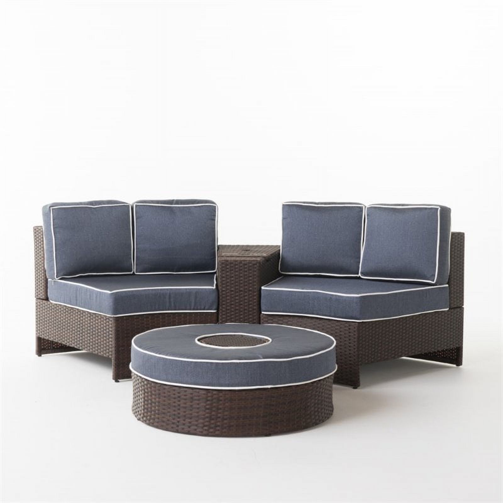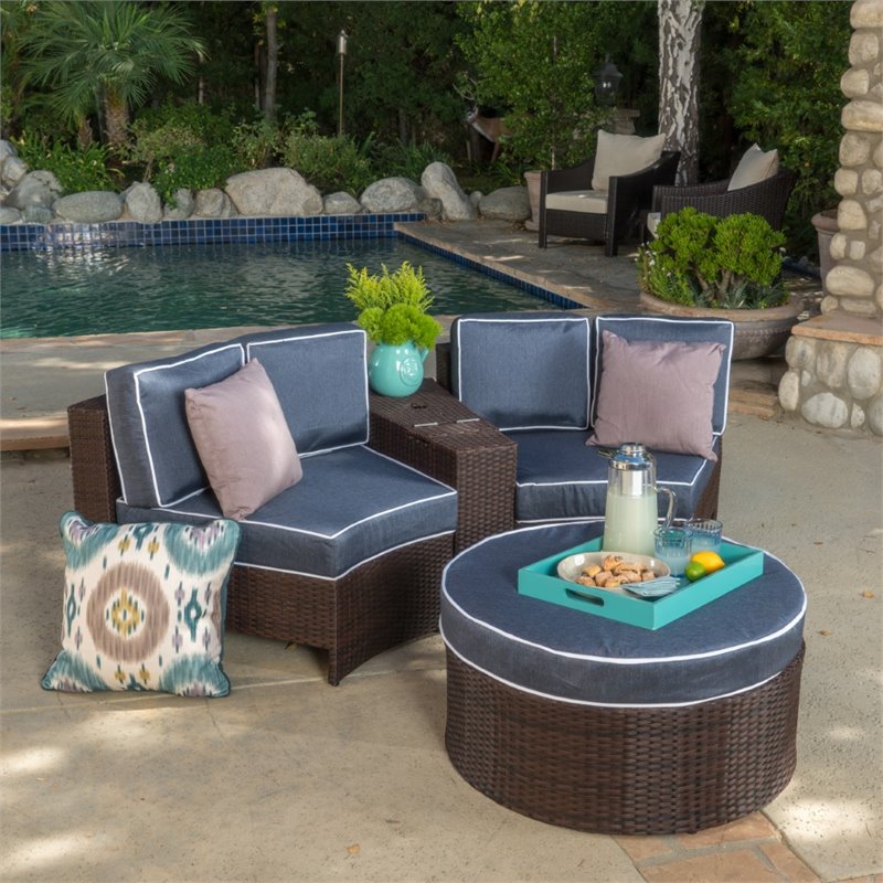 Noble House Madras Ibiza 4 Piece Outdoor Wicker Sectional Sofa Set in Navy Blue