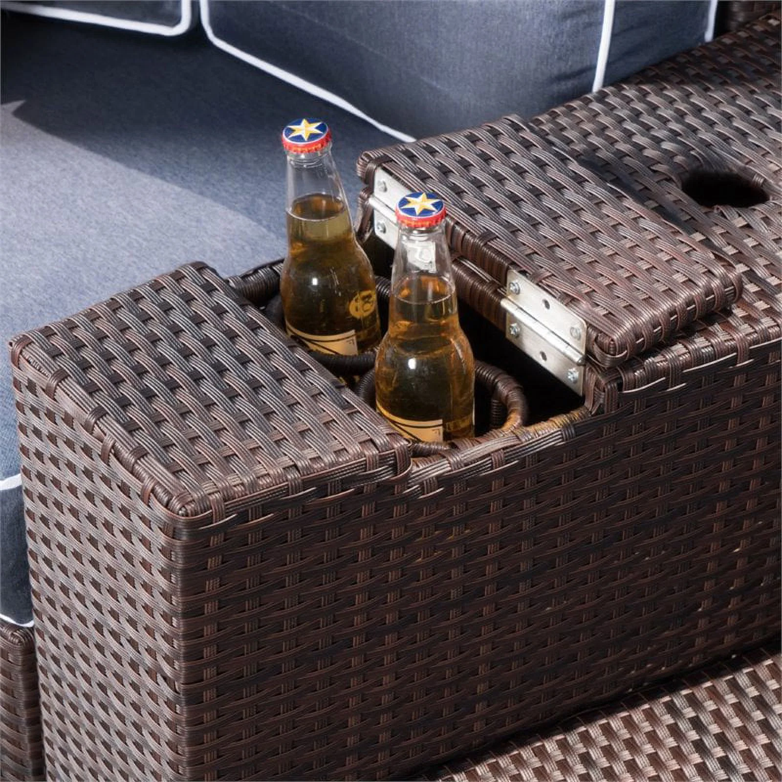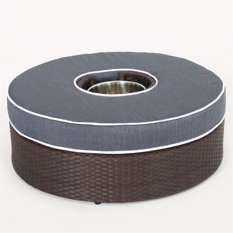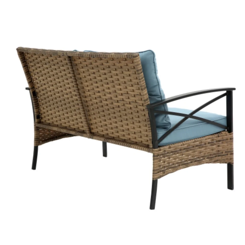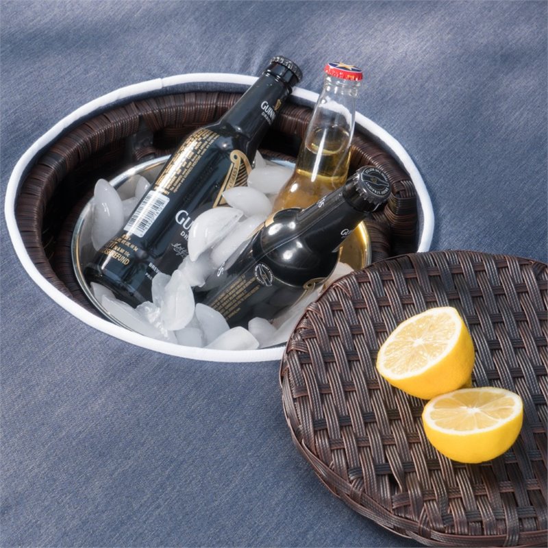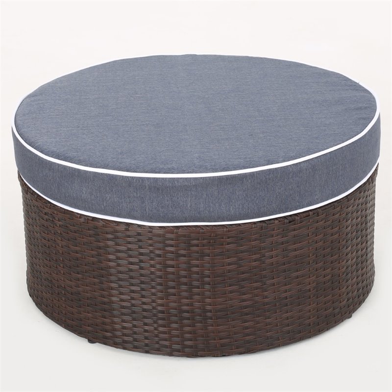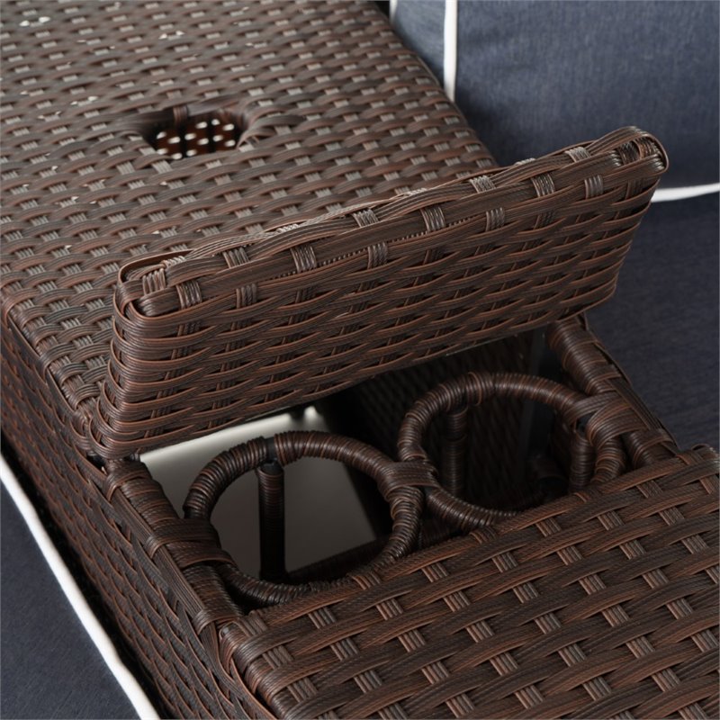 Noble House Madras Ibiza 4 Piece Outdoor Wicker Sectional Sofa Set in Navy Blue