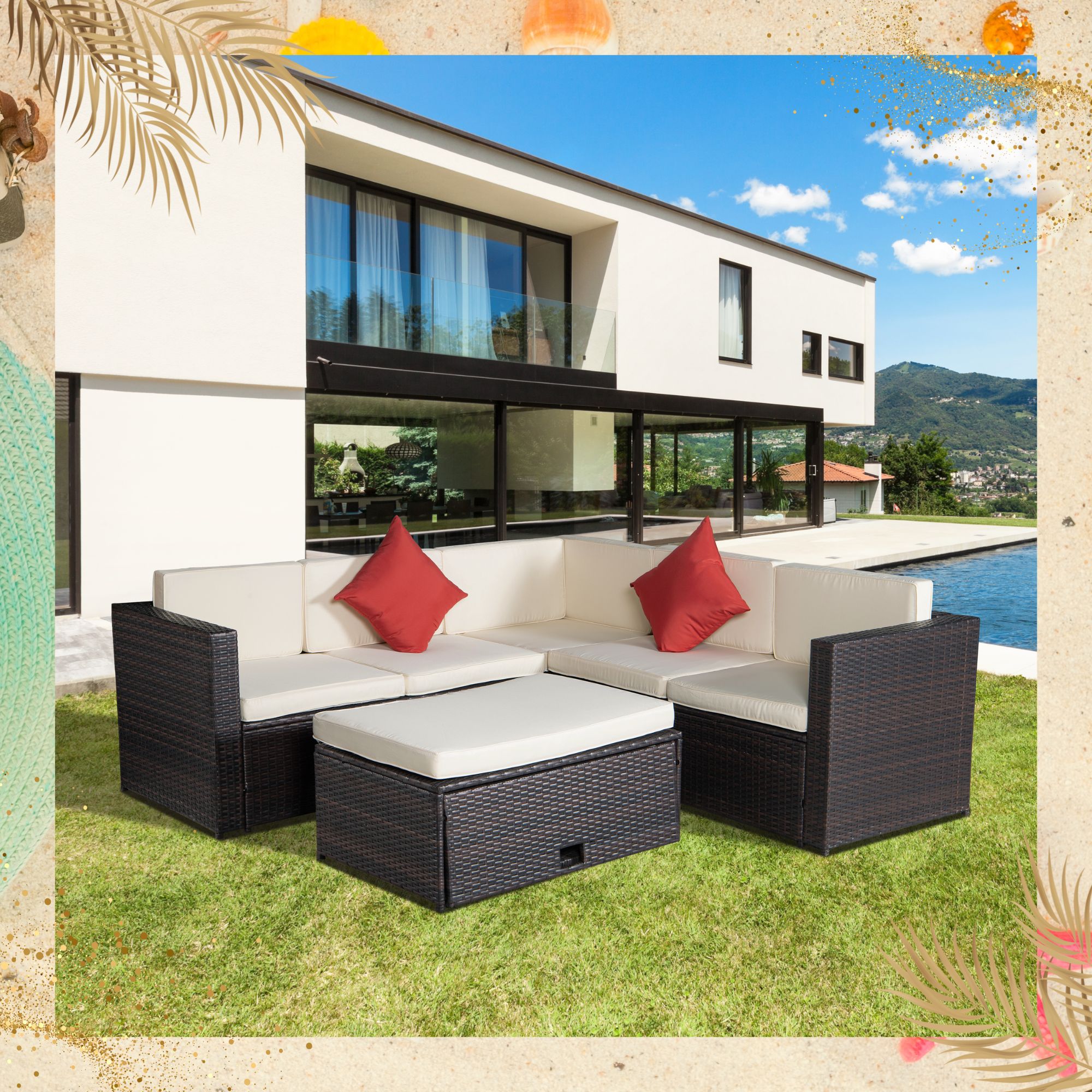 Supfirm 4 Piece Patio Sectional Wicker Rattan Outdoor Furniture Sofa Set with Storage Box Grey