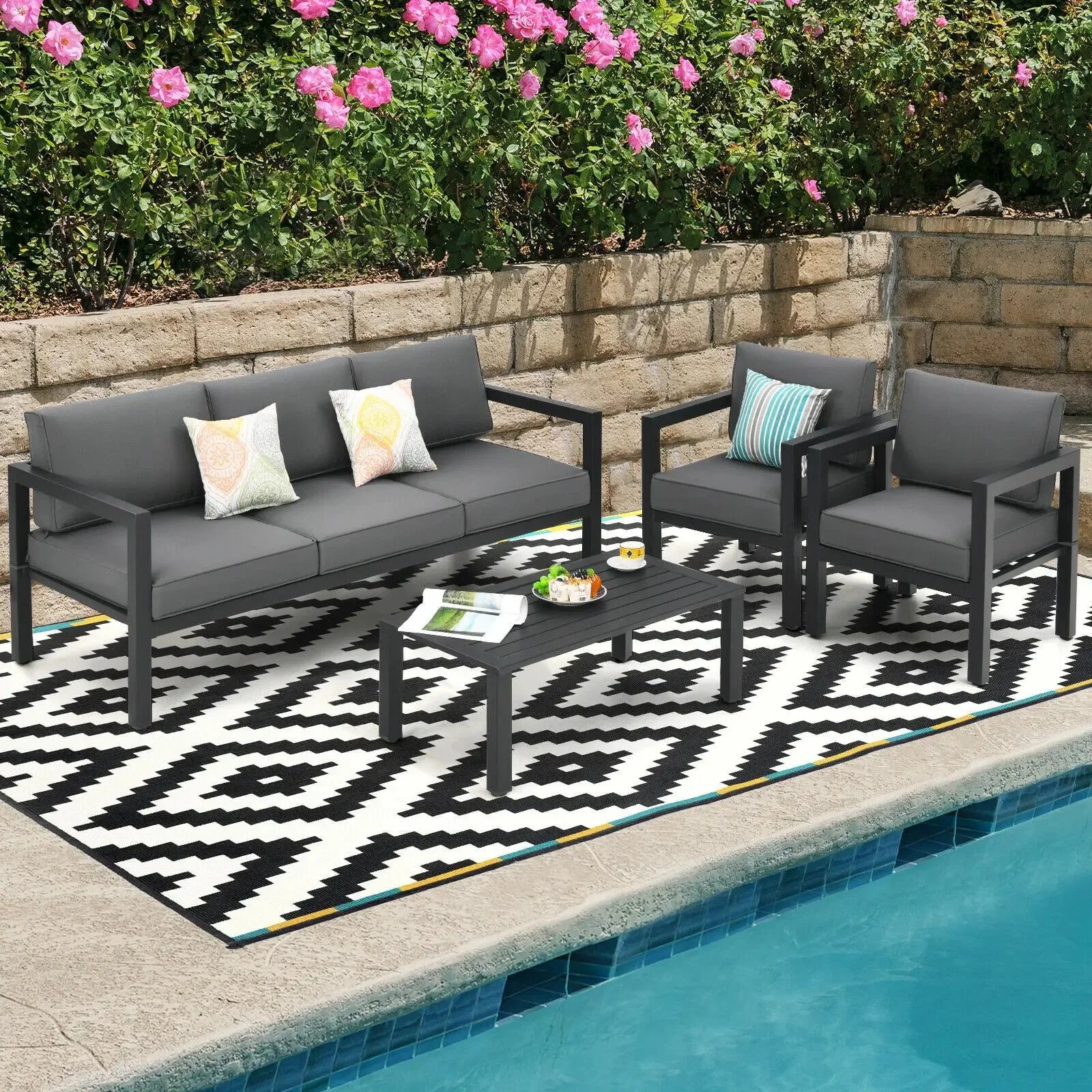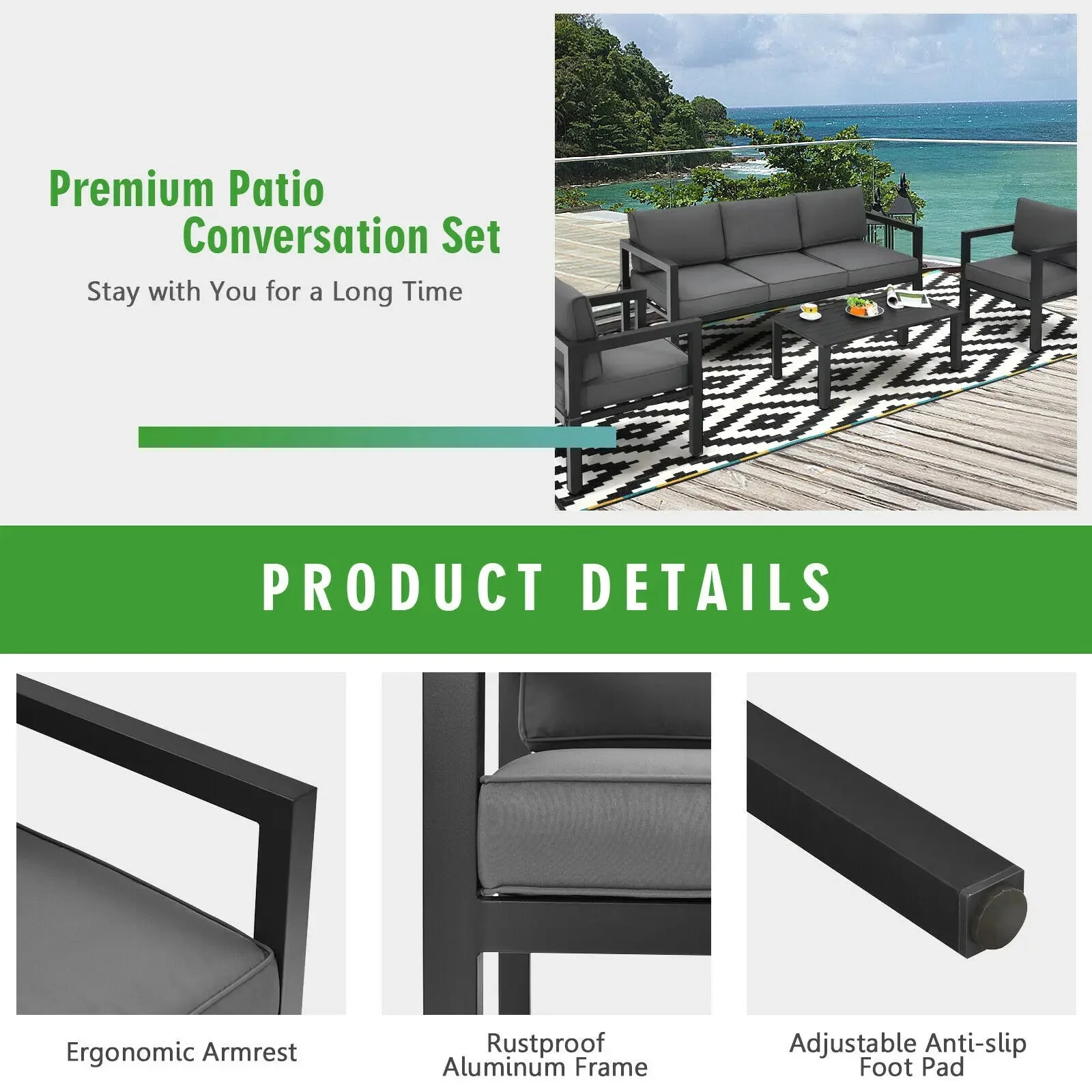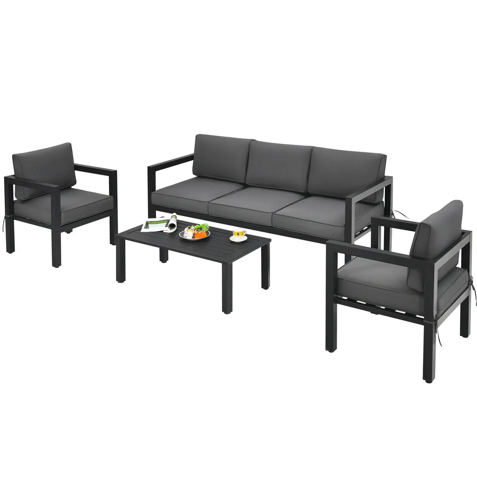 Patiojoy 4-Piece Outdoor Patio Furniture Set Sectional Sofa Set Coffee Table NP10109WL-GR