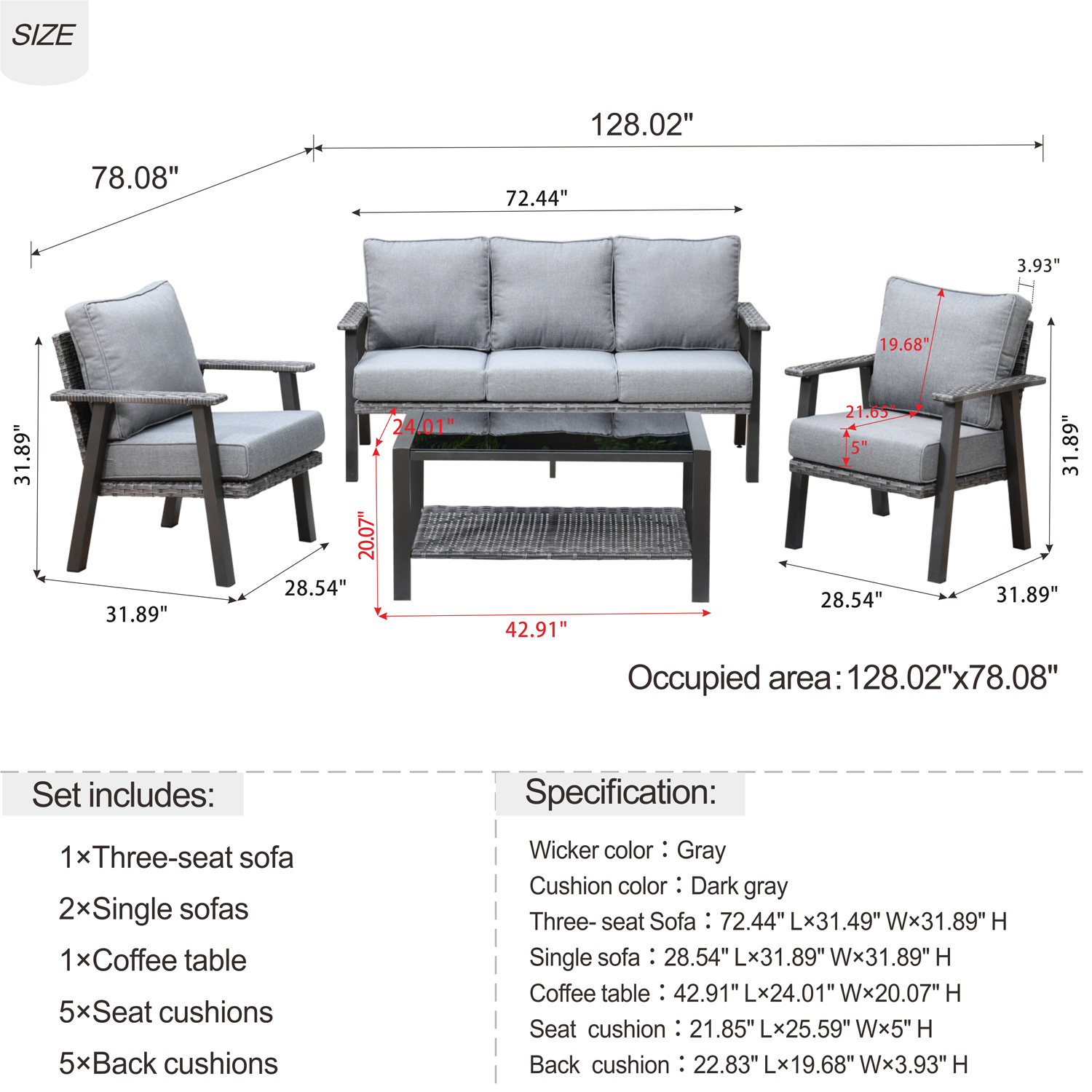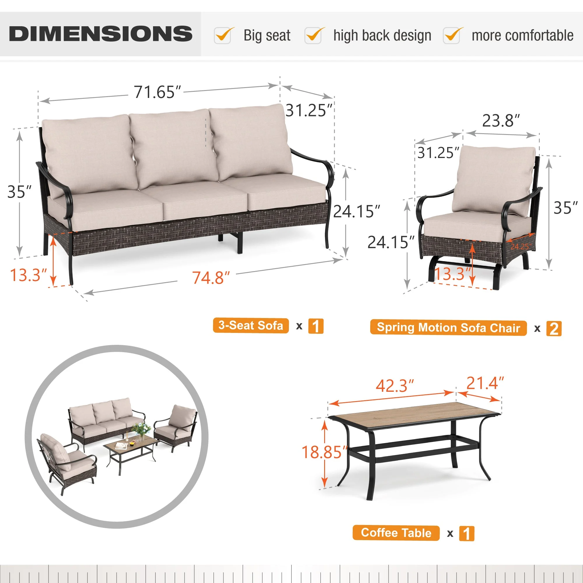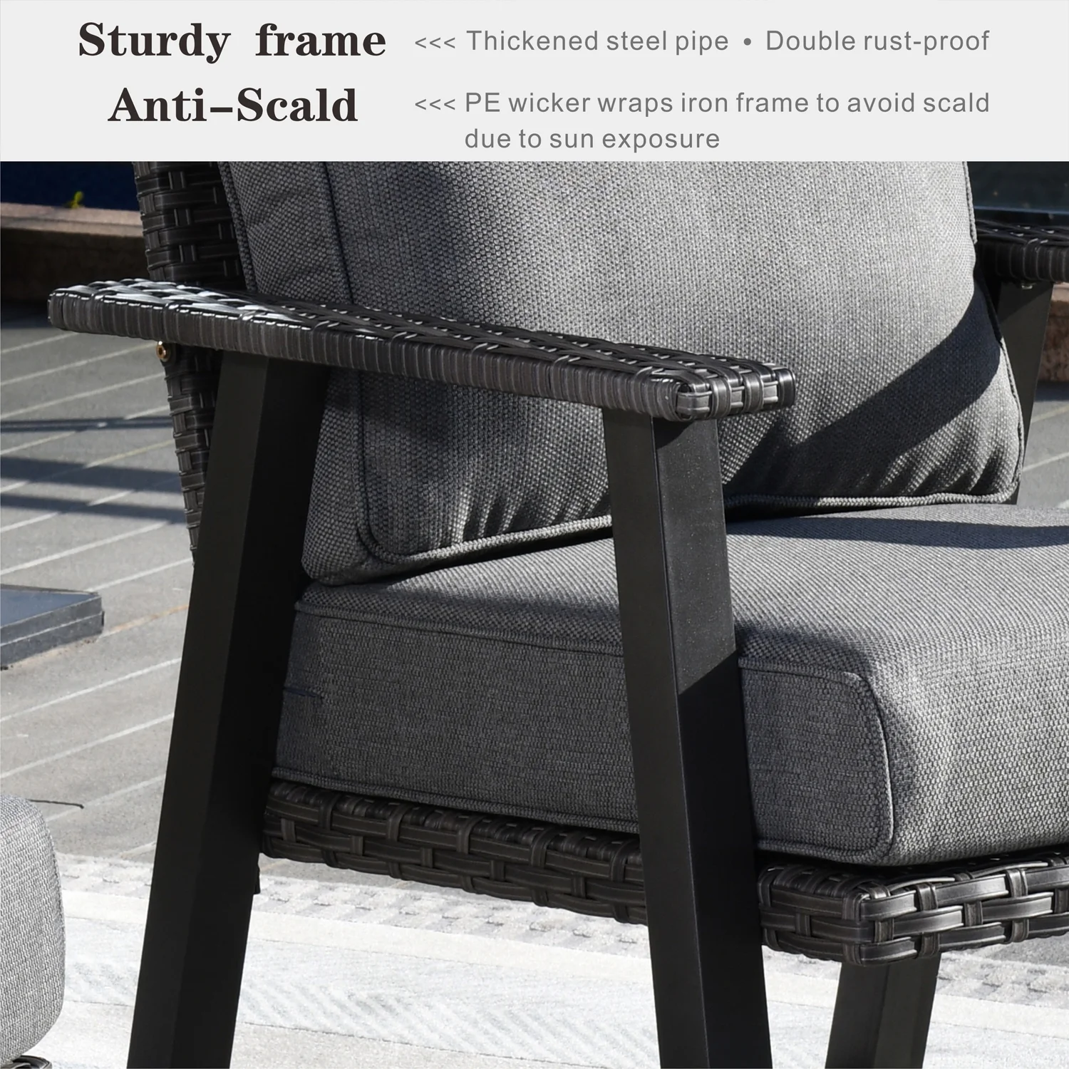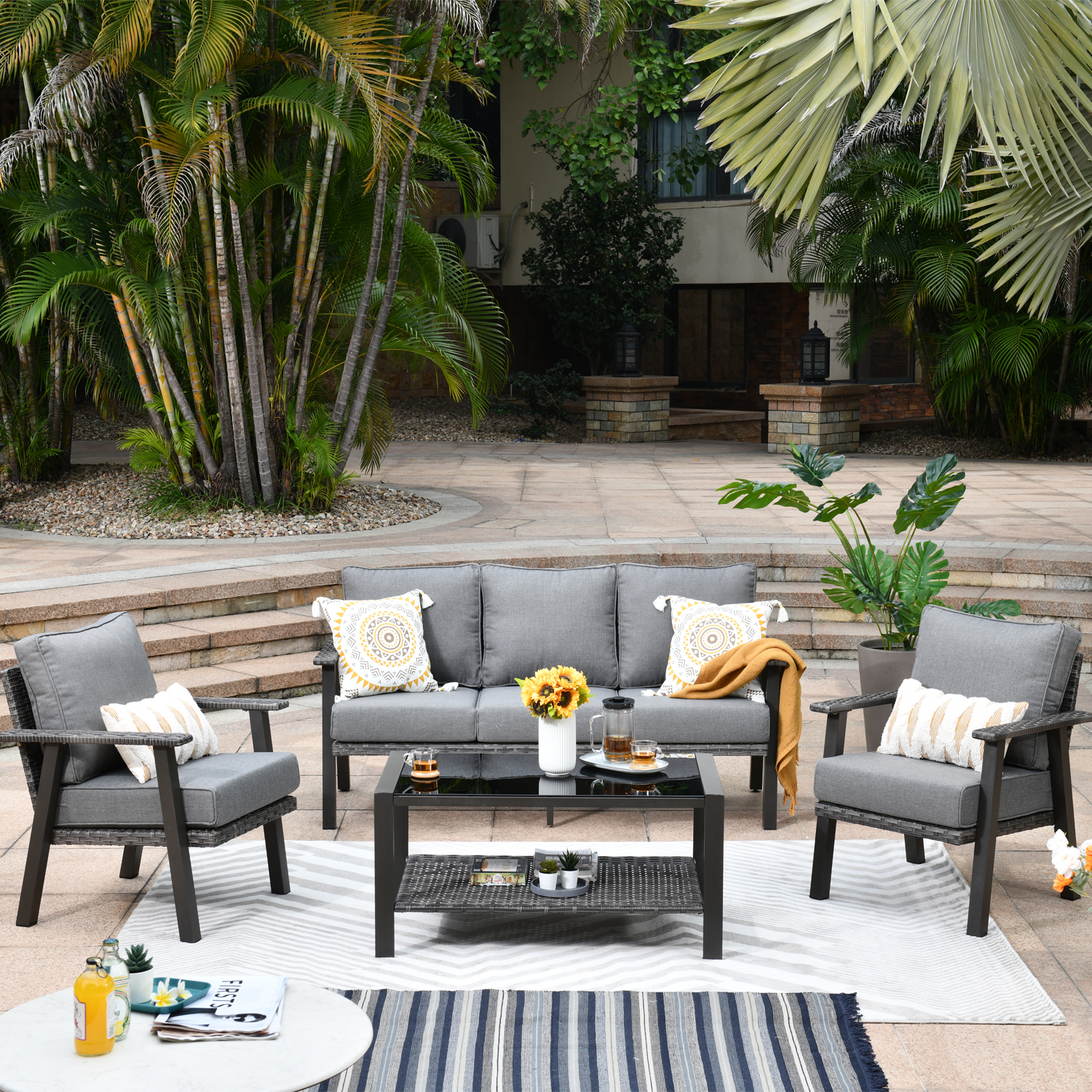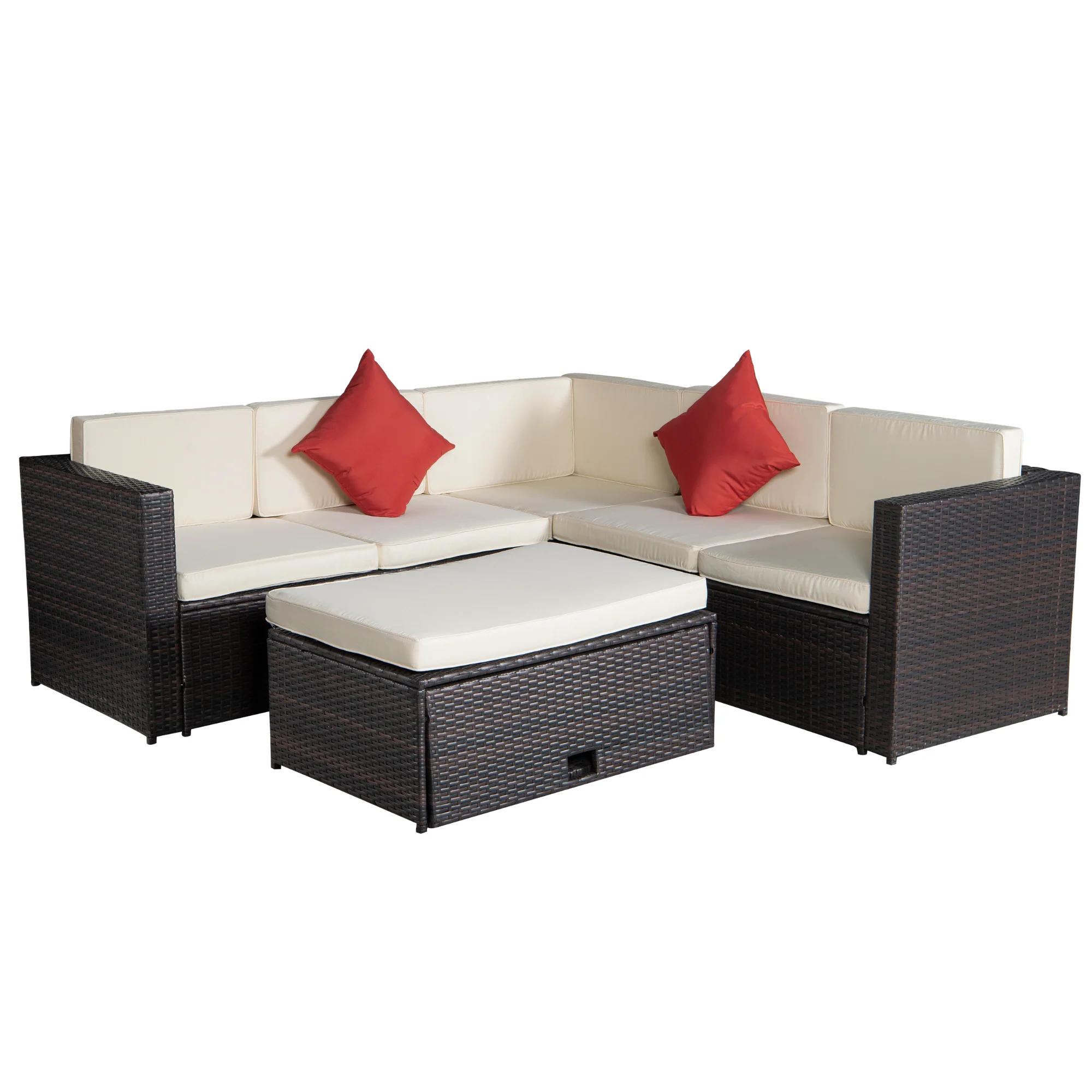 Ovios 4 Piece Outdoor Furniture All-Weather Patio Conversation Set Wicker Sectional Sofa with 5" Cushions
