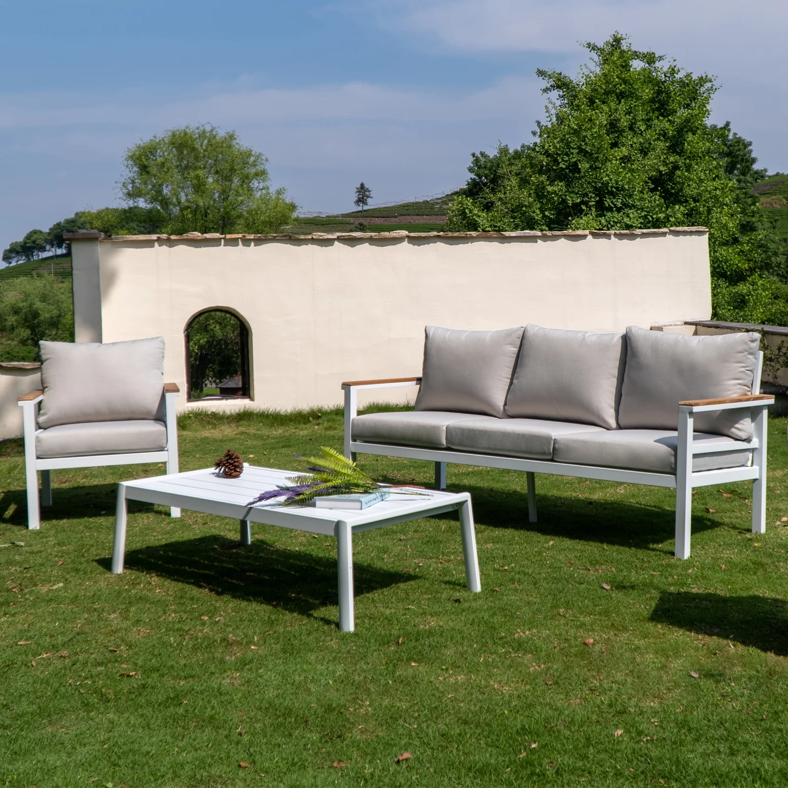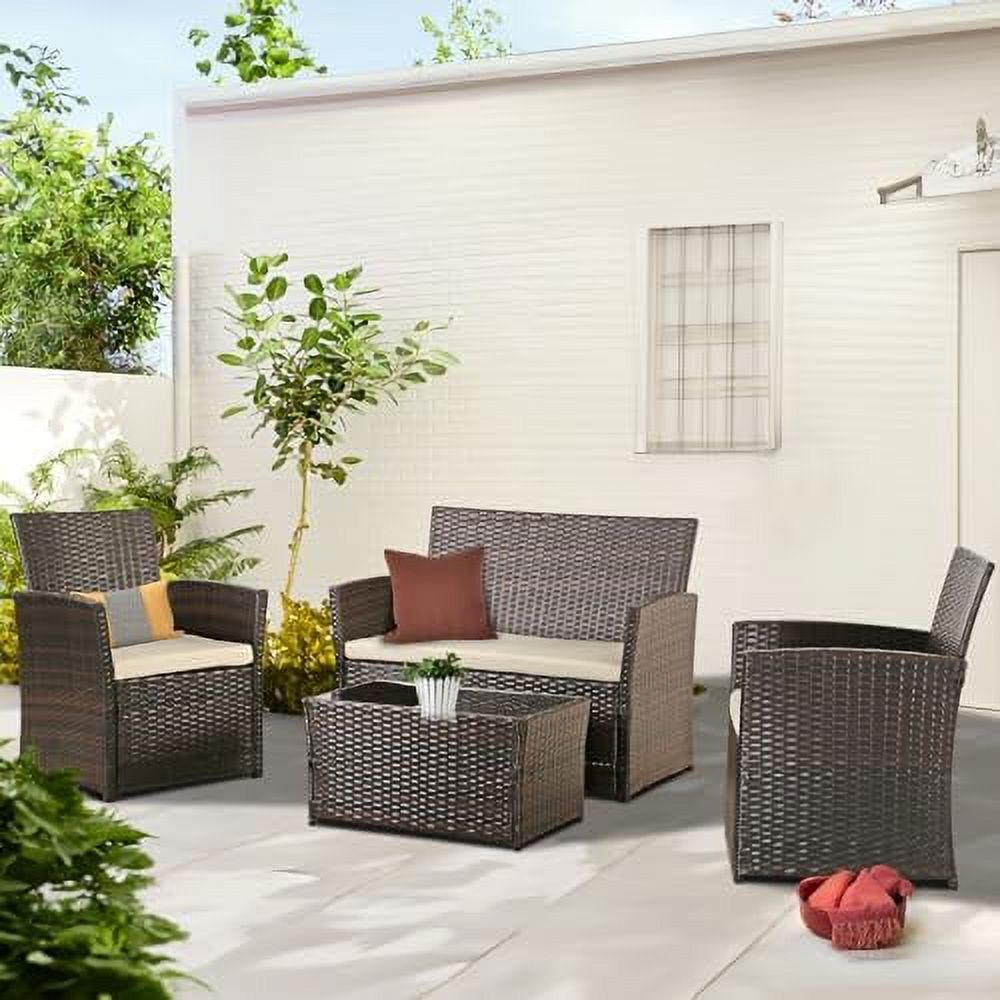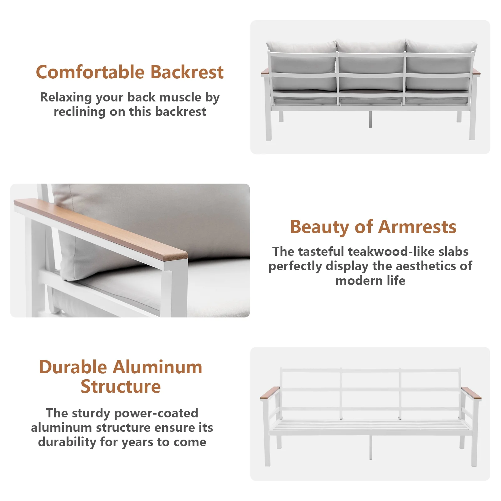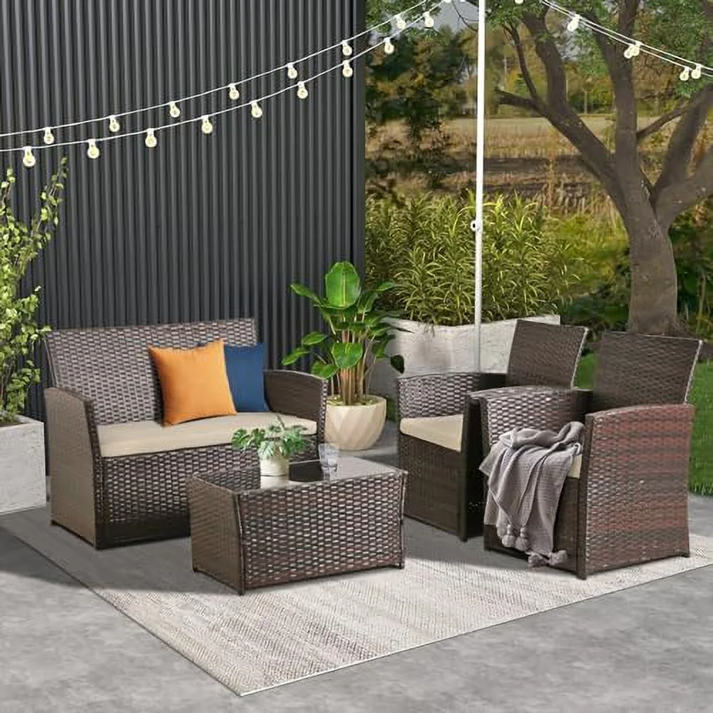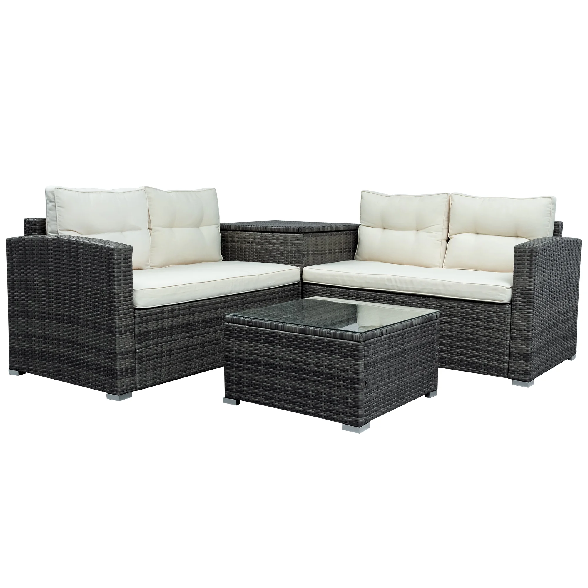 Outdoor Aluminum Furniture Sets 4 Pieces Sofa Set Patio Sectional Sofa Conversation Set with Table