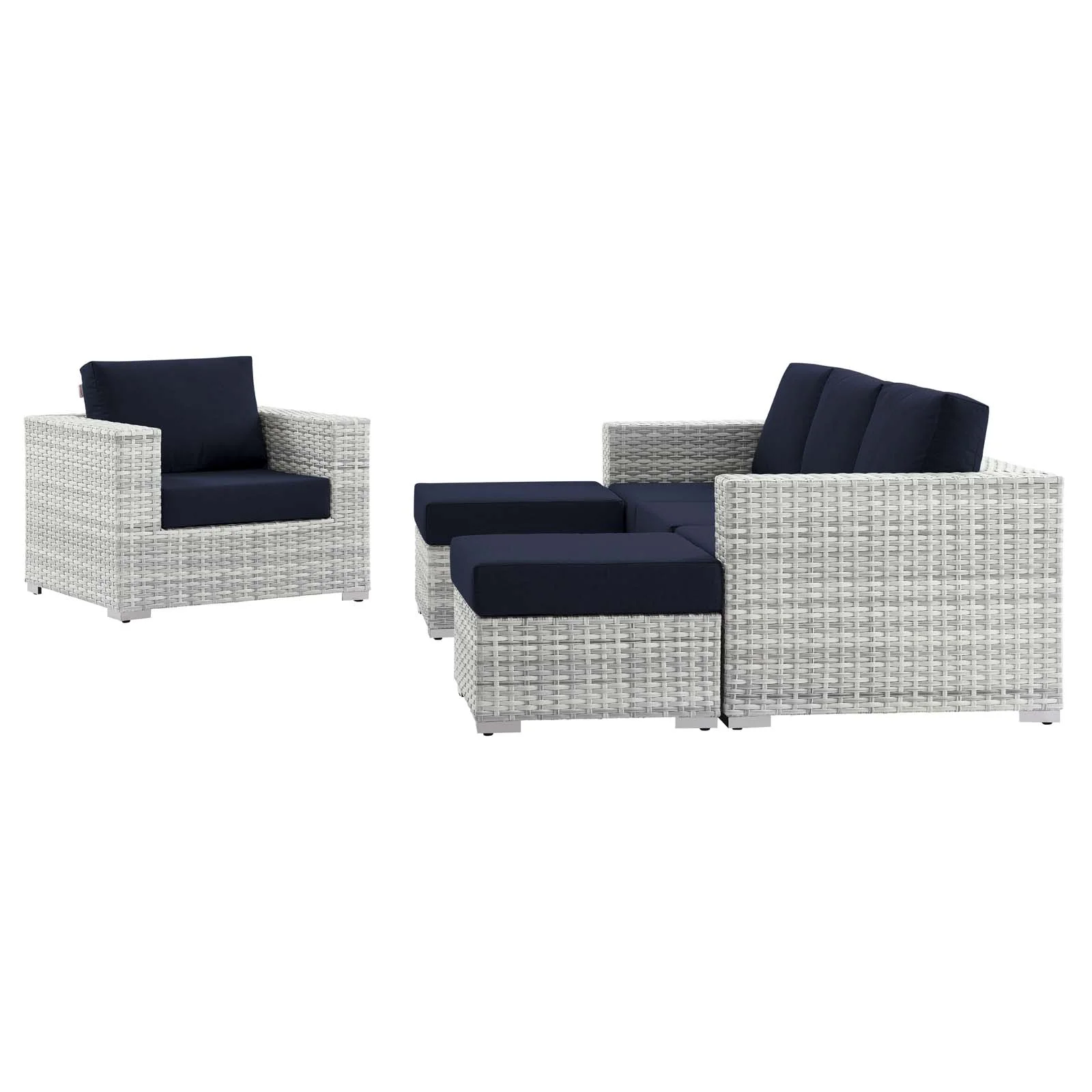 Modway Saybrook Outdoor Patio Upholstered 5-Piece Sectional Sofa in Navy