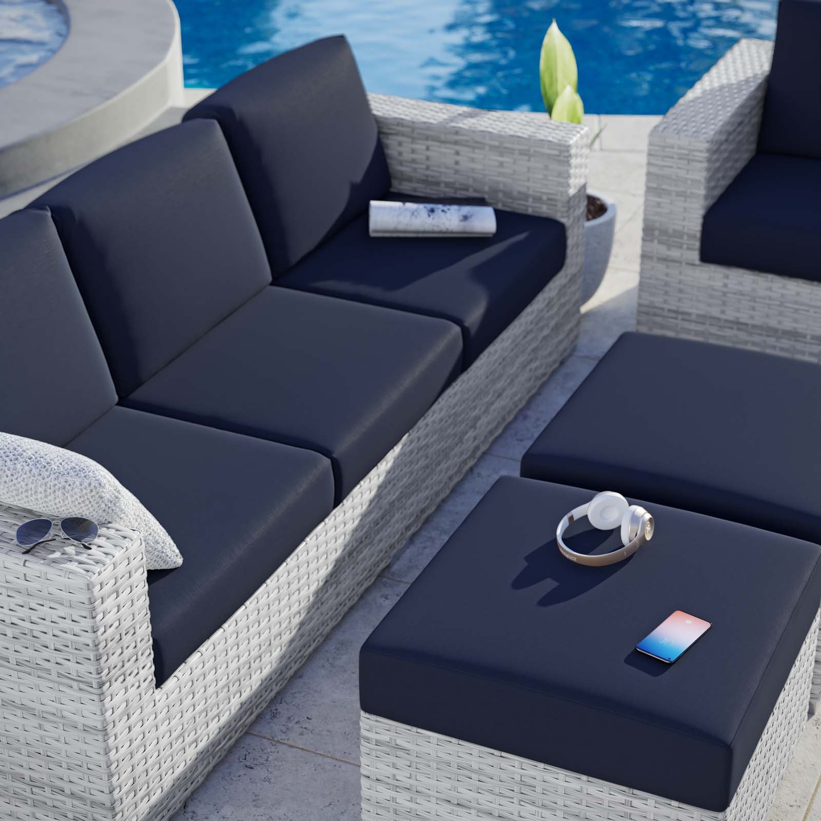 Modway Saybrook Outdoor Patio Upholstered Sectional Sofa Corner Chair in Navy