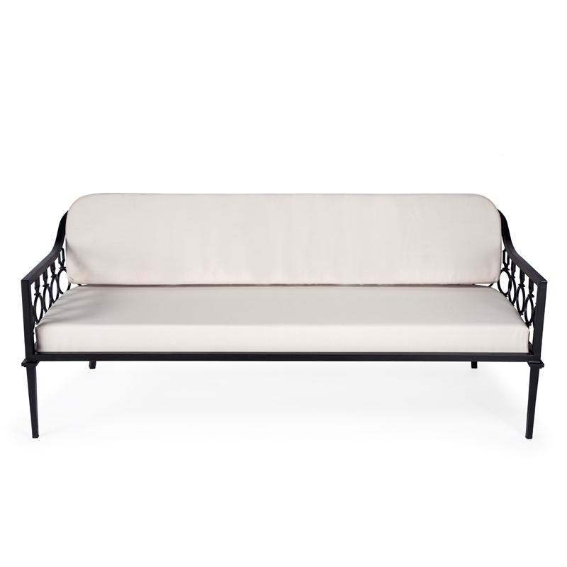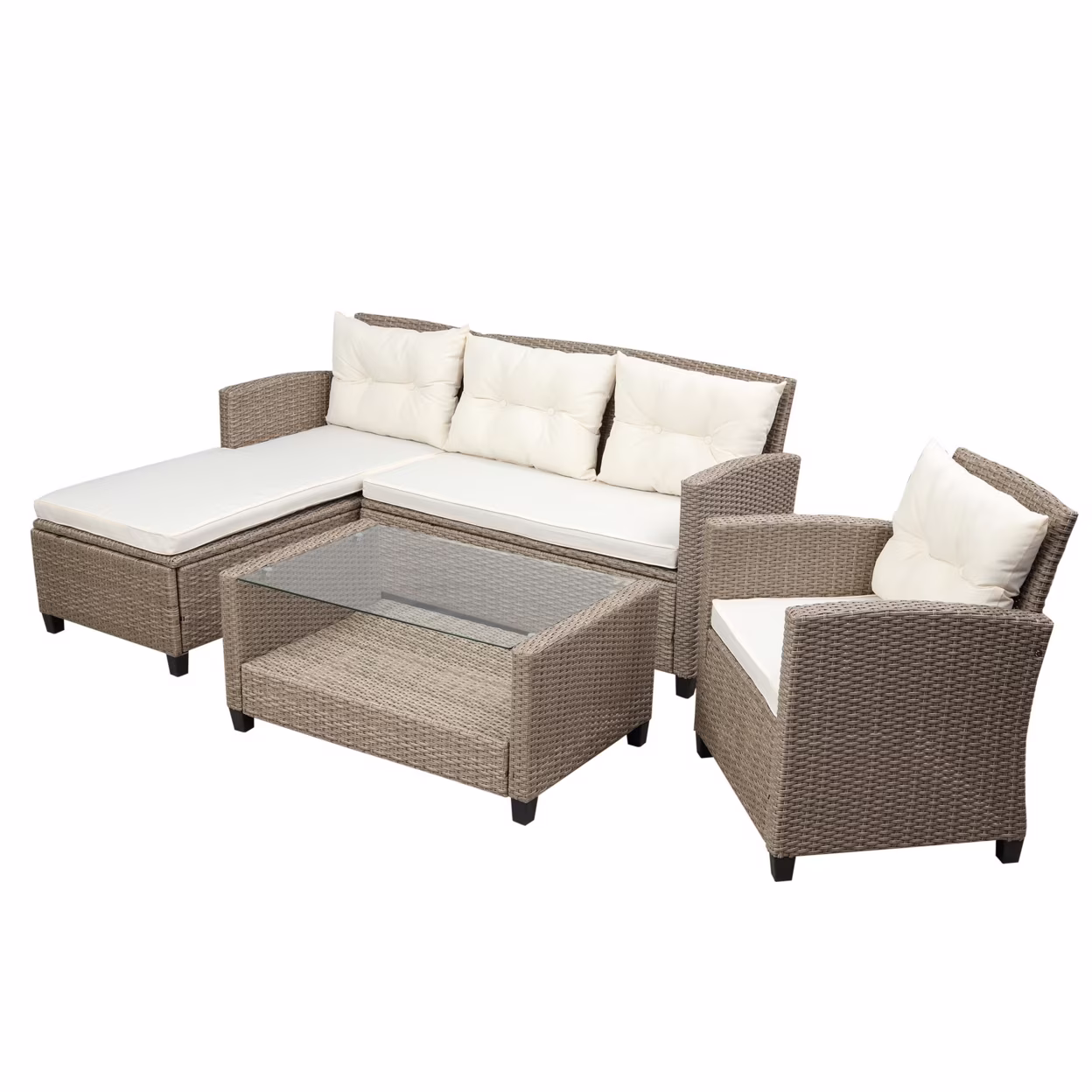 Leo 4 Piece Outdoor Sofa Conversation Set, Steel Frames and Rattan, Beige- Saltoro Sherpi