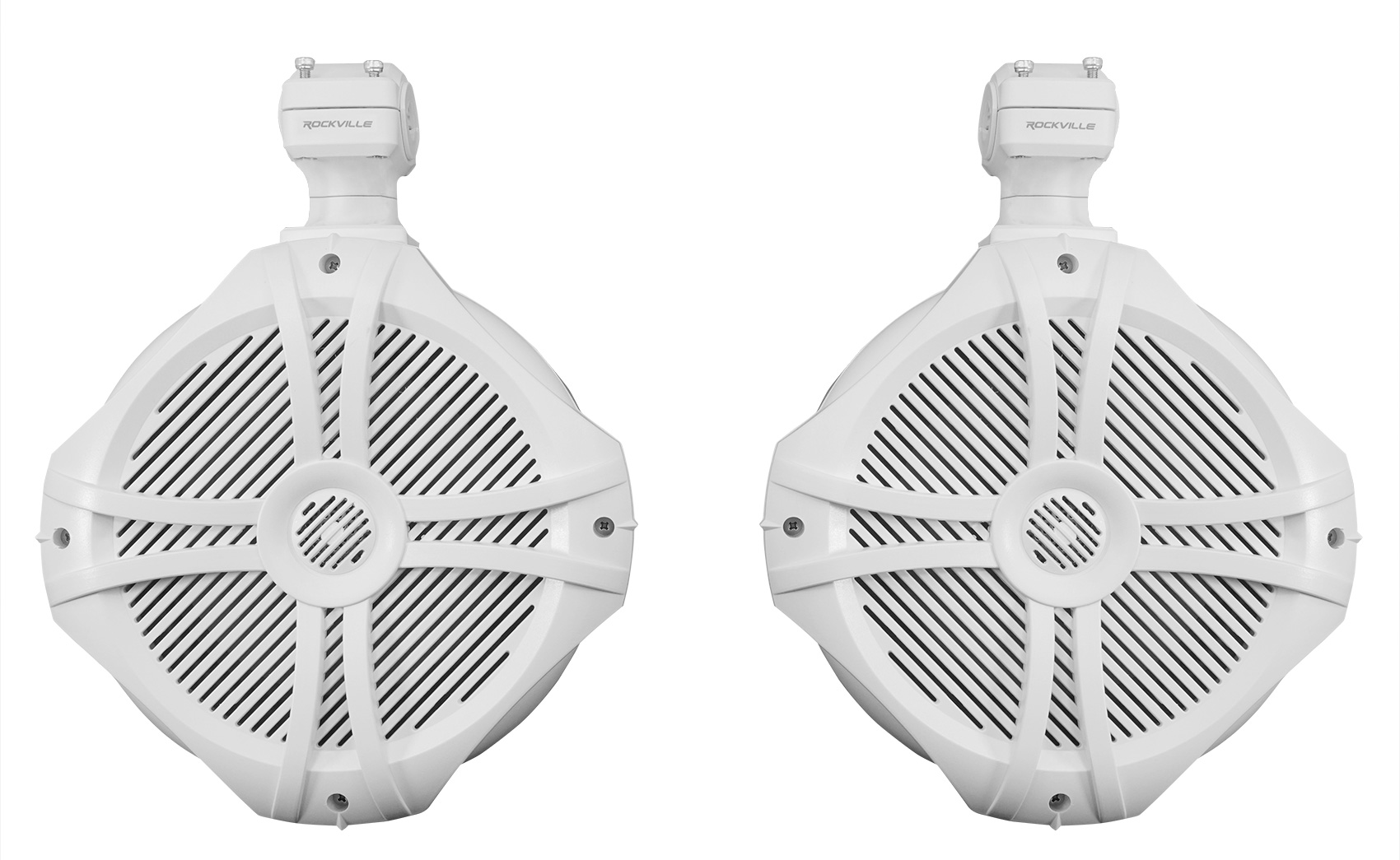 (2) Rockville RWB90W White 8" Marine Wakeboard Swivel Tower Speakers+Receiver