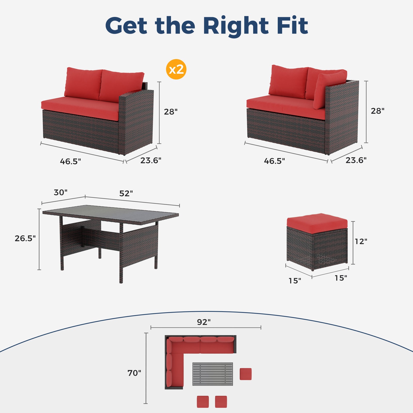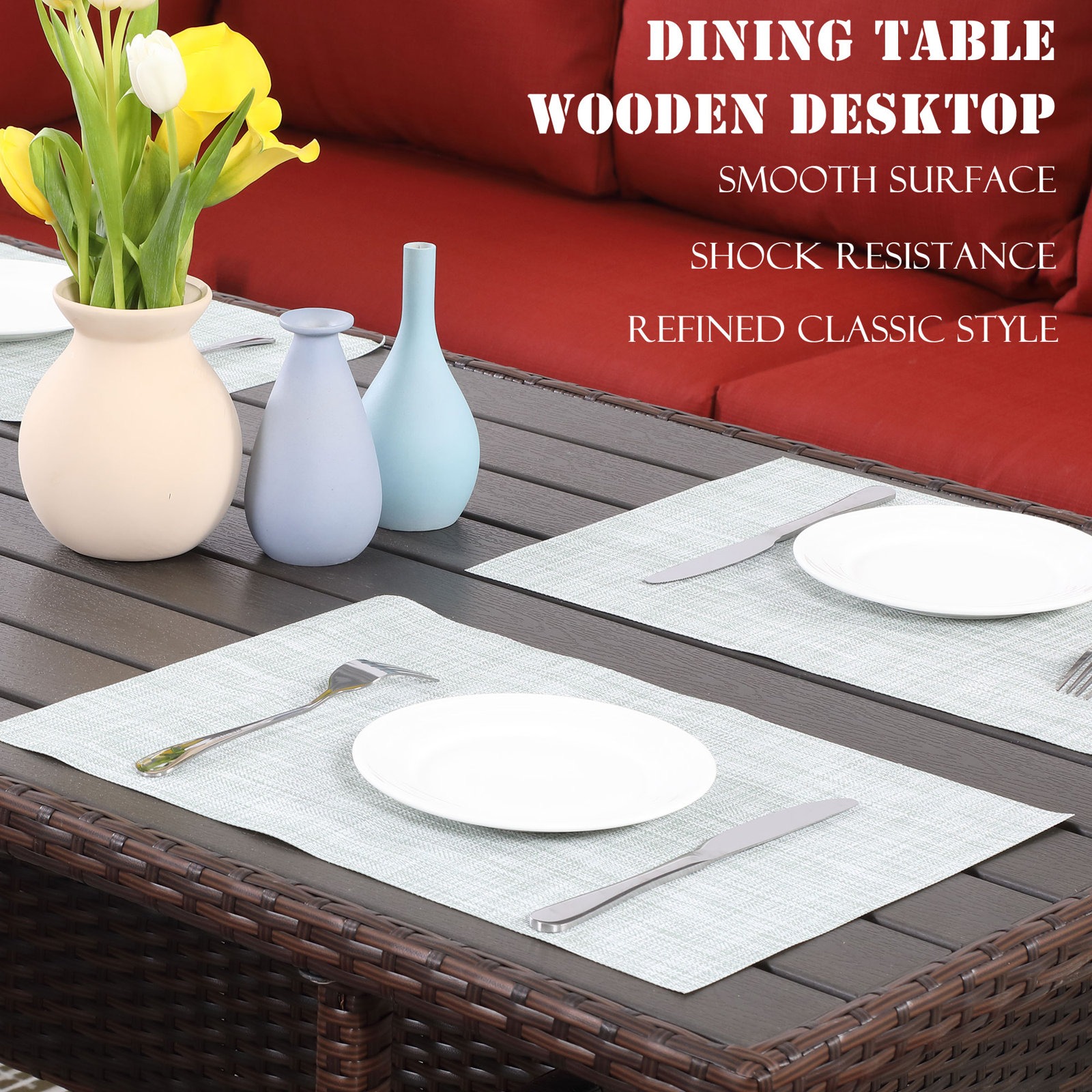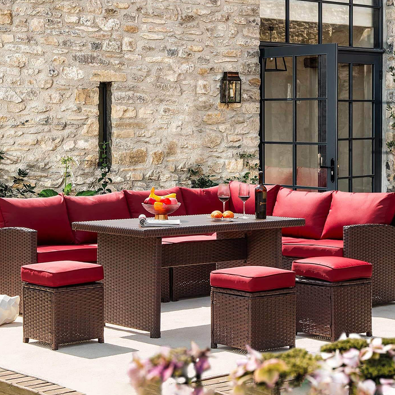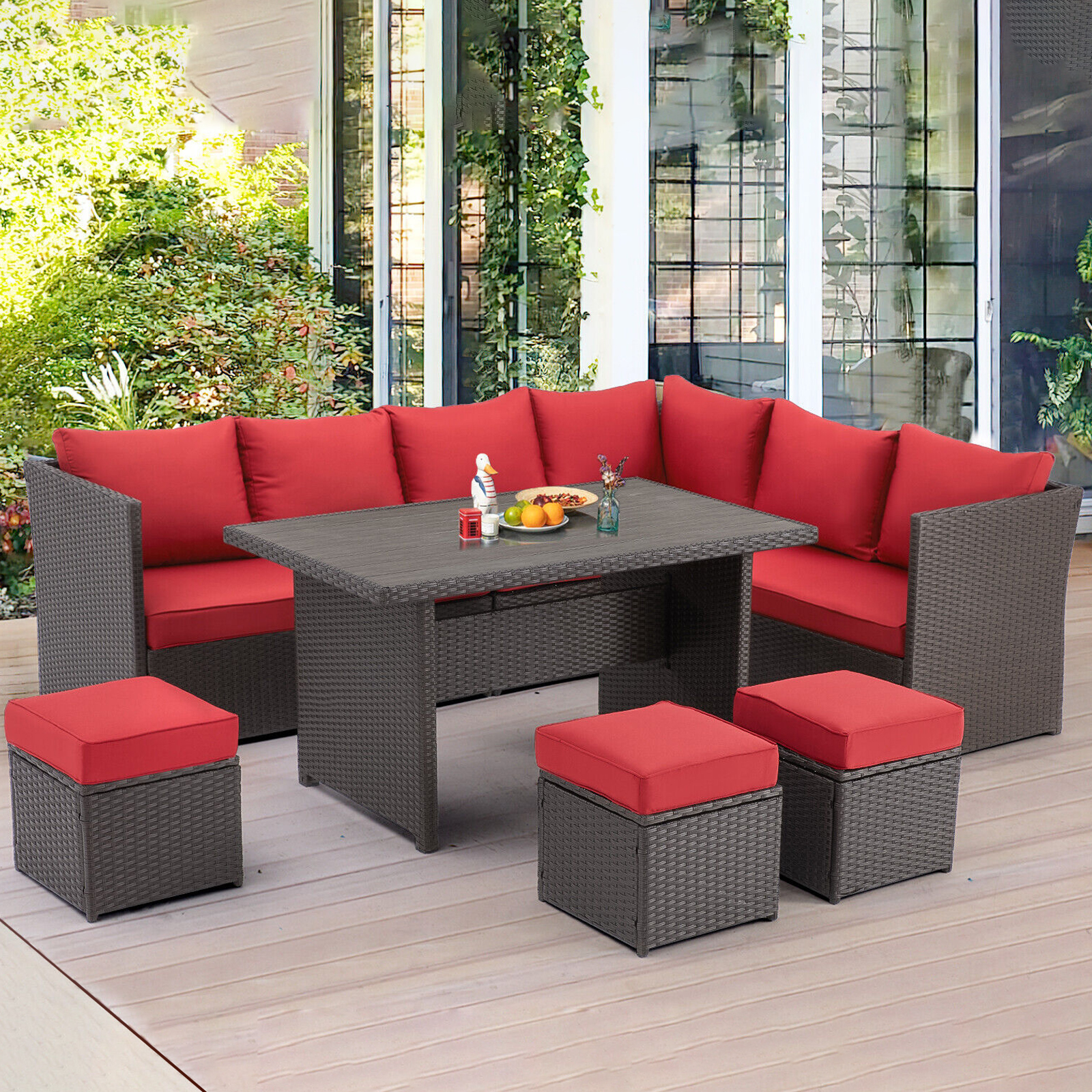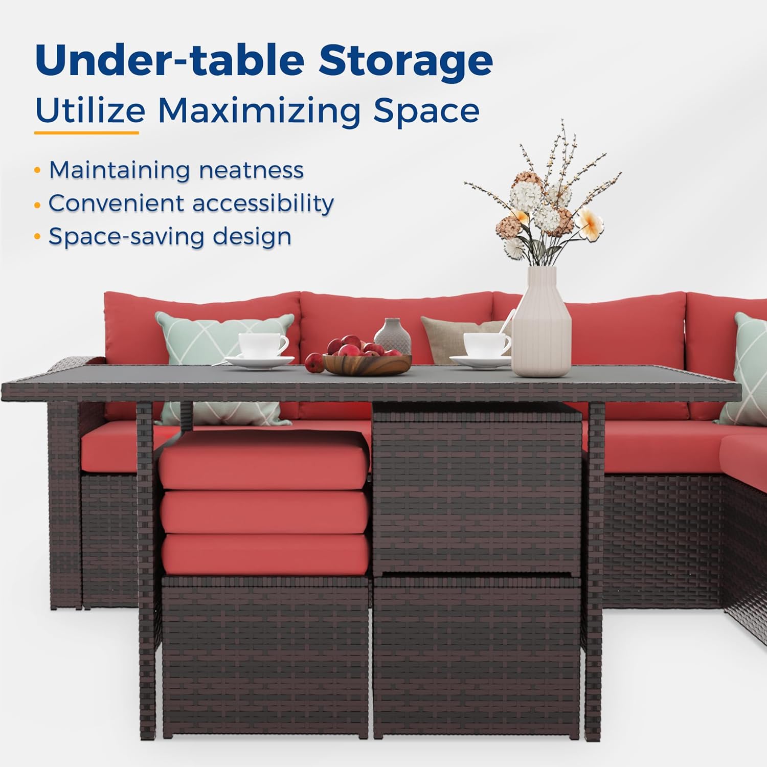 Glavbiku 7 Piece Outdoor Patio Furniture Set, Outdoor Rattan Wicker Dining Table Set with 9 Seat,Red