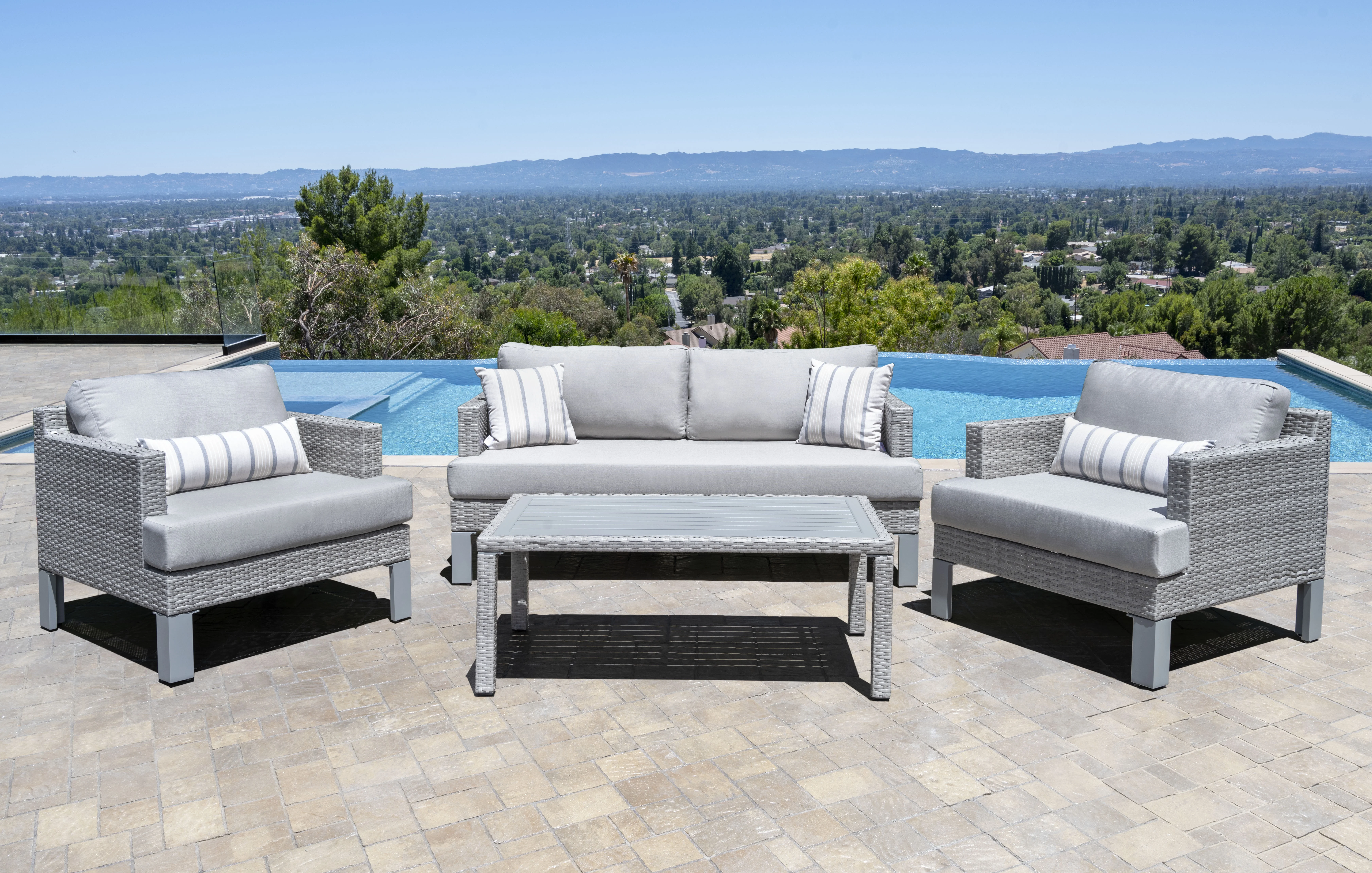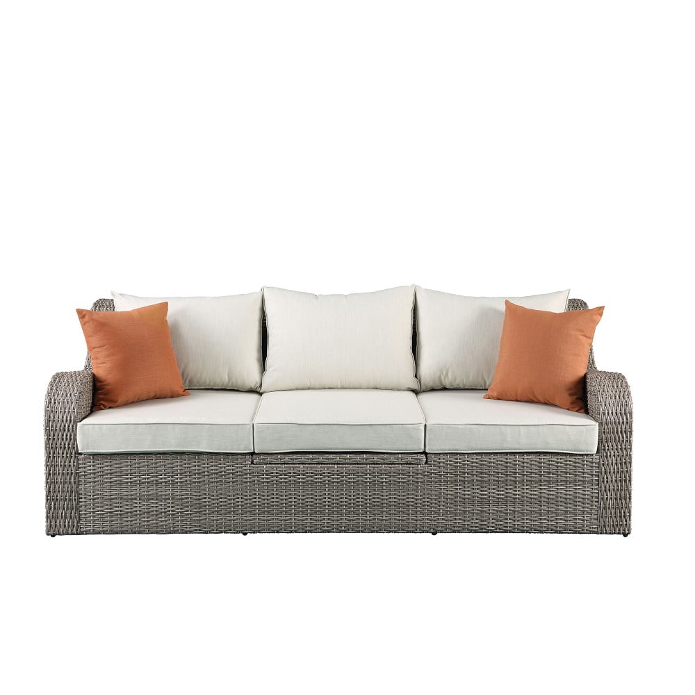 LANTRO JS Salena Patio Sectional & 2 Ottomans (2 Pillows) in Beige Fabric & Gray Wicker 45010