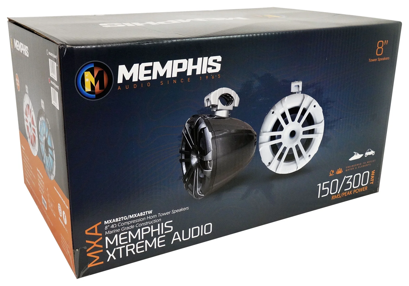 2) Memphis MXA82TW White 8" Marine Wakeboard Tower Speakers+4-Zone Boat Receiver