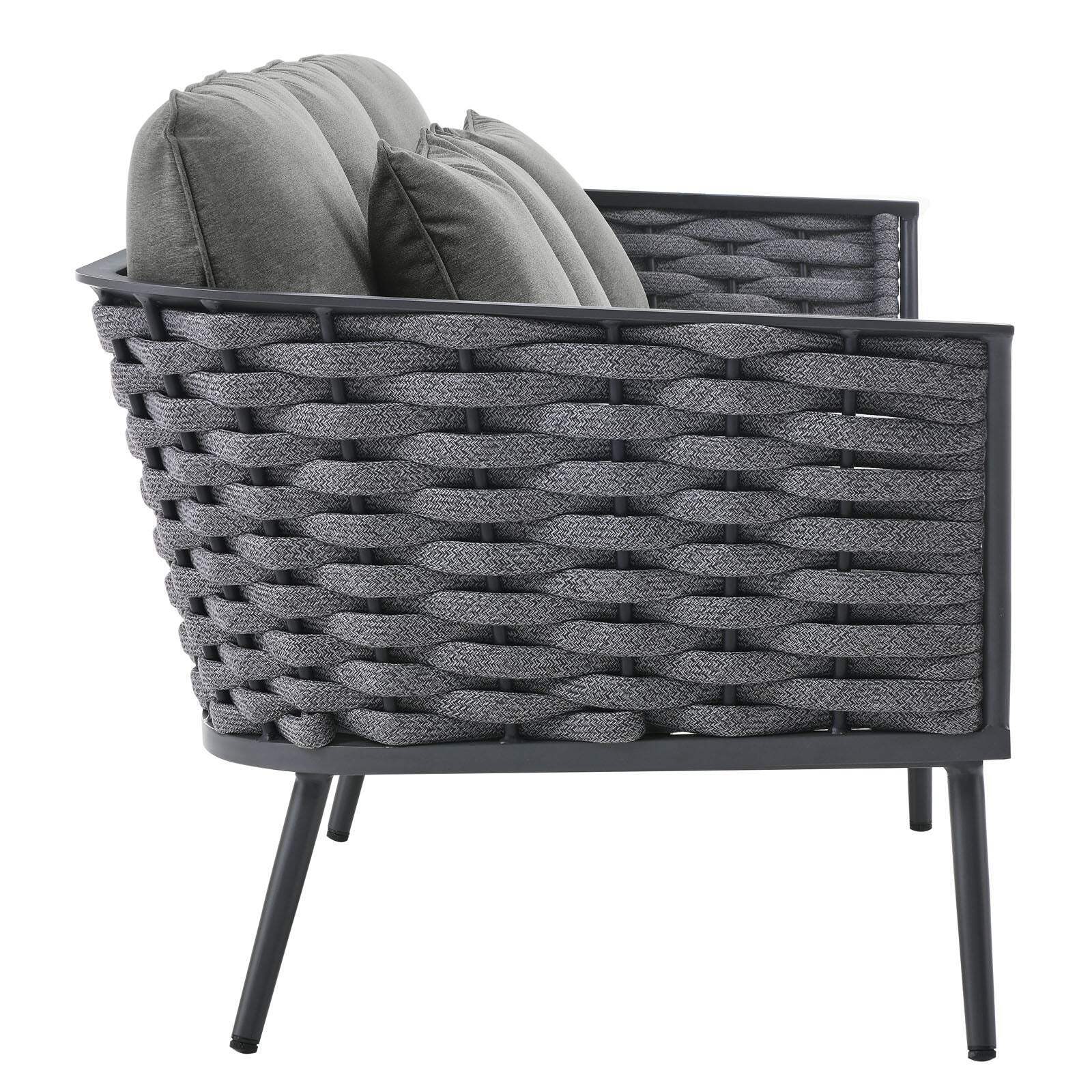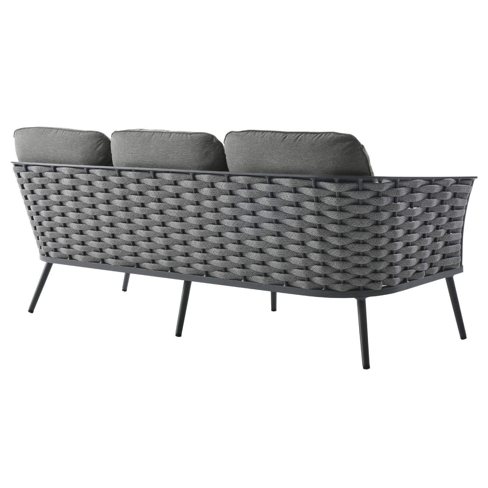 Modway Stance 3 Piece Outdoor Patio Aluminum Sectional Sofa Set in Gray Charcoal