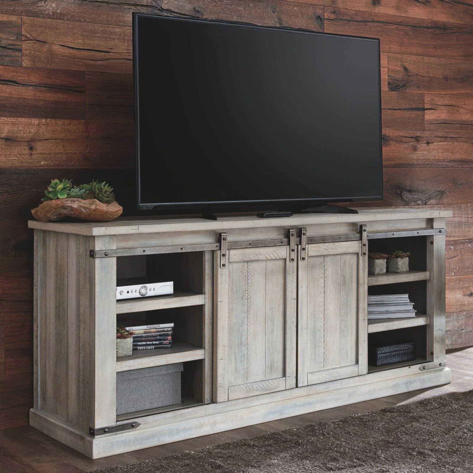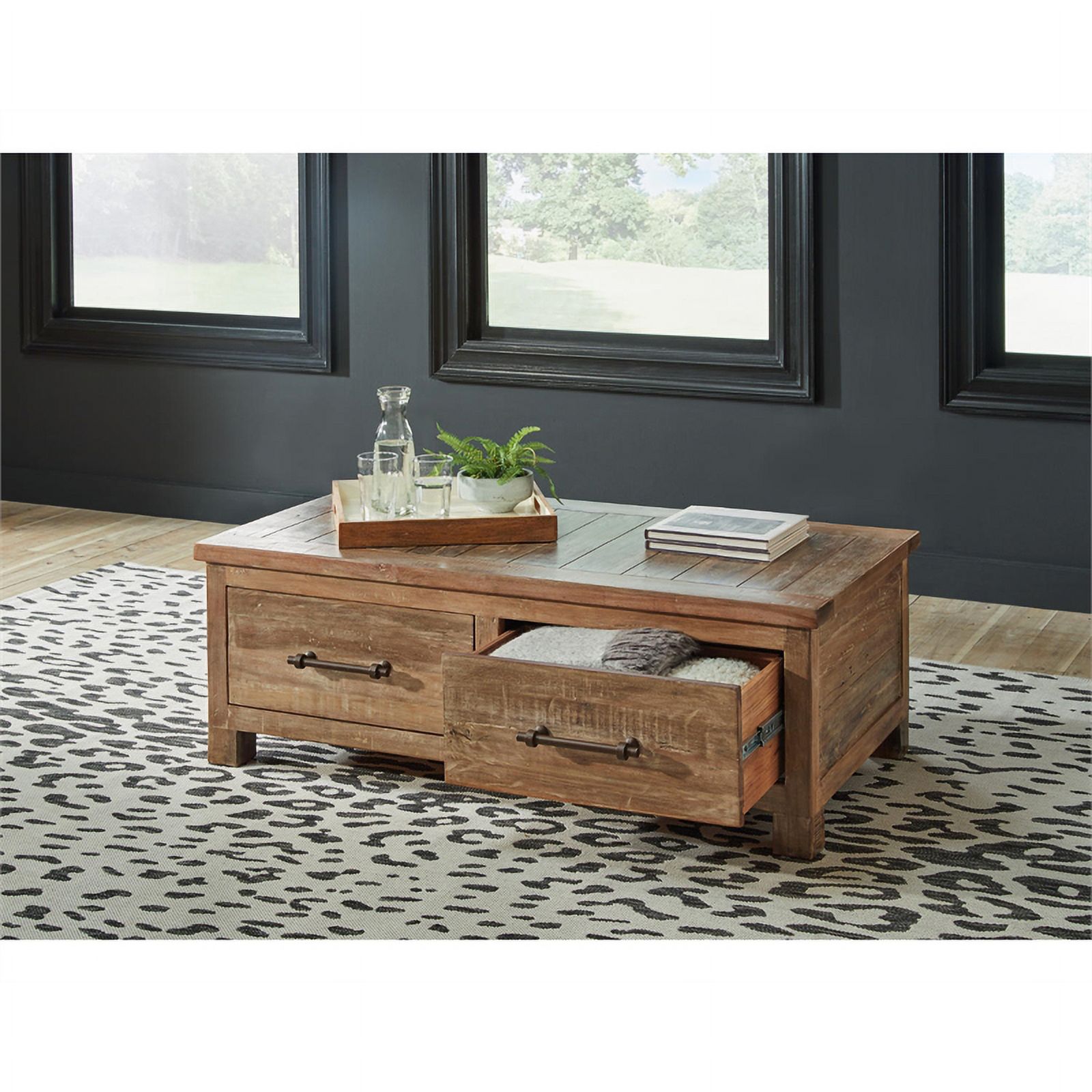 Ashley Furniture Randale Wood Coffee Table with Storage in Dark Brown
