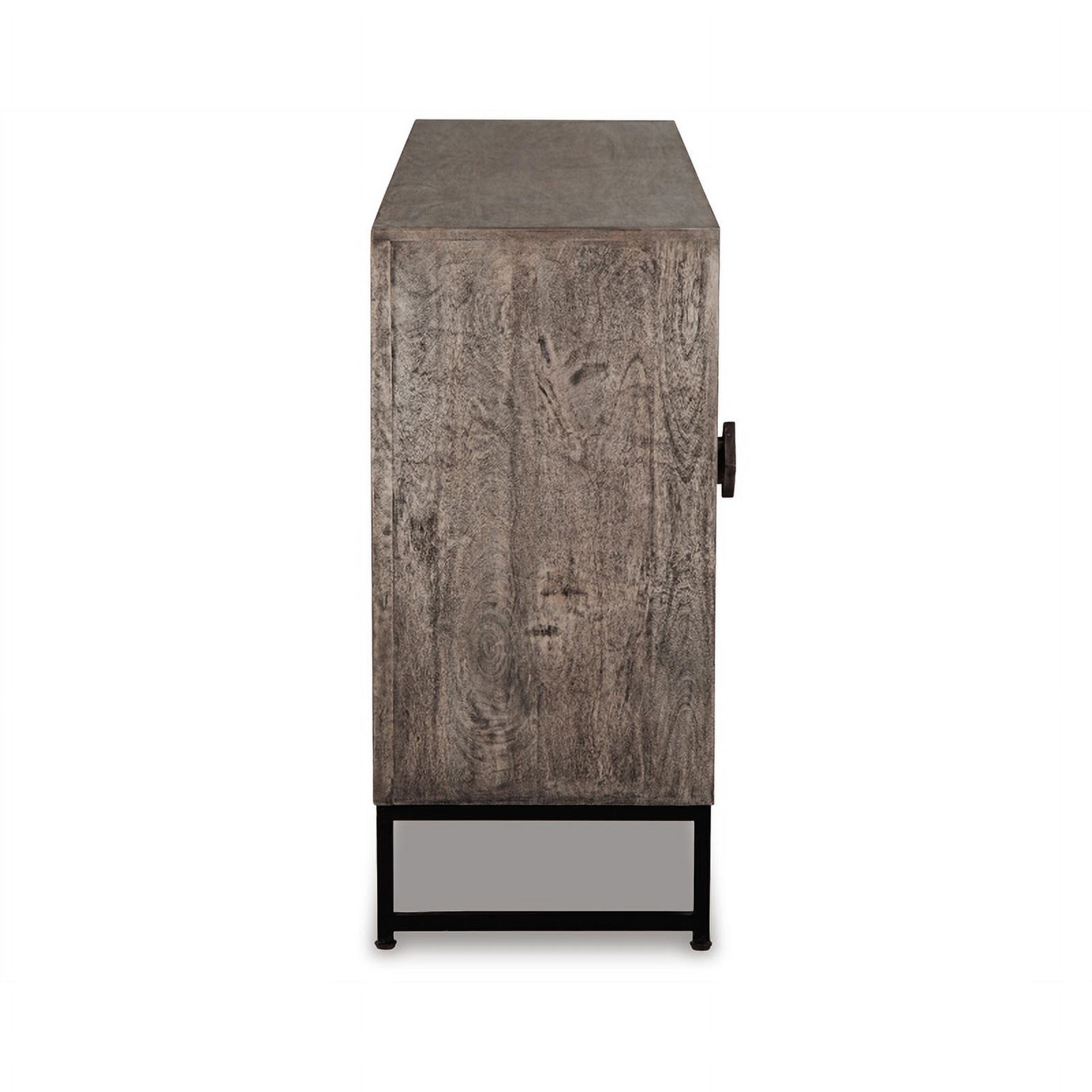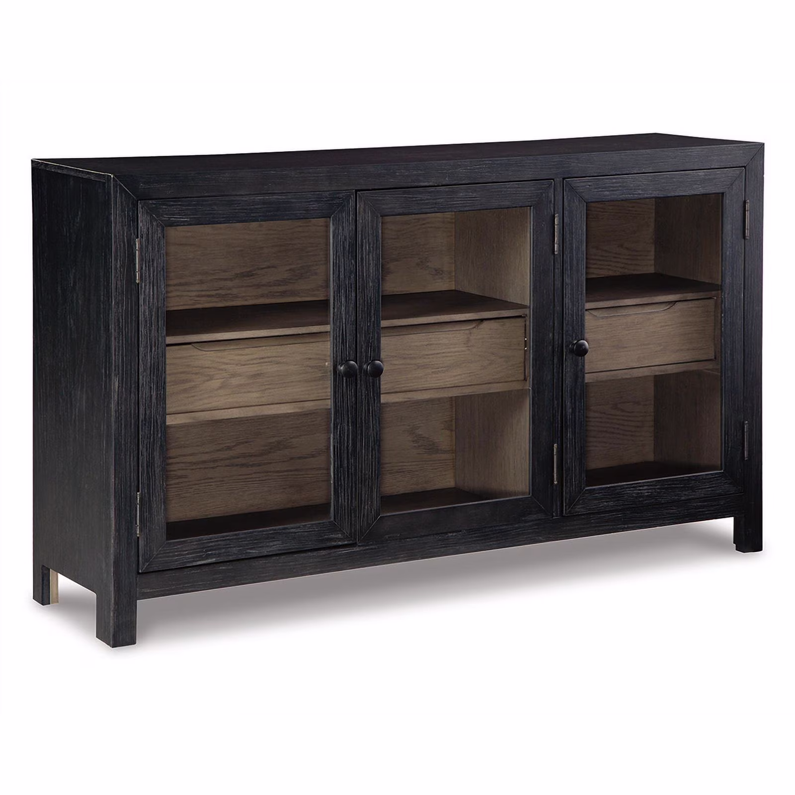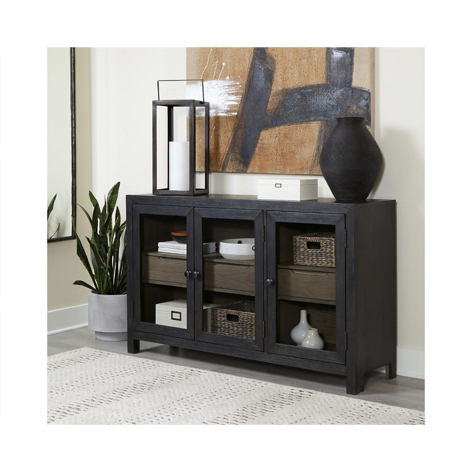 Ashley Furniture Lenston 3-Door Wood Accent Cabinet in Black/Warm Gray