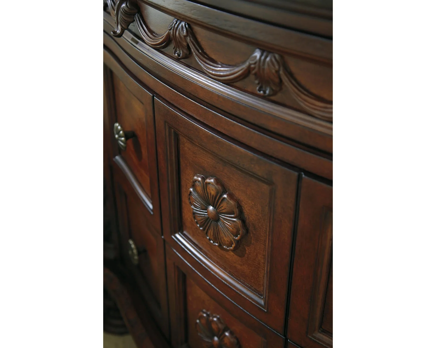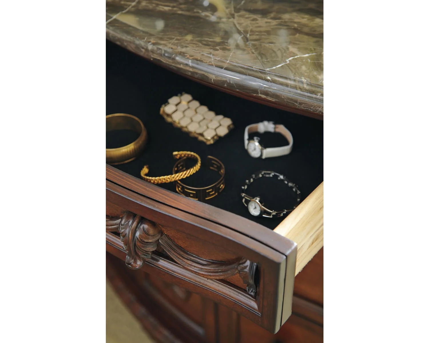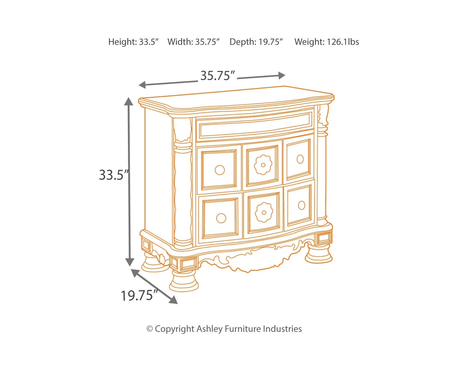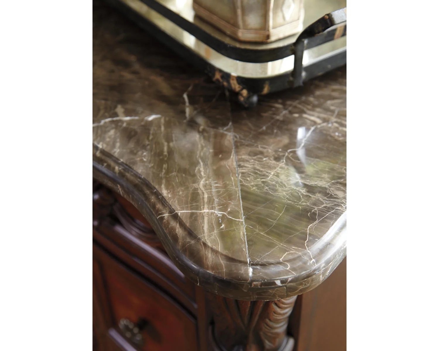 Signature Design by Ashley North Shore Ornate 3 Drawer Nightstand with Marble Inlay Top, Dark Brown