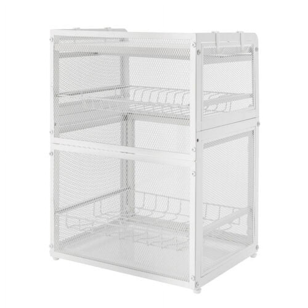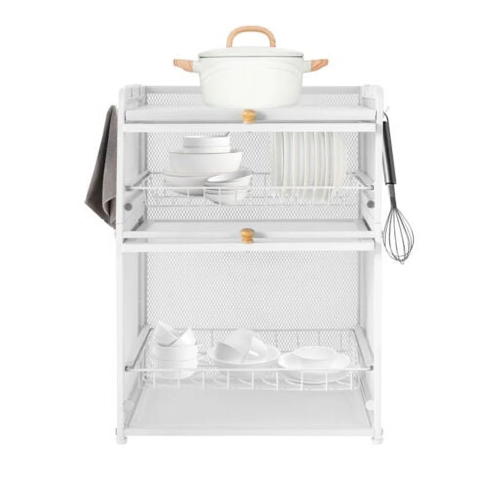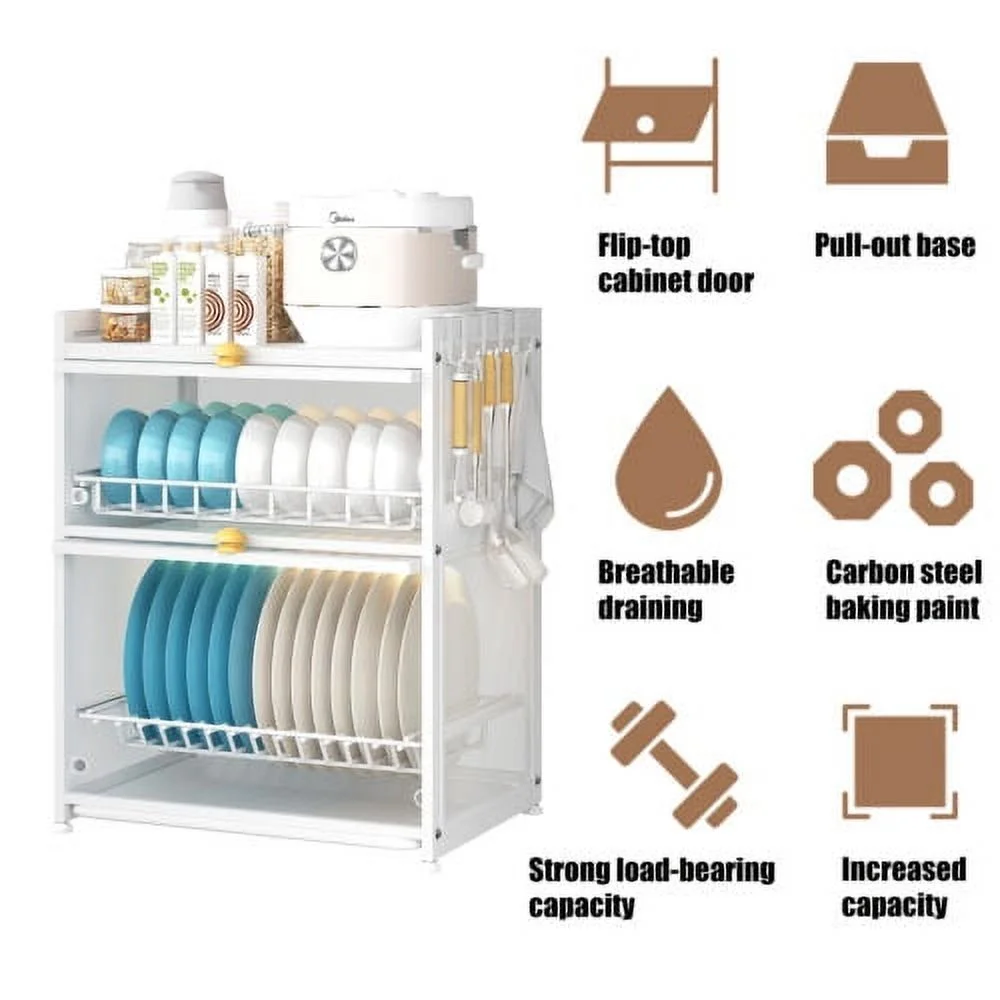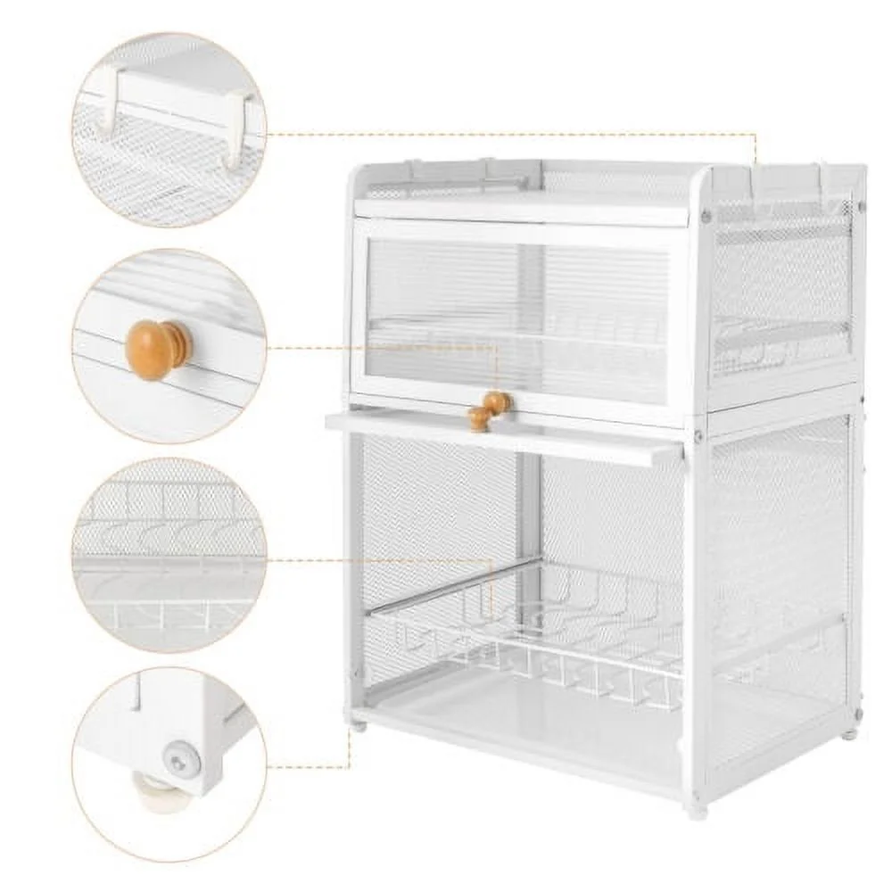 Kitchen Dish Drying Rack 3-Tier Cutlery Holder Drainer Organizer with Lid Cover
