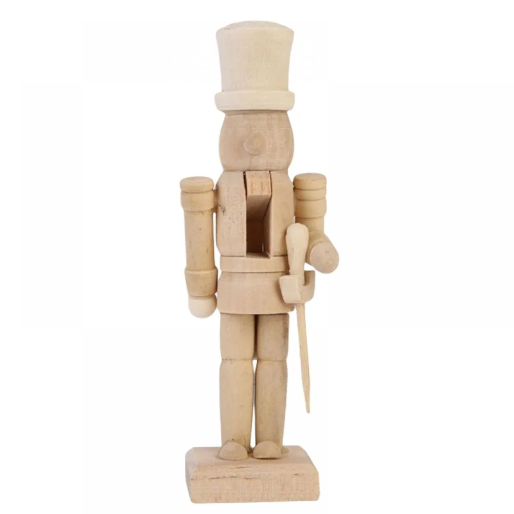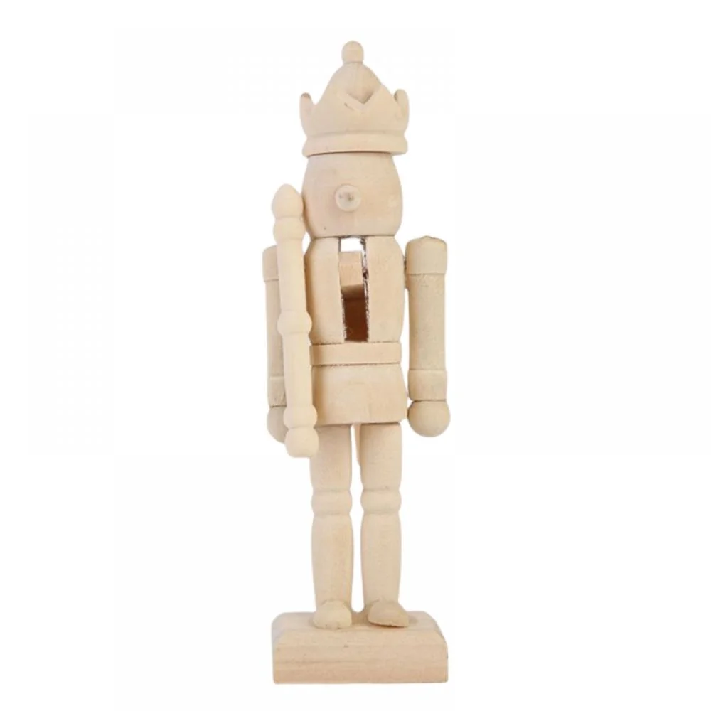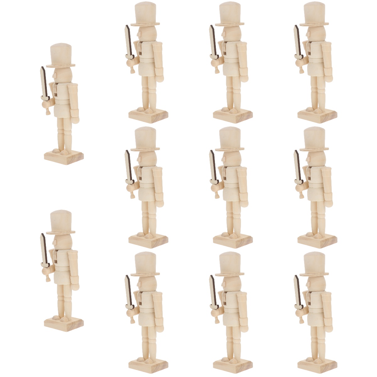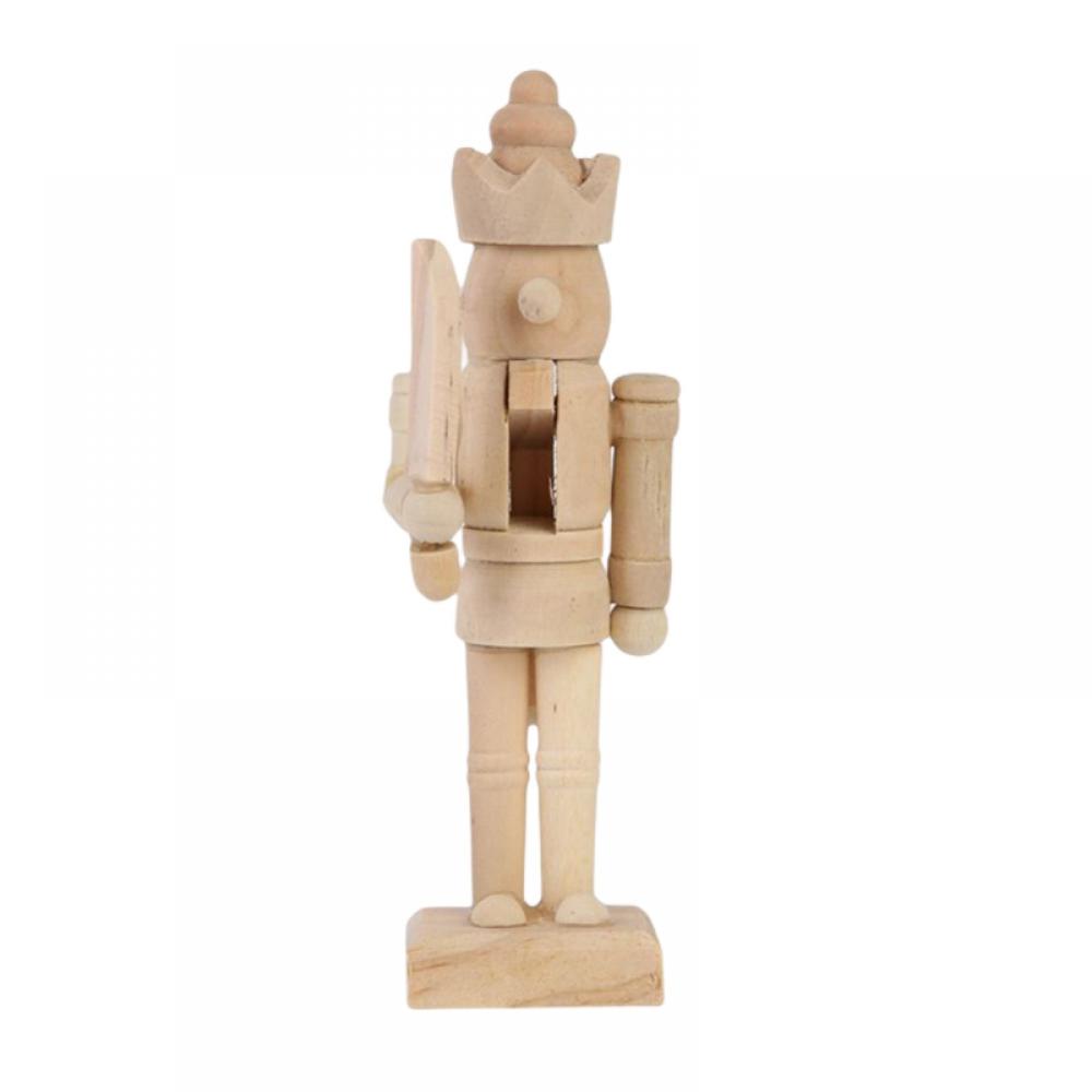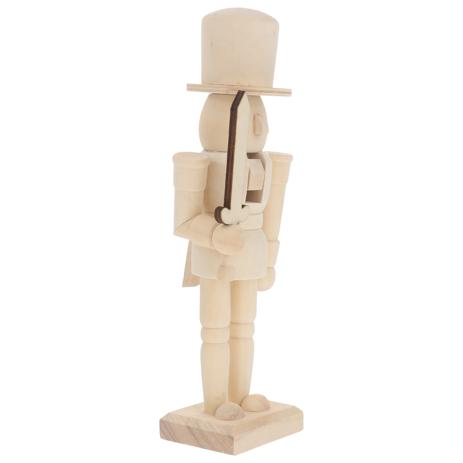 Tinksky Paintable Nutcracker Unfinished Wooden Nutcracker Doll DIY Adornment Unpainted Nutcracker Soldier