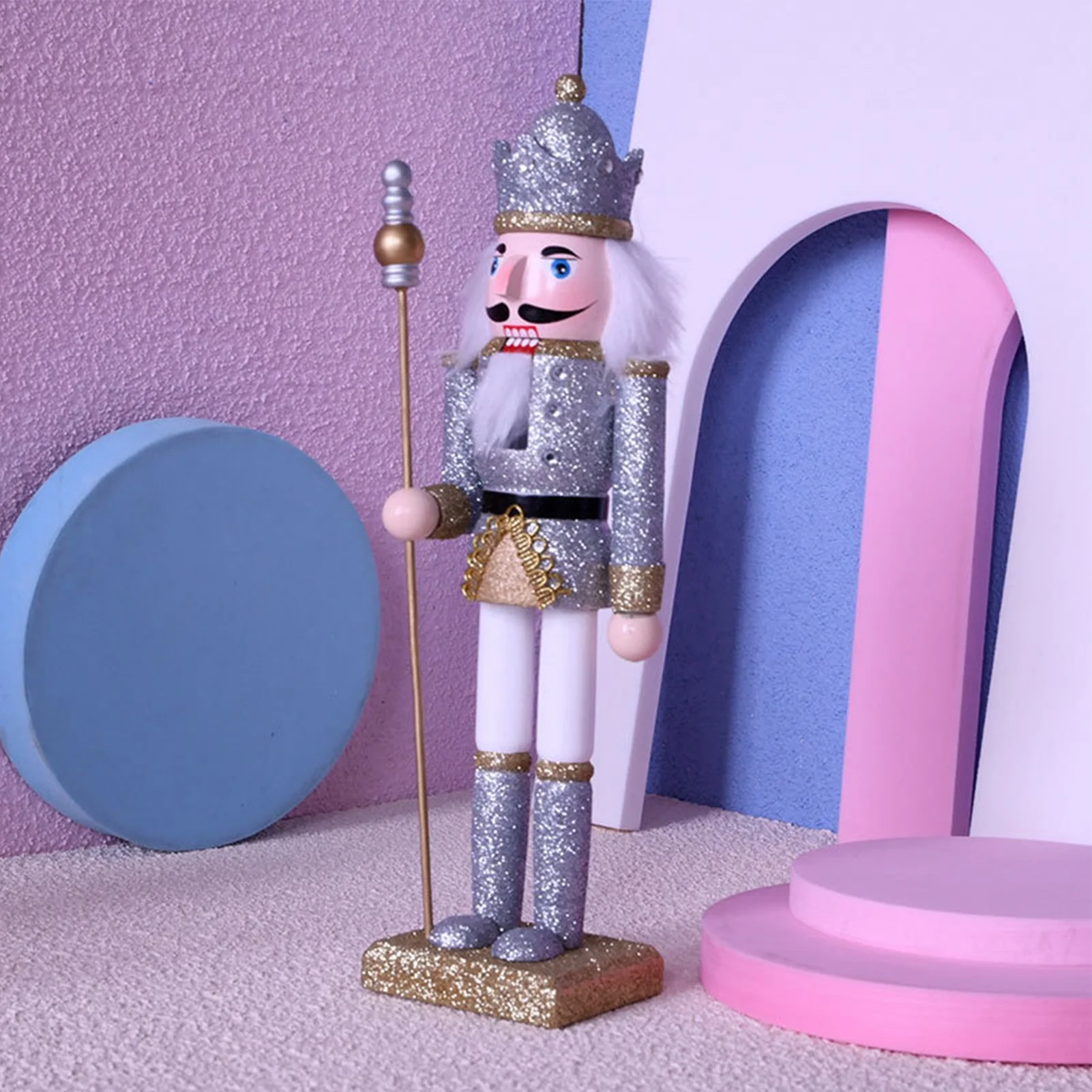 1Pc Nutcracker Soldier Adornment Wooden Puppet Doll Craft Christmas Decor White