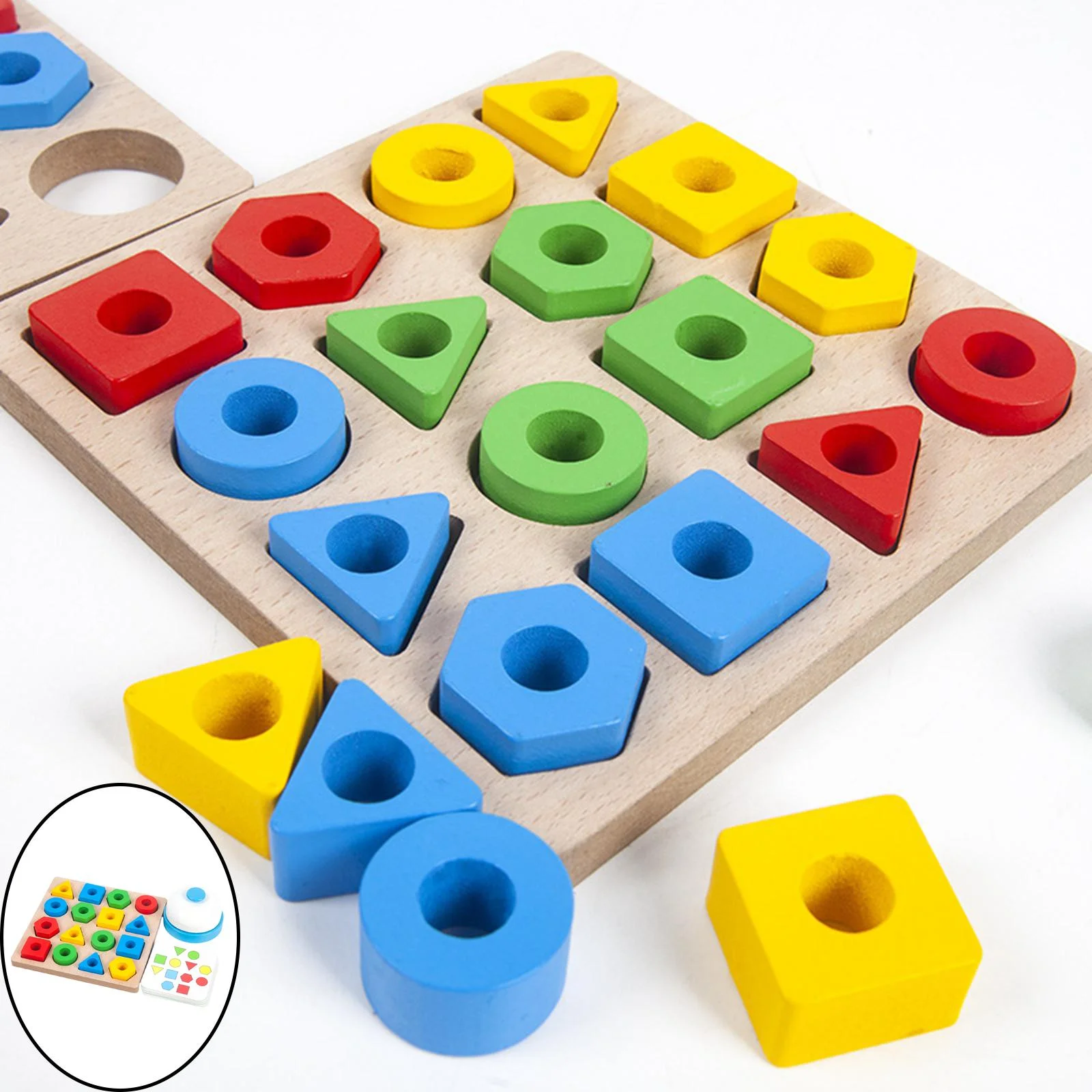 Wood Geometric Shape Matching Shape Recognition Stacking Toys Early Learning Game Educational Toys for Toddlers Girls Baby Boys , 1 Player