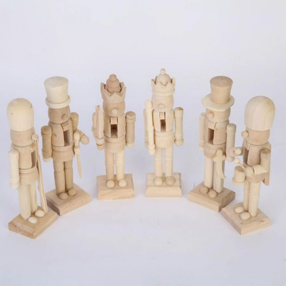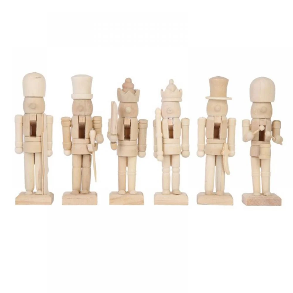 Christmas Unfinished Wooden Nutcracker Figures Xmas Unpainted Blank Doll DIY Paint Toy Nutcracker Ornaments 6 Set