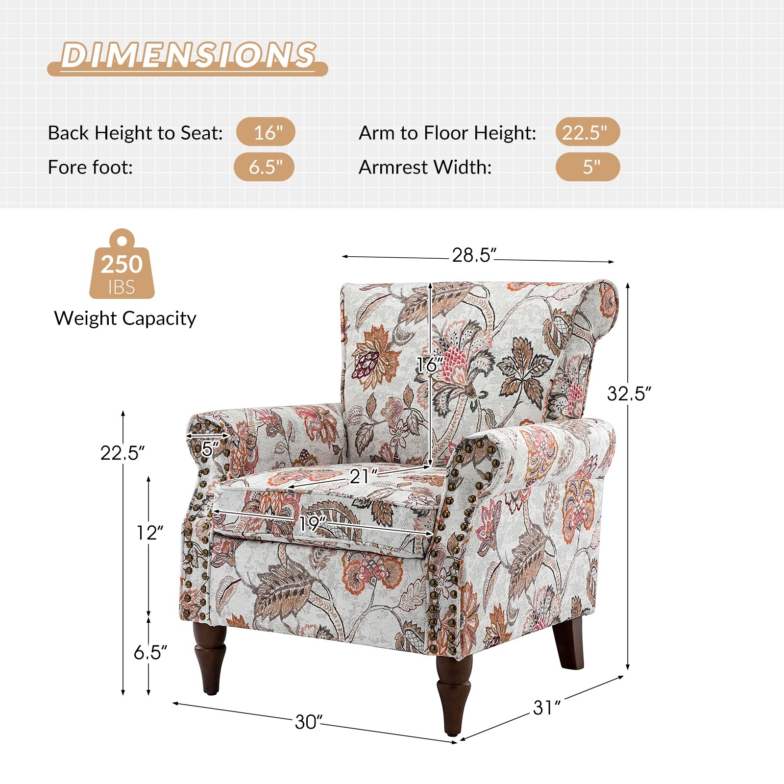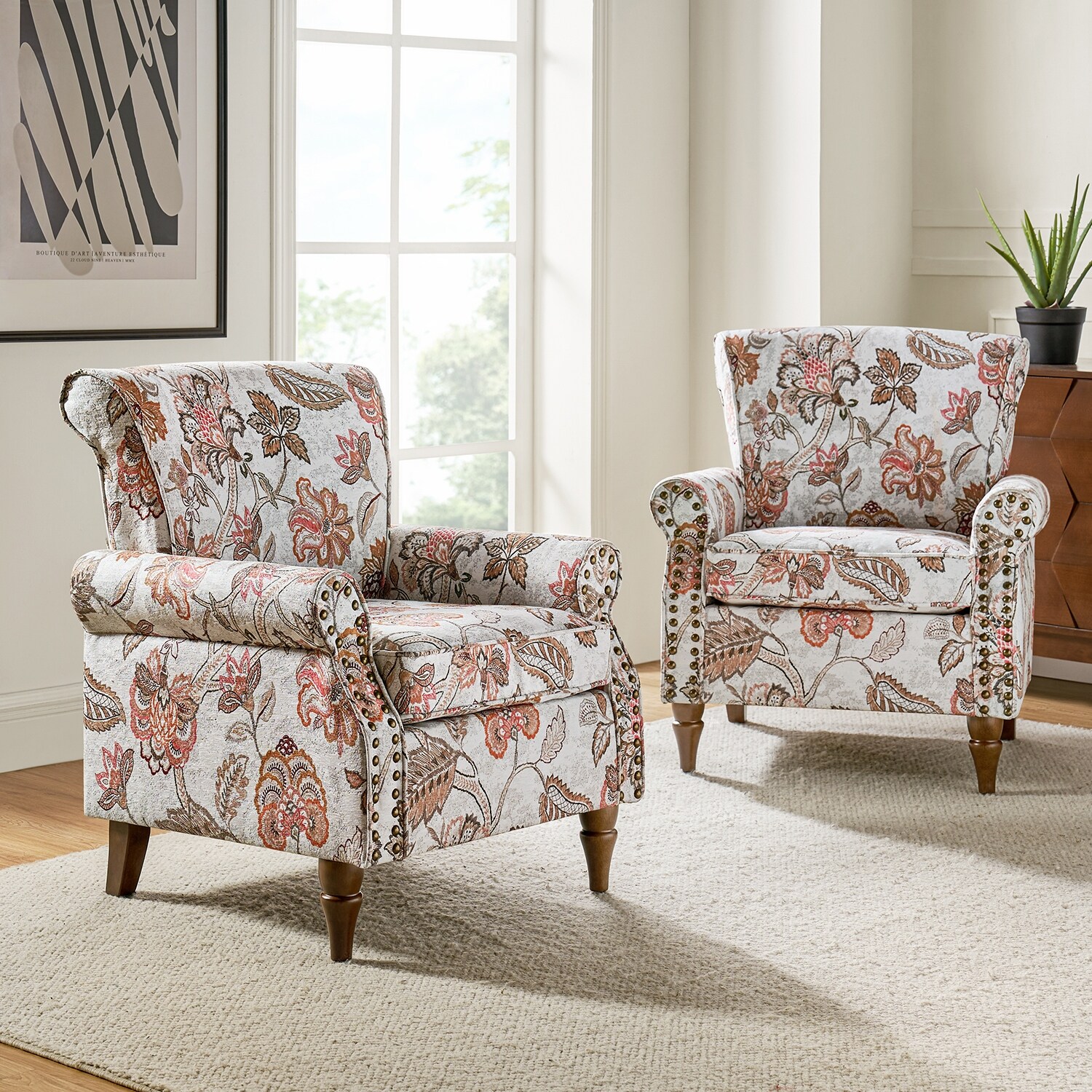 HULALA HOME Nyctelius Traditional Accent Armchair with Rolled Arms and Nailhead Trim by PINK Floral