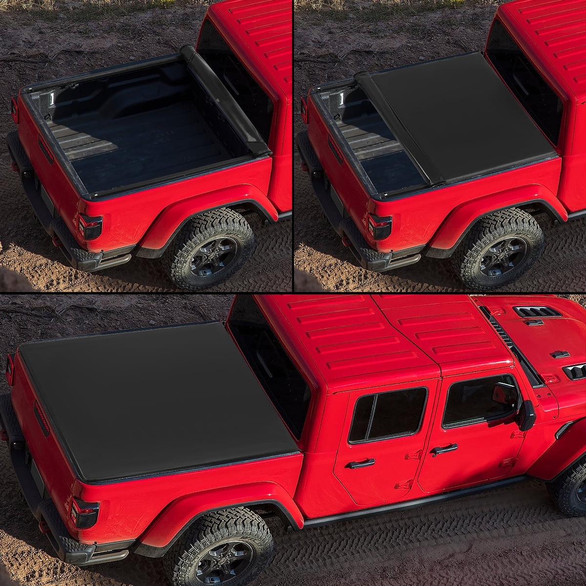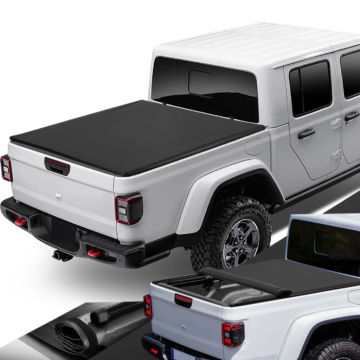 DNA Motoring TTC-RU-082 For 2020 to 2021 Jeep Gladiator Pickup Truck Bed Vinyl Soft Roll up Tonneau Cover