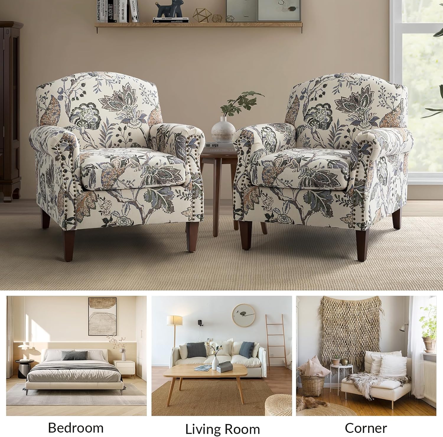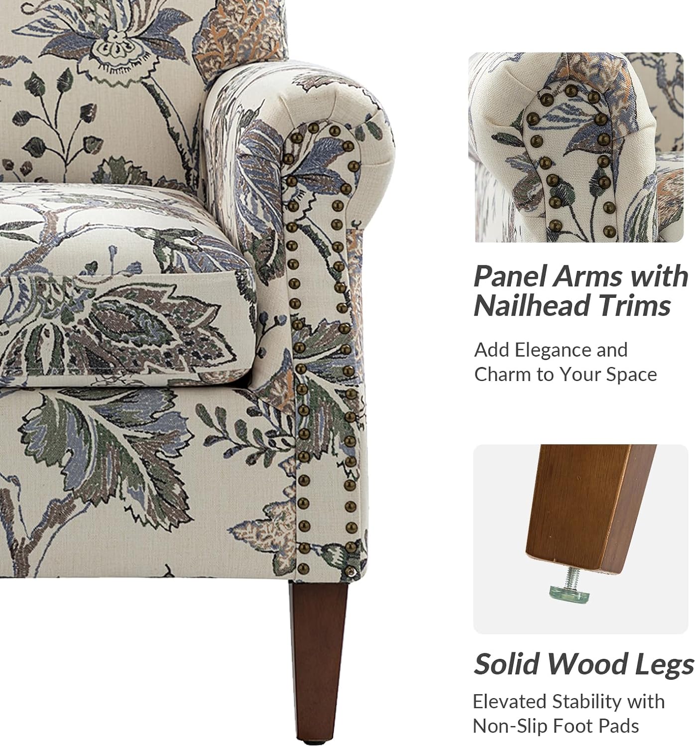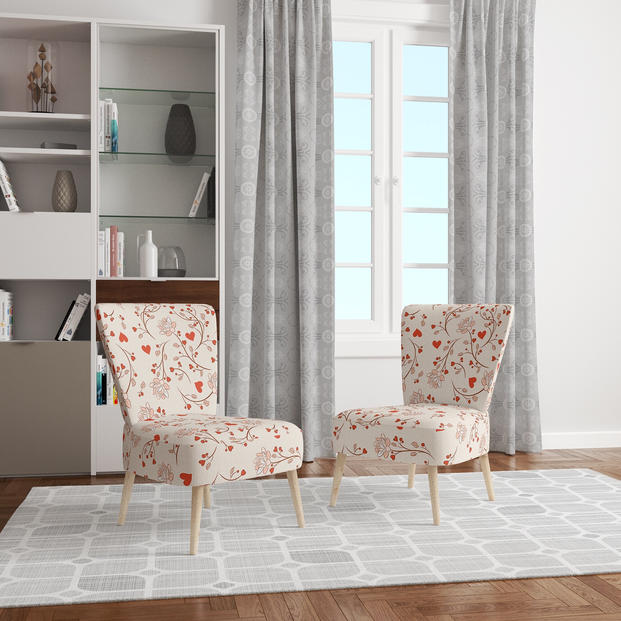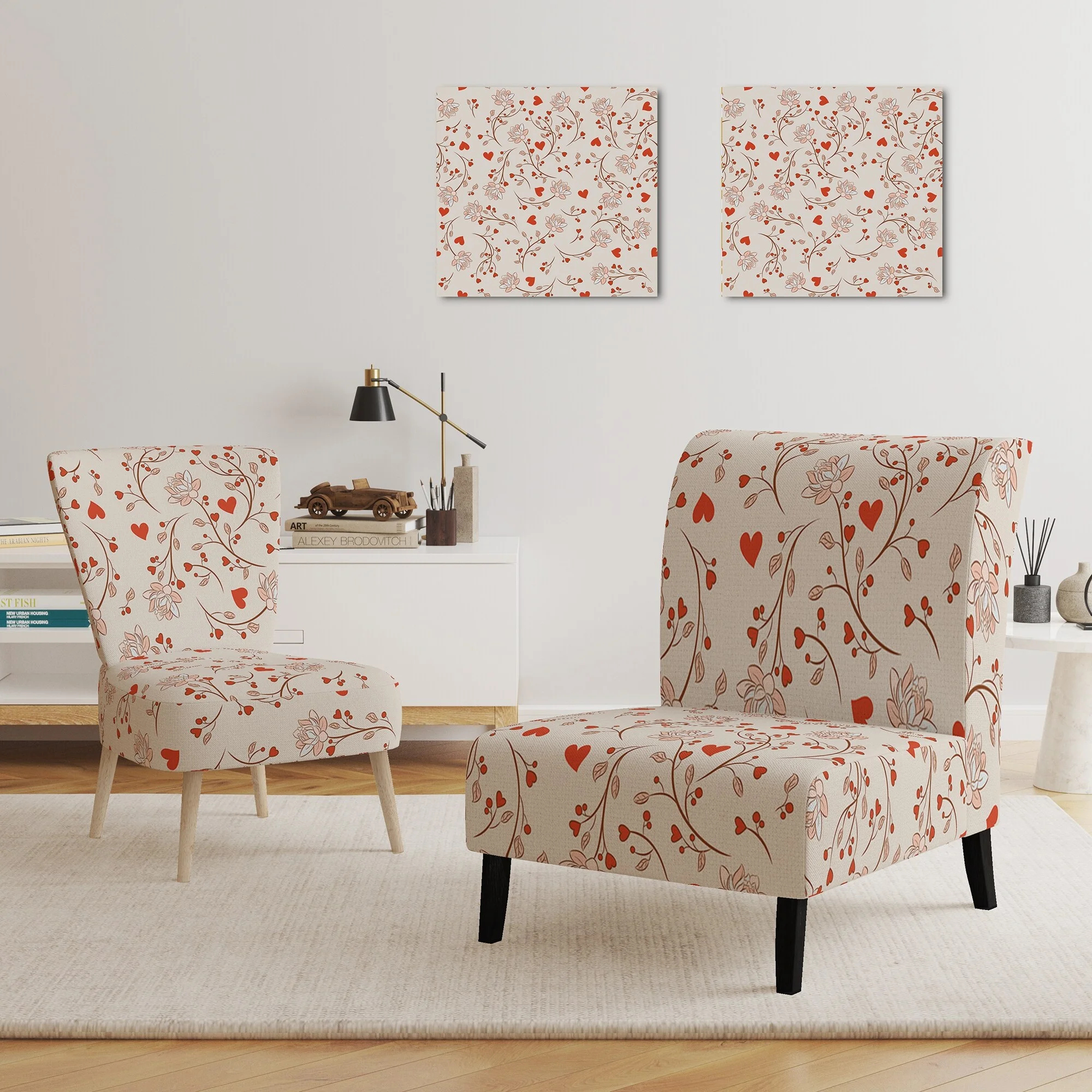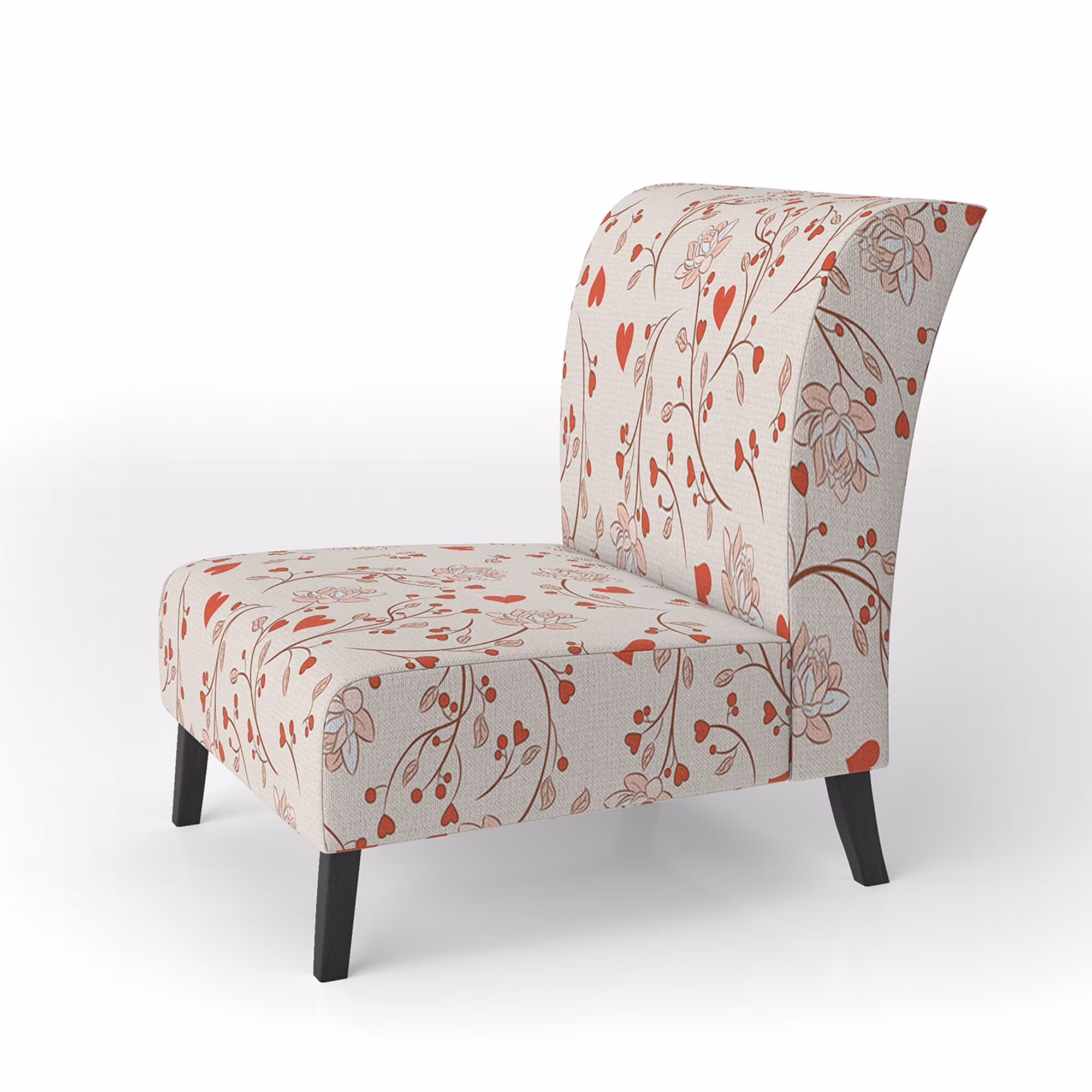 Designart "Red Vector Floral Pattern" Upholstered Patterned Accent Chair and Arm Chair