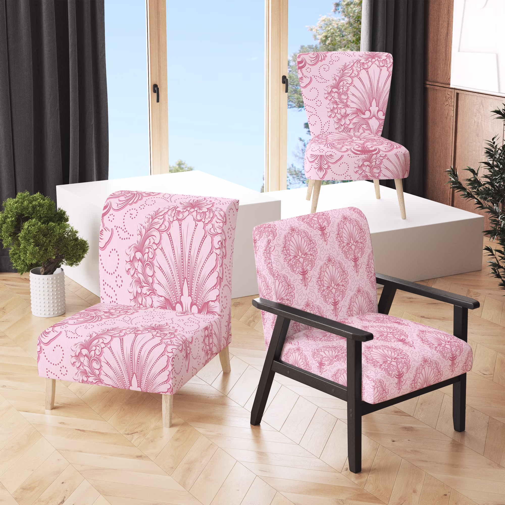 Designart "Pink Damask" Upholstered Patterned Accent Chair and Arm Chair