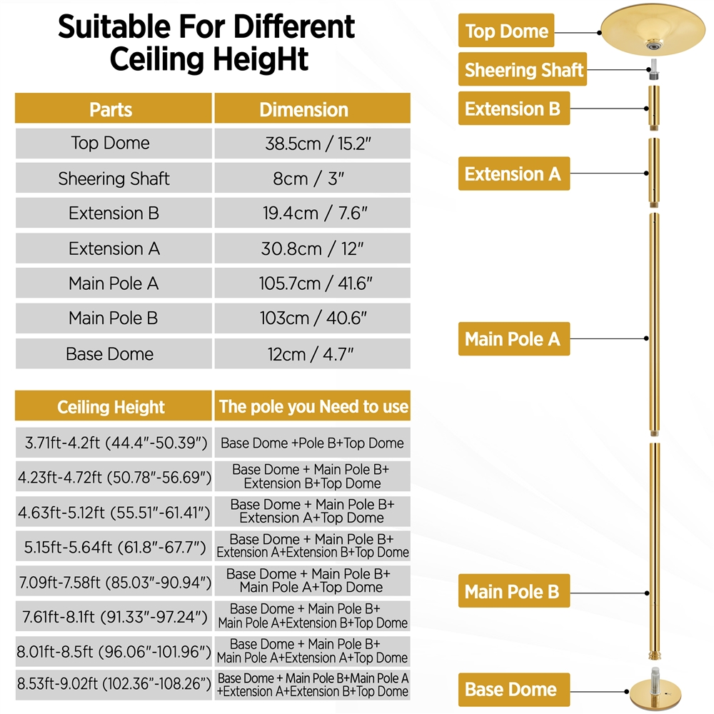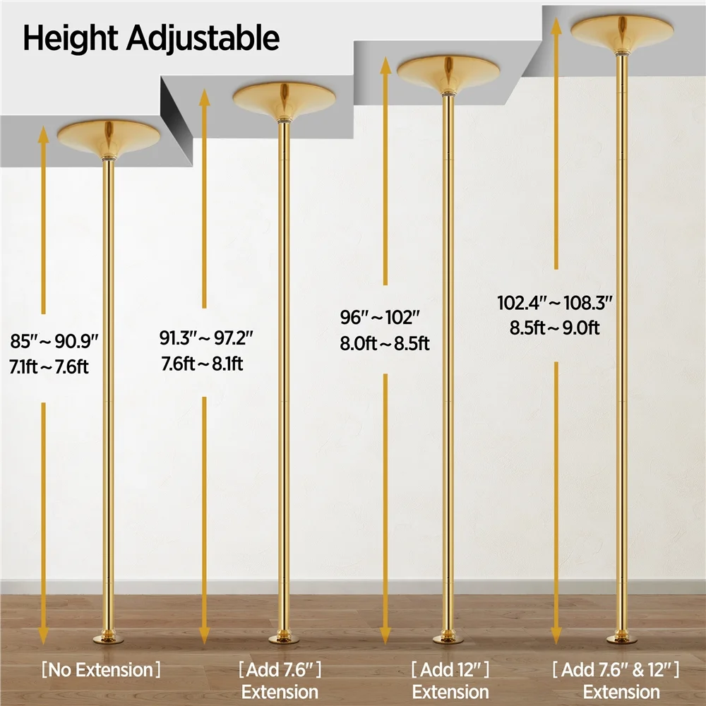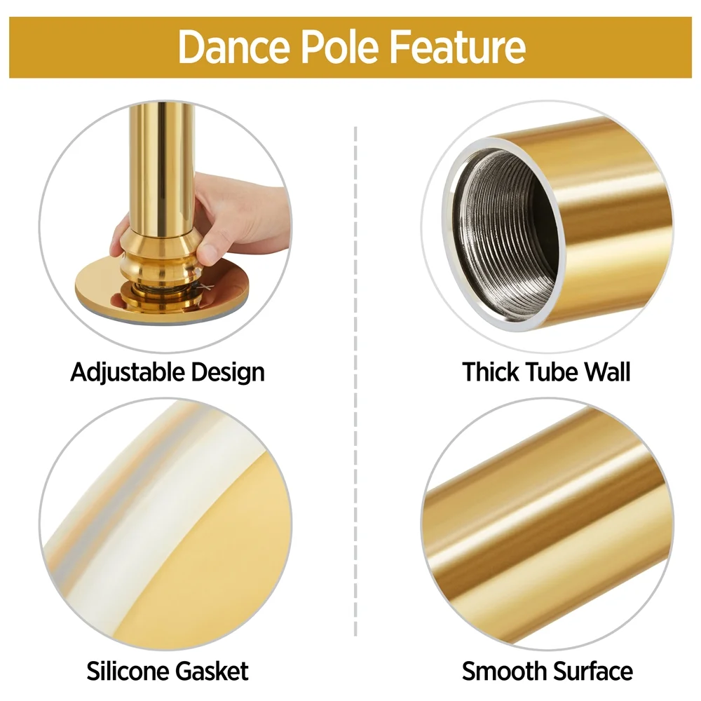 Topeakmart 45mm Height Adjustable Stripper Dance Pole Spinning Static Dancing Pole 3.7'-9', Gold