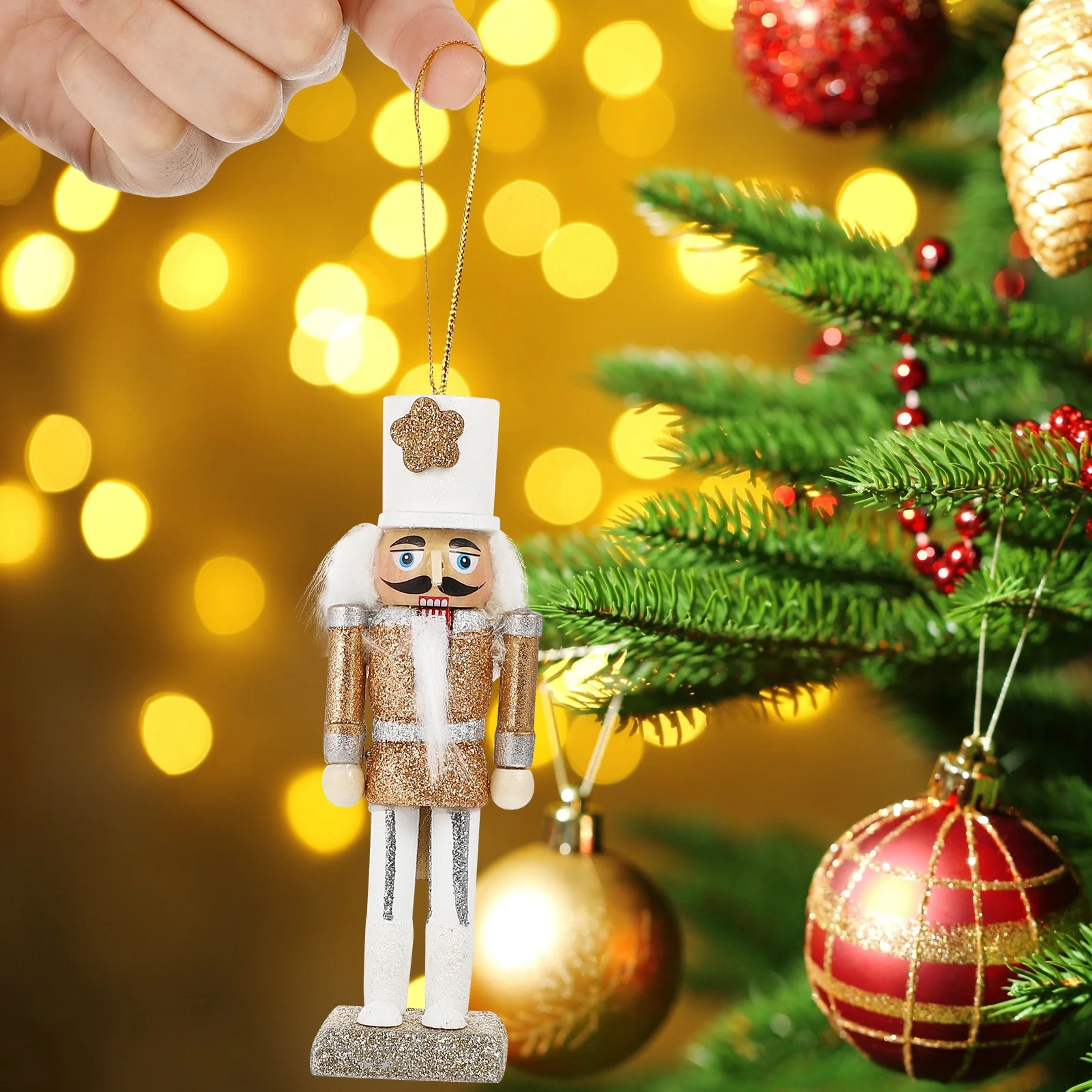 5pcs Christmas Nutcracker Pendants Wooden Small Nutcracker Dolls Holiday Glitter Powder Nutcracker Ornaments