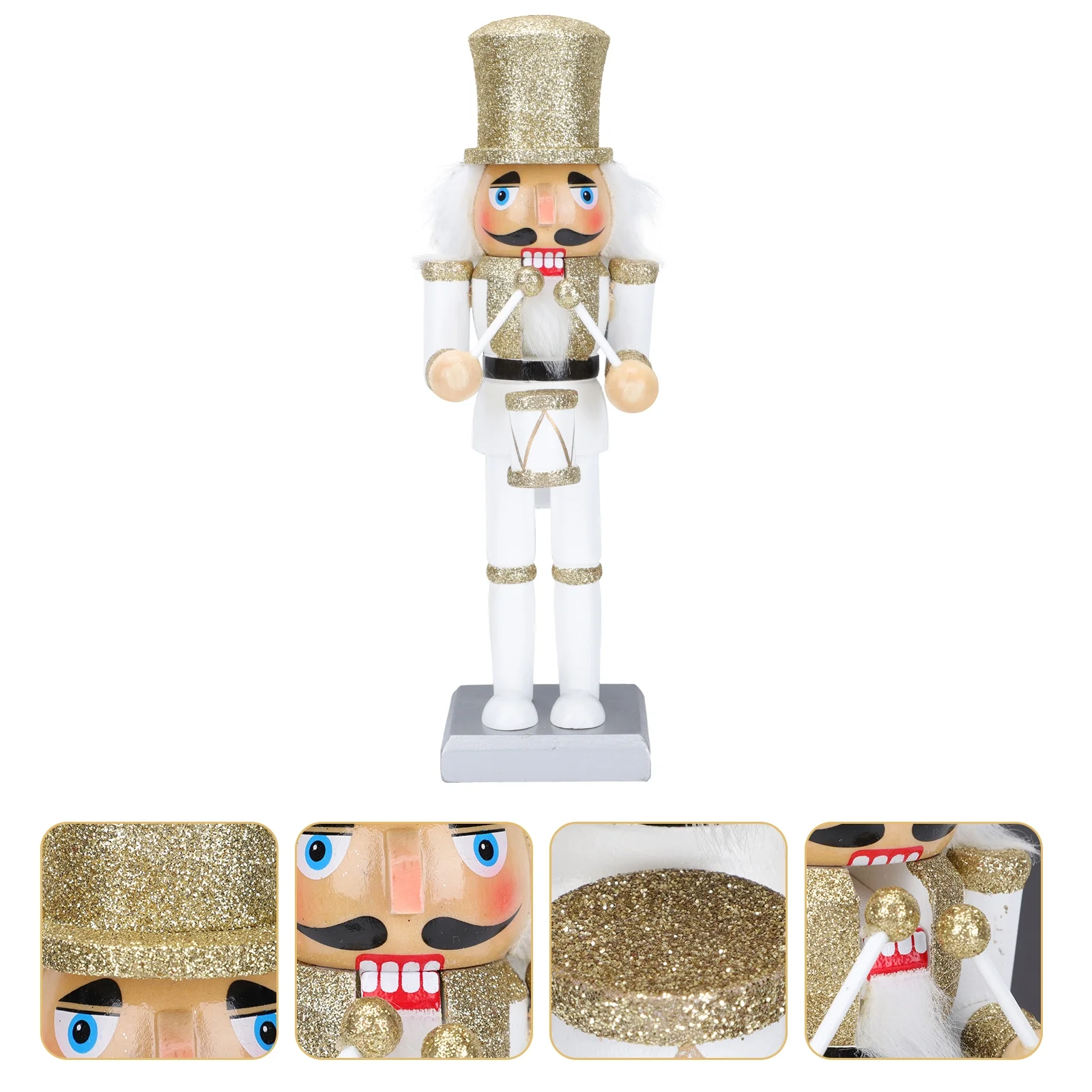 Hemoton 1Pc Nutcracker Soldier Adornment Wooden Puppet Doll Craft Christmas Decor White