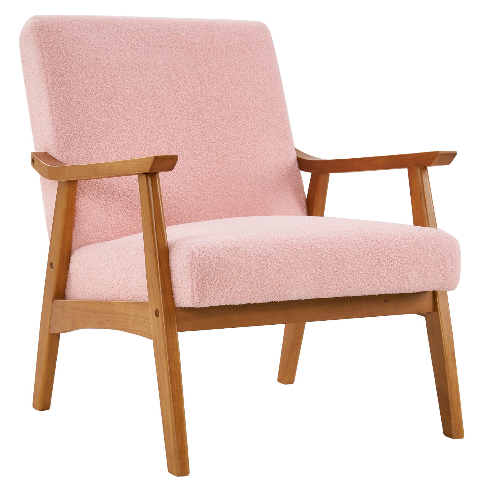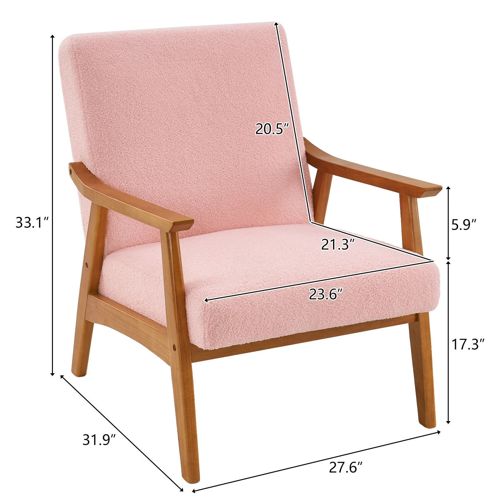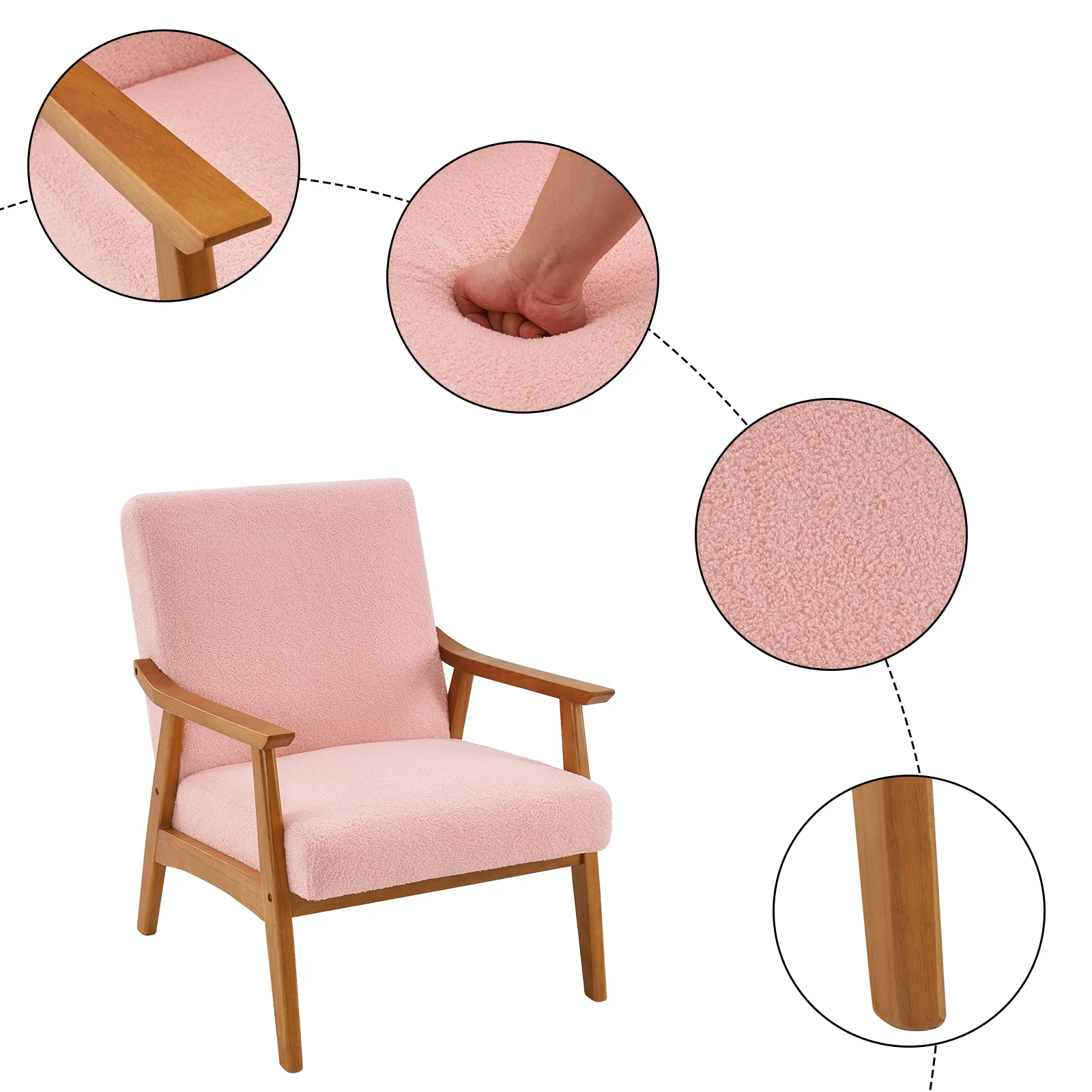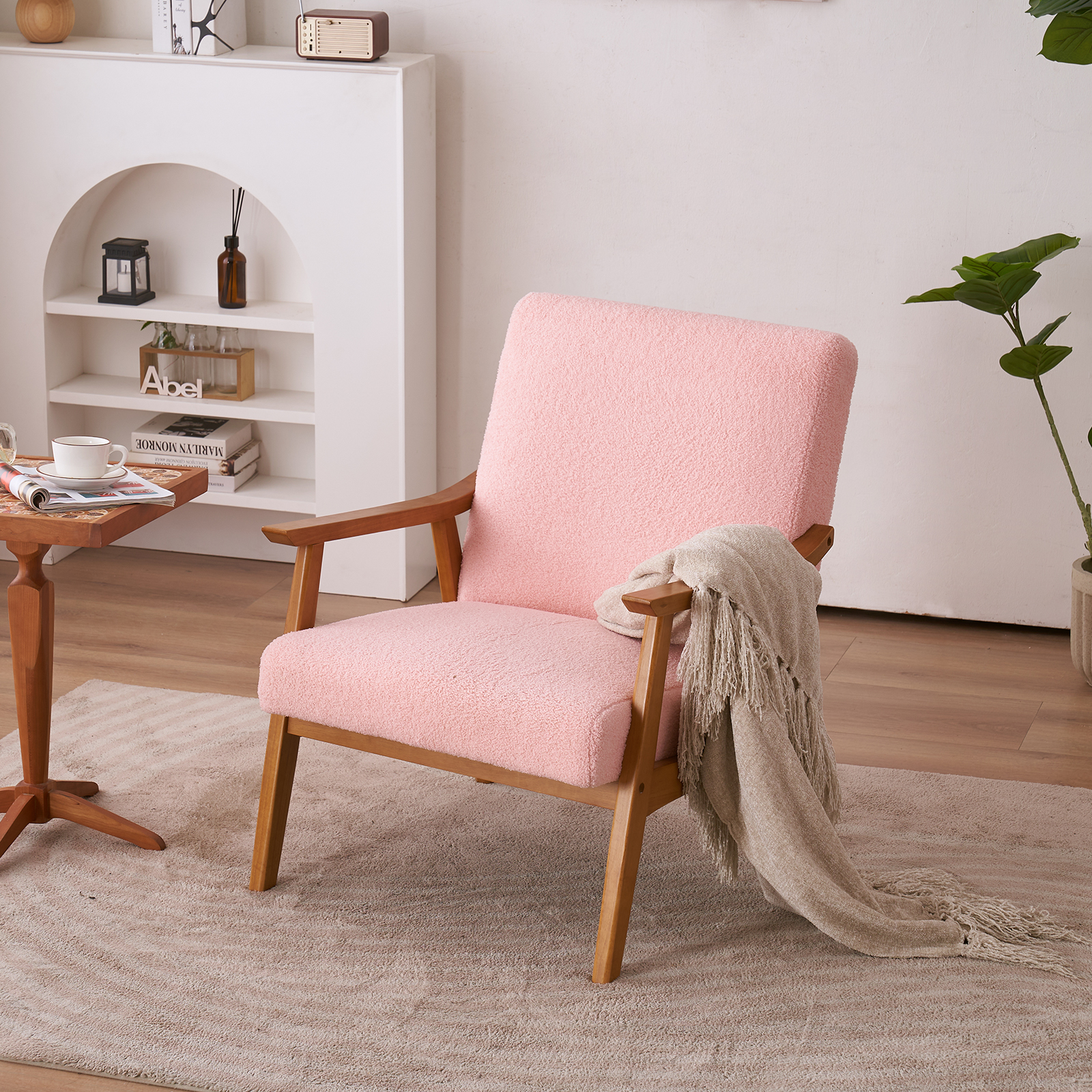 HomeDirect Solid Wood Armrest Teddy Velvet Simple Single Indoor Lounge Chair Backrest Pink
