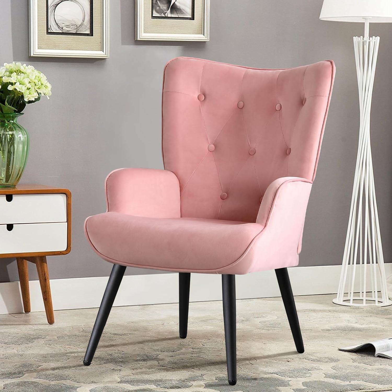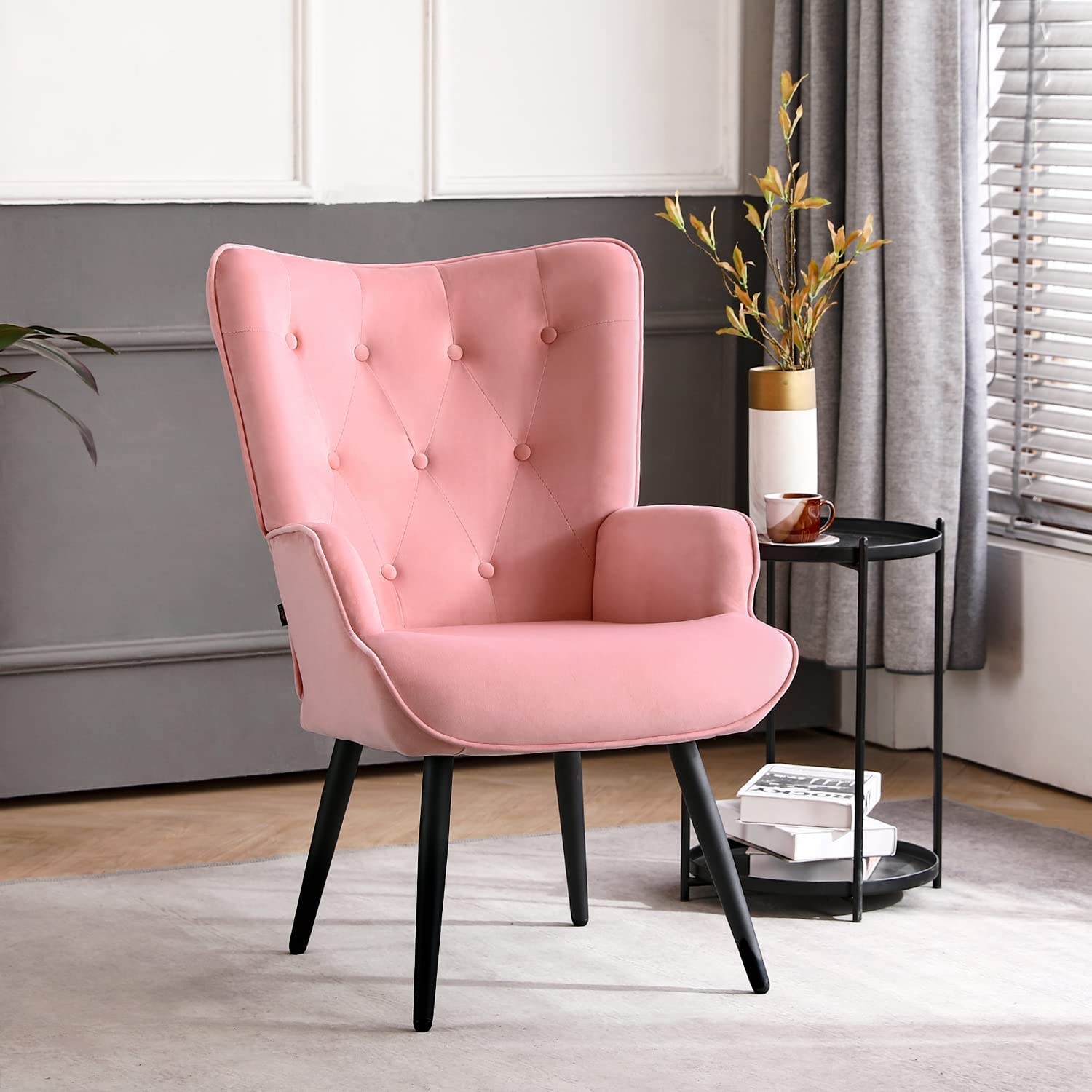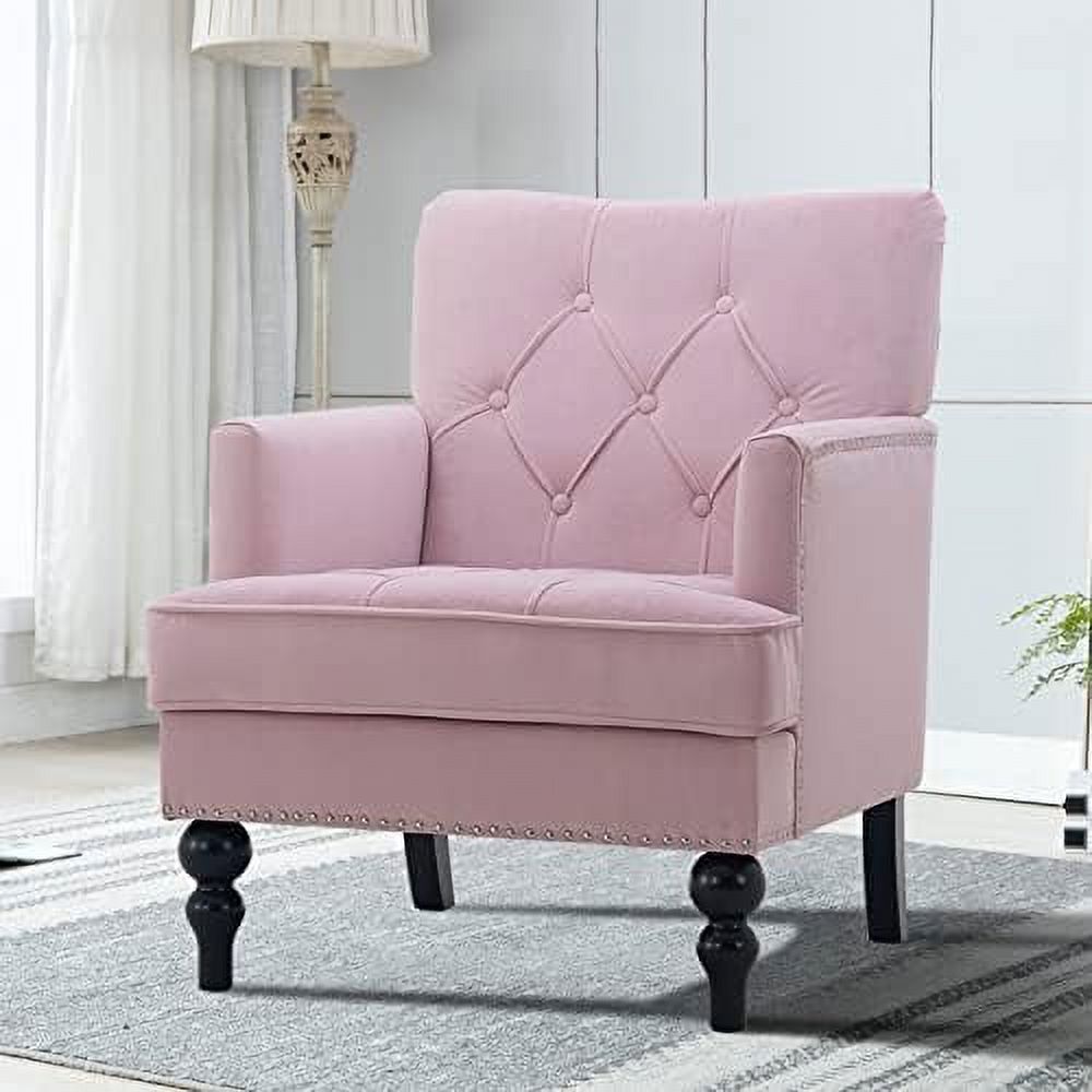 Morden Fort Luxury Lounge Chair, Contemporary Velvet Upholstered Armchair for Living Room Office Pink