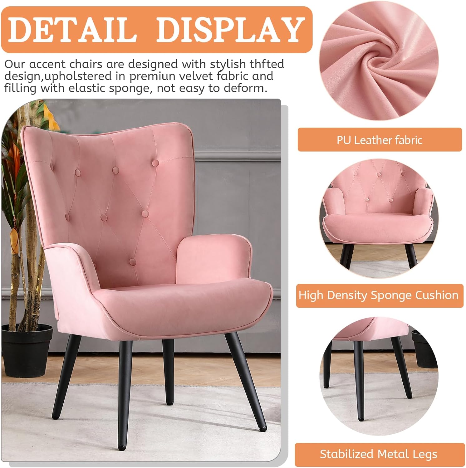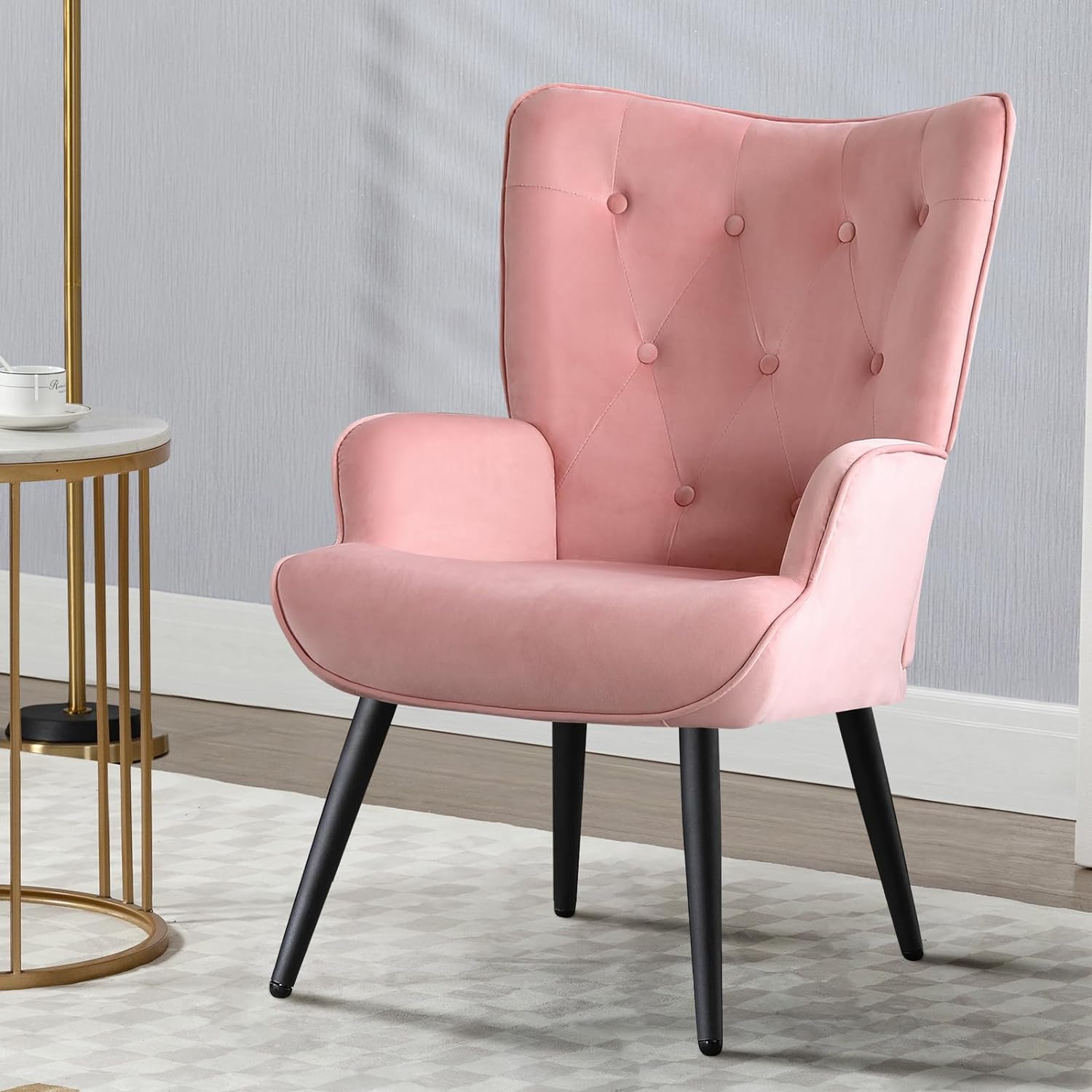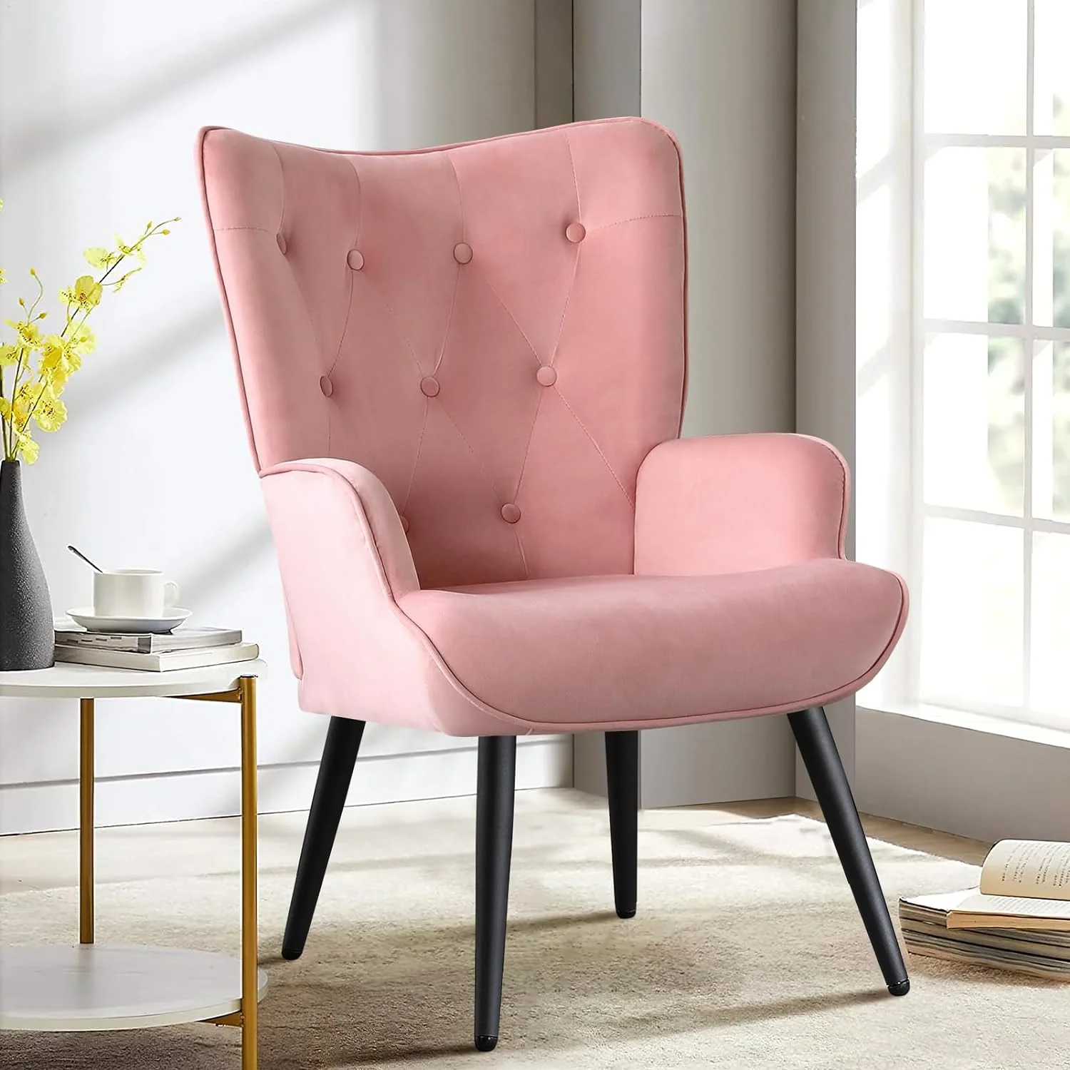 Morden Fort Luxury Lounge Chair, Contemporary Velvet Upholstered Armchair for Living Room Office Pink