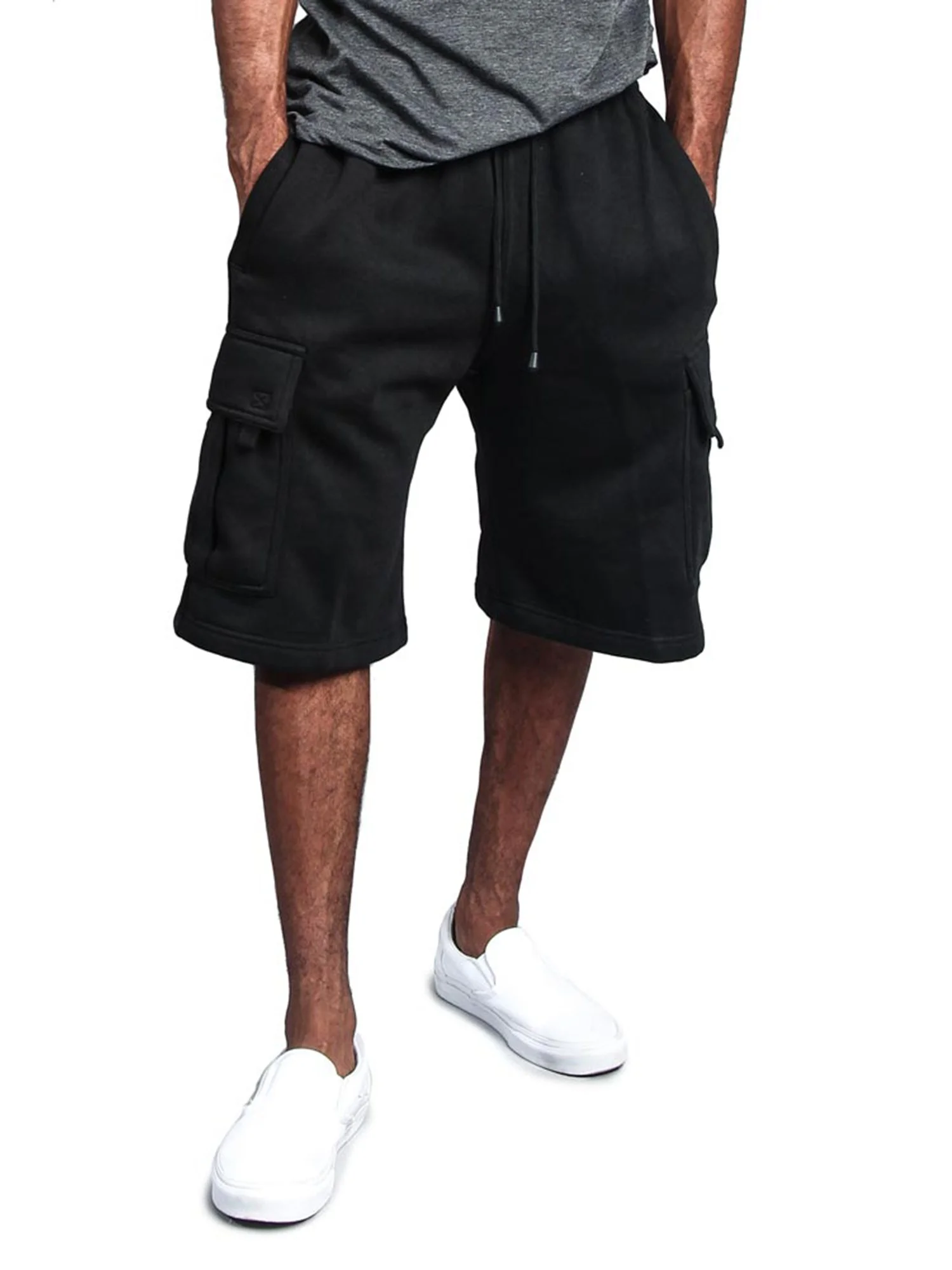 G-Style USA Men's Fleece Heavyweight Cargo Sweat Shorts FS76 - BLACK - Medium