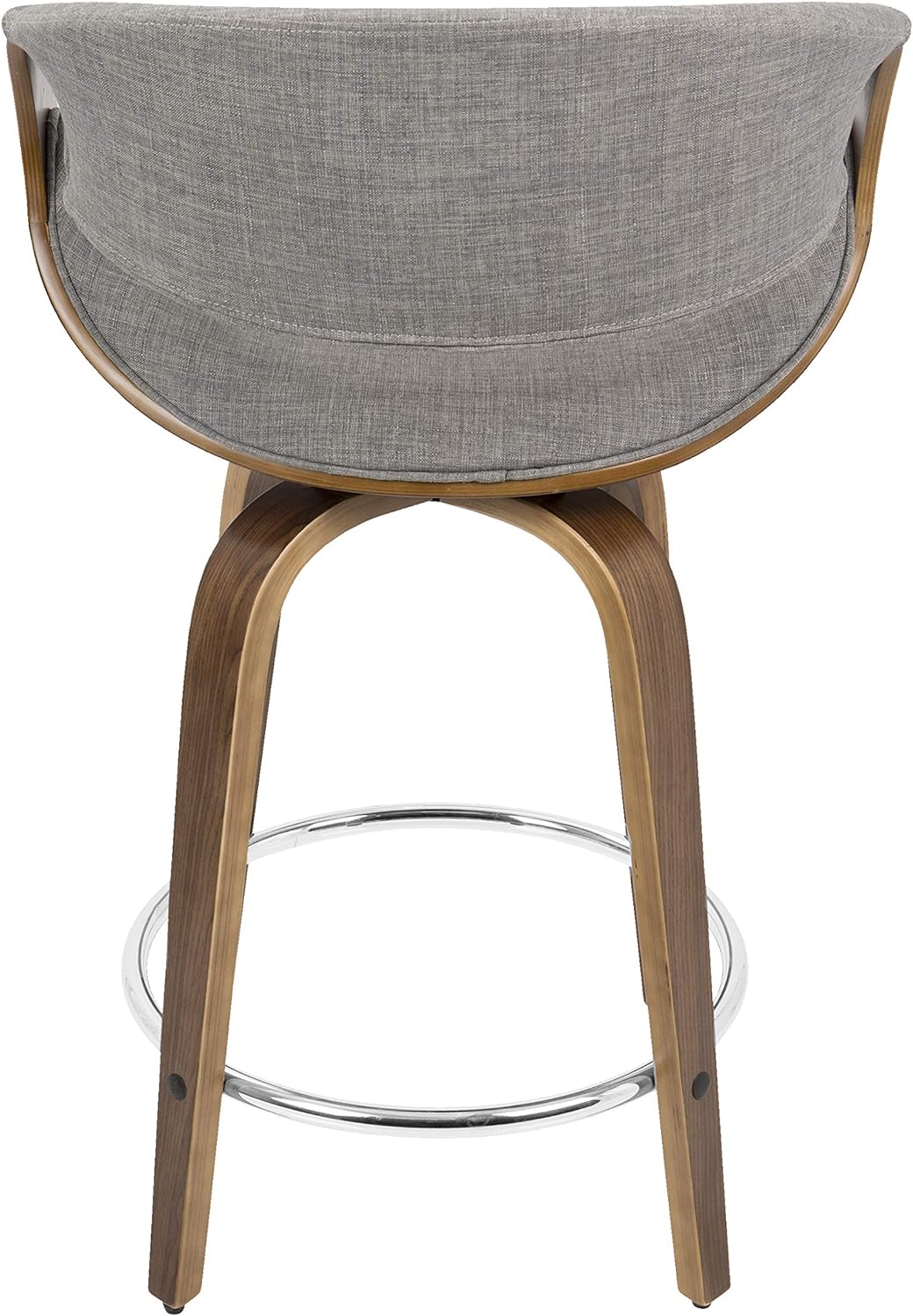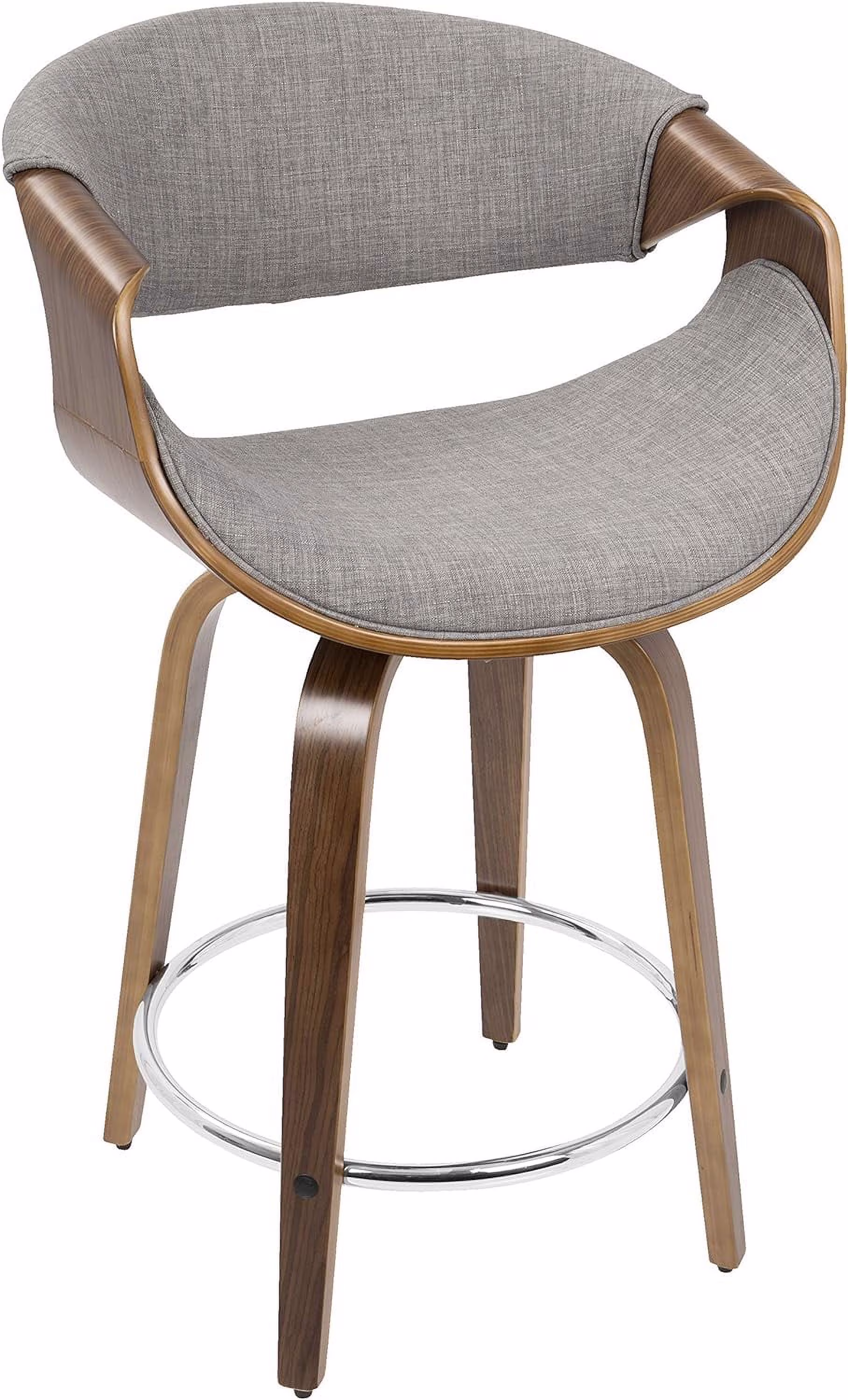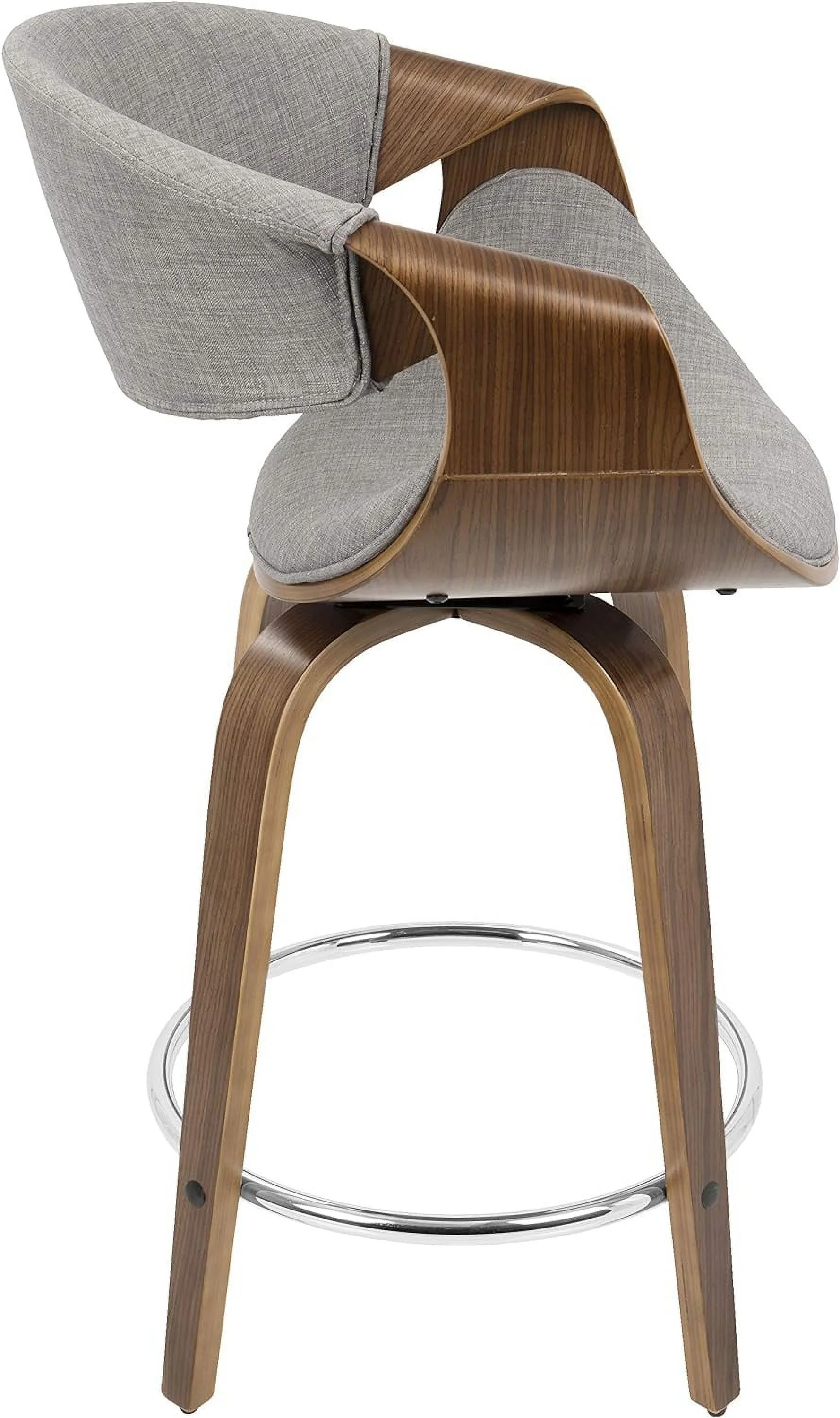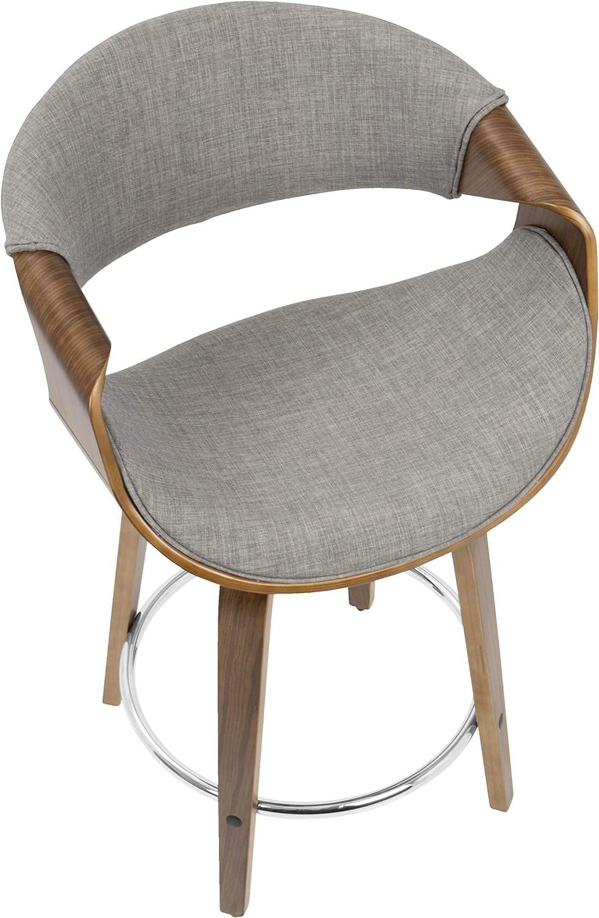 Curvini -Century Modern Counter Stool In Walnut Wood And Light Grey Fabric Set Of 2