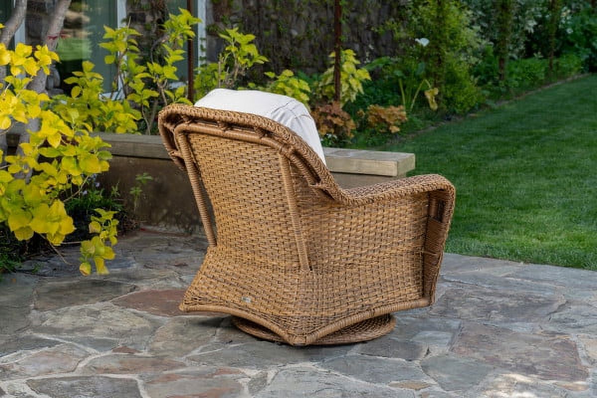 Bali Lounge Swivel Rocking Chair with Light Brown Cushion Natural Rattan Wicker Handmade, Colonial Color