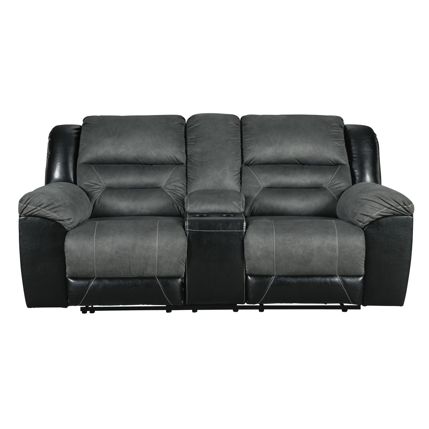 Benjara Wooden Dual Recliner Loveseat with Console and Cupholders, Black and Gray