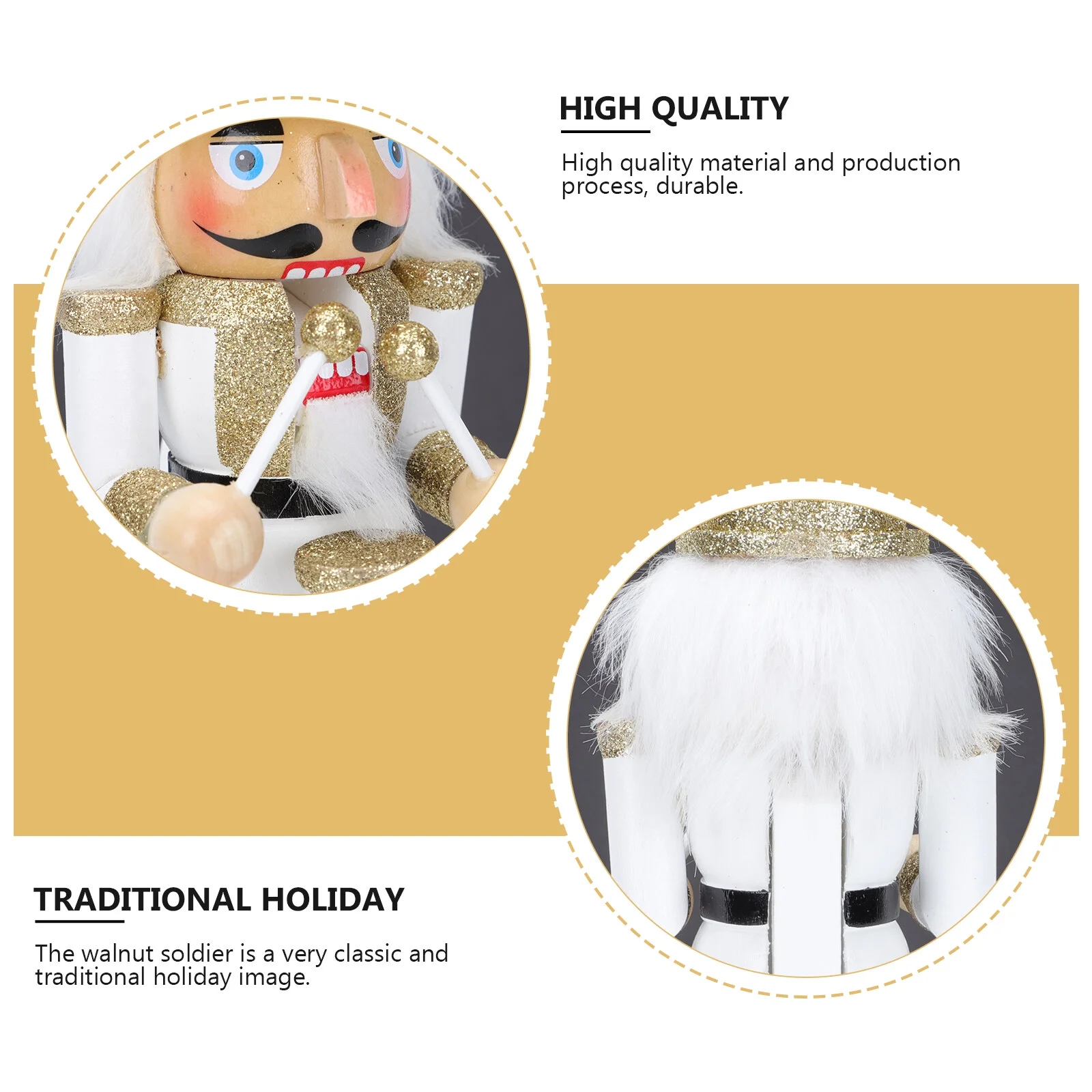 1Pc Nutcracker Soldier Adornment Wooden Puppet Doll Craft Christmas Decor White