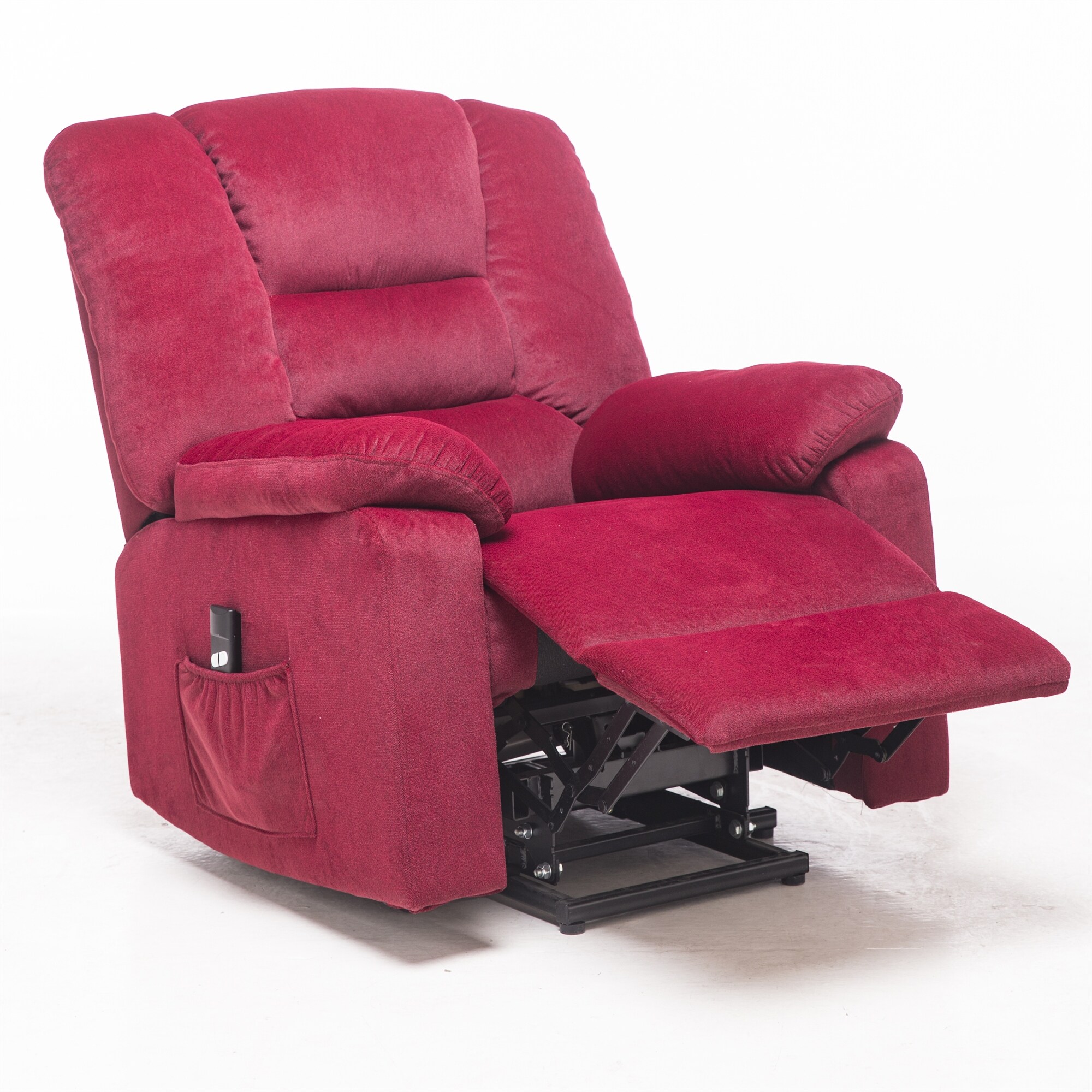 Arttoreal 3PCS Rattan Wicker Adjustable Recliner Chair with Cushion and Glass Top Side Table,Red