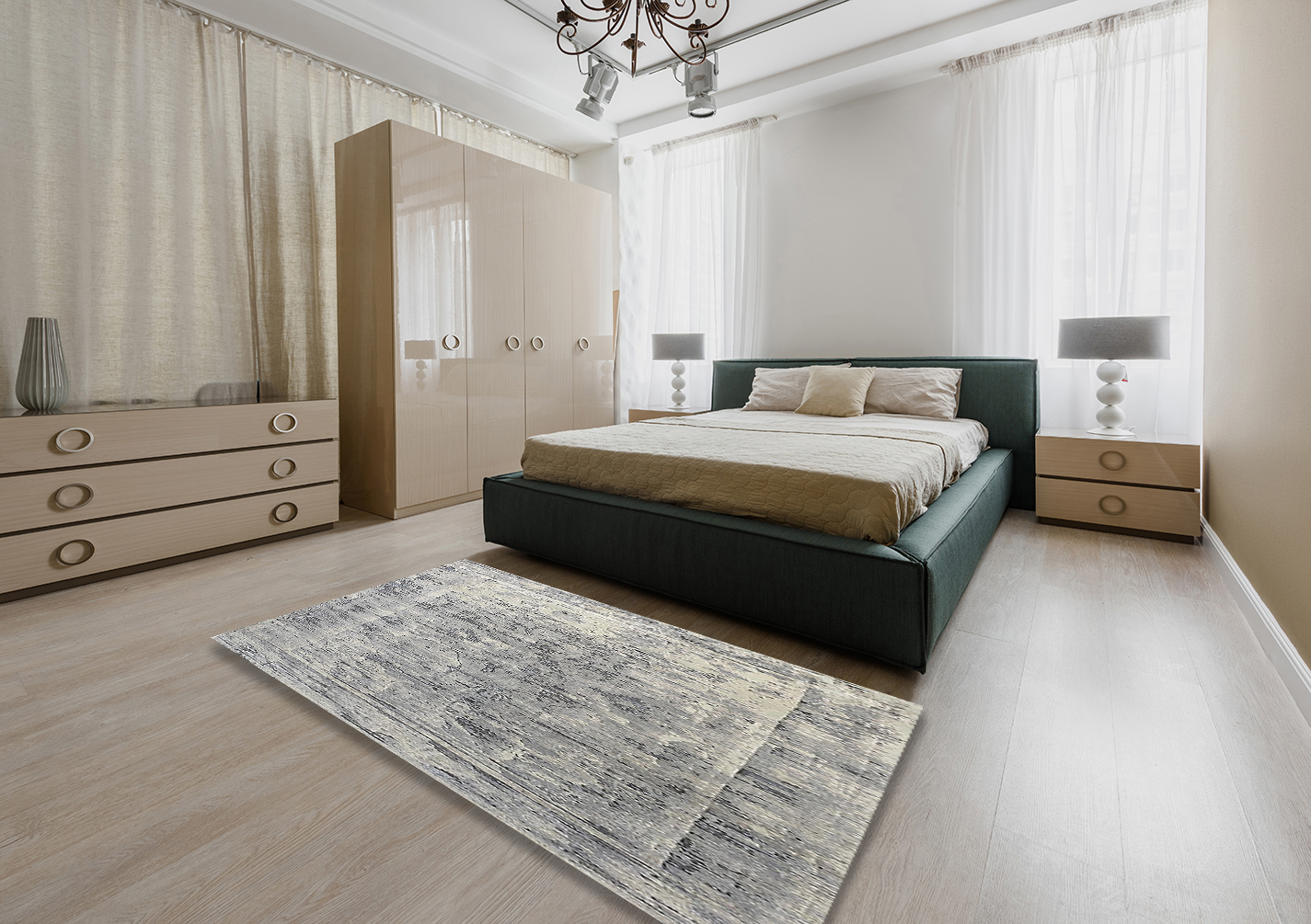 Ahgly Company Indoor Rectangle Mid-Century Modern Silver Pink Oriental Area Rugs, 3' x 5'