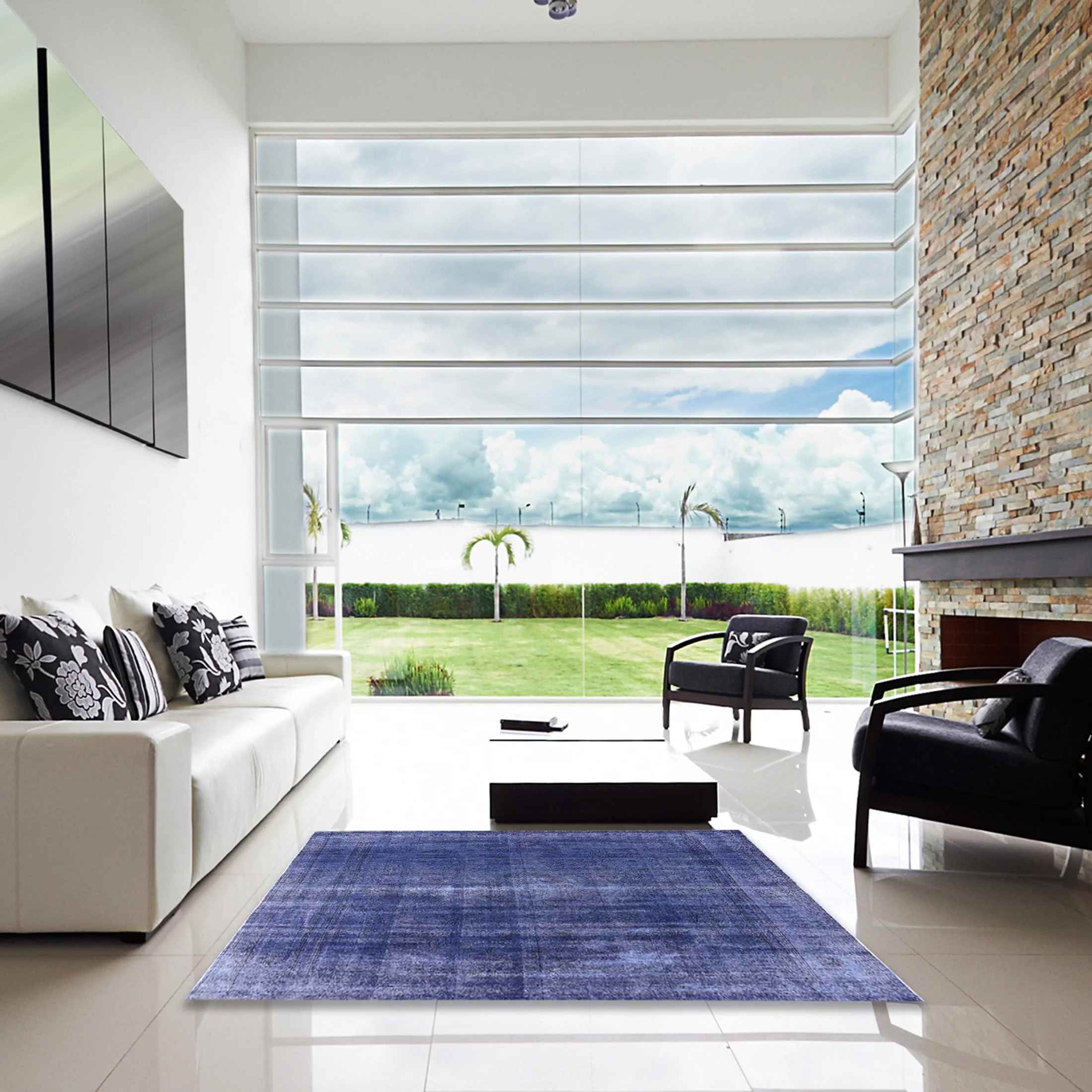 Ahgly Company Indoor Rectangle Mid-Century Modern Purple Oriental Area Rugs, 2' x 5'