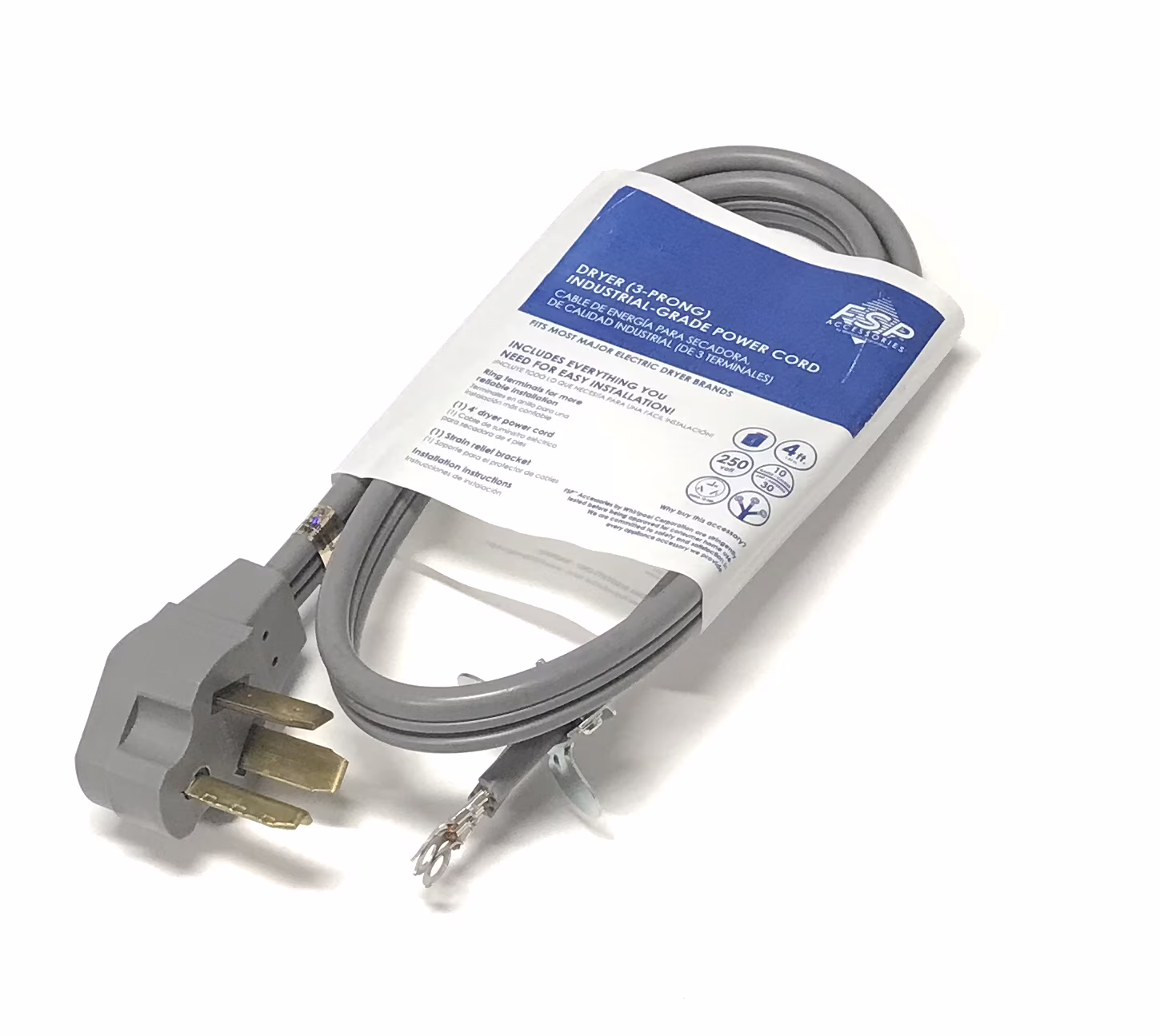 Prime RD100304 3-Pole 3-Wire SRDT 30A 125/250-Volt Dryer Cord, Gray, 4-Feetm M5282