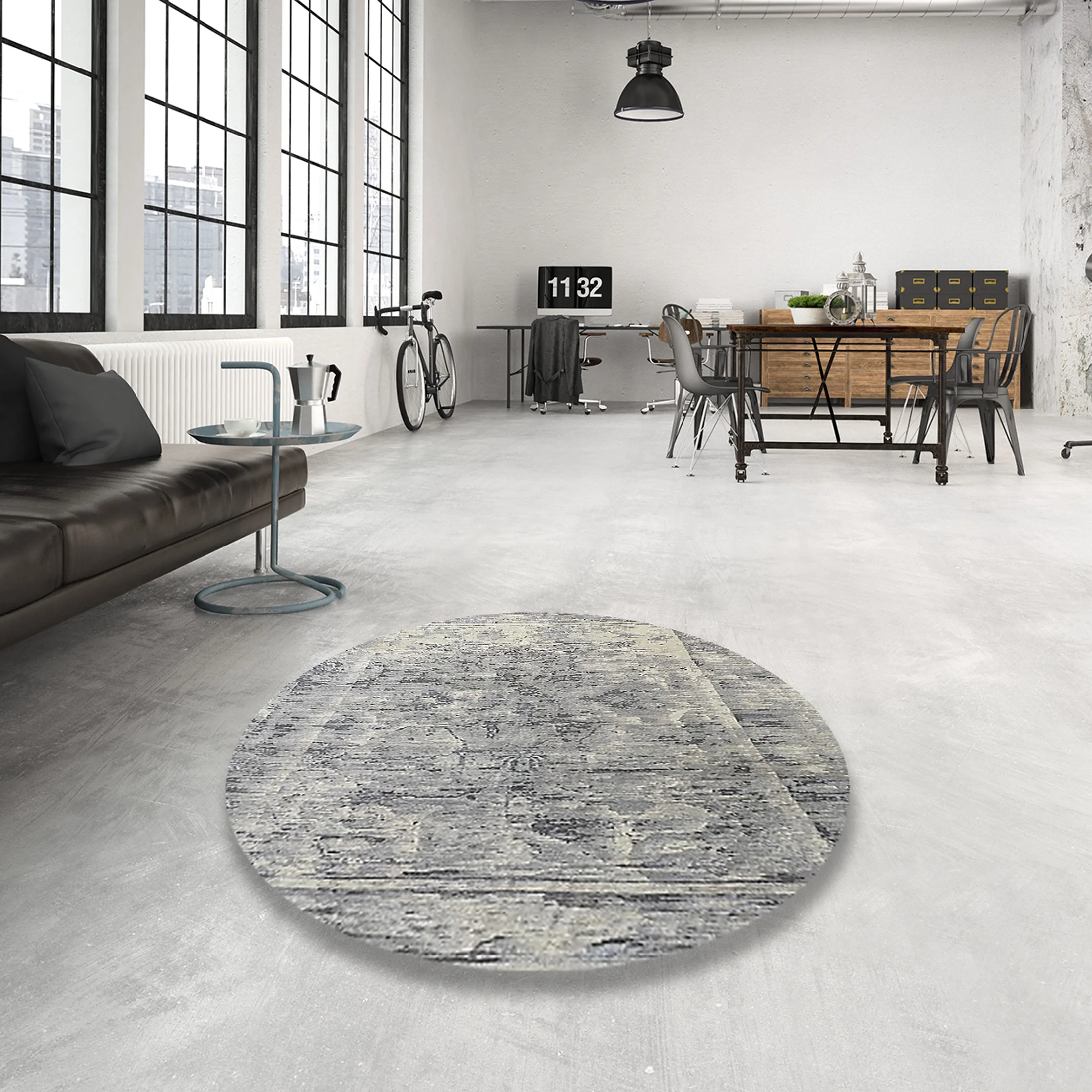 Ahgly Company Indoor Round Mid-Century Modern Brown Sand Brown Oriental Area Rugs, 3' Round