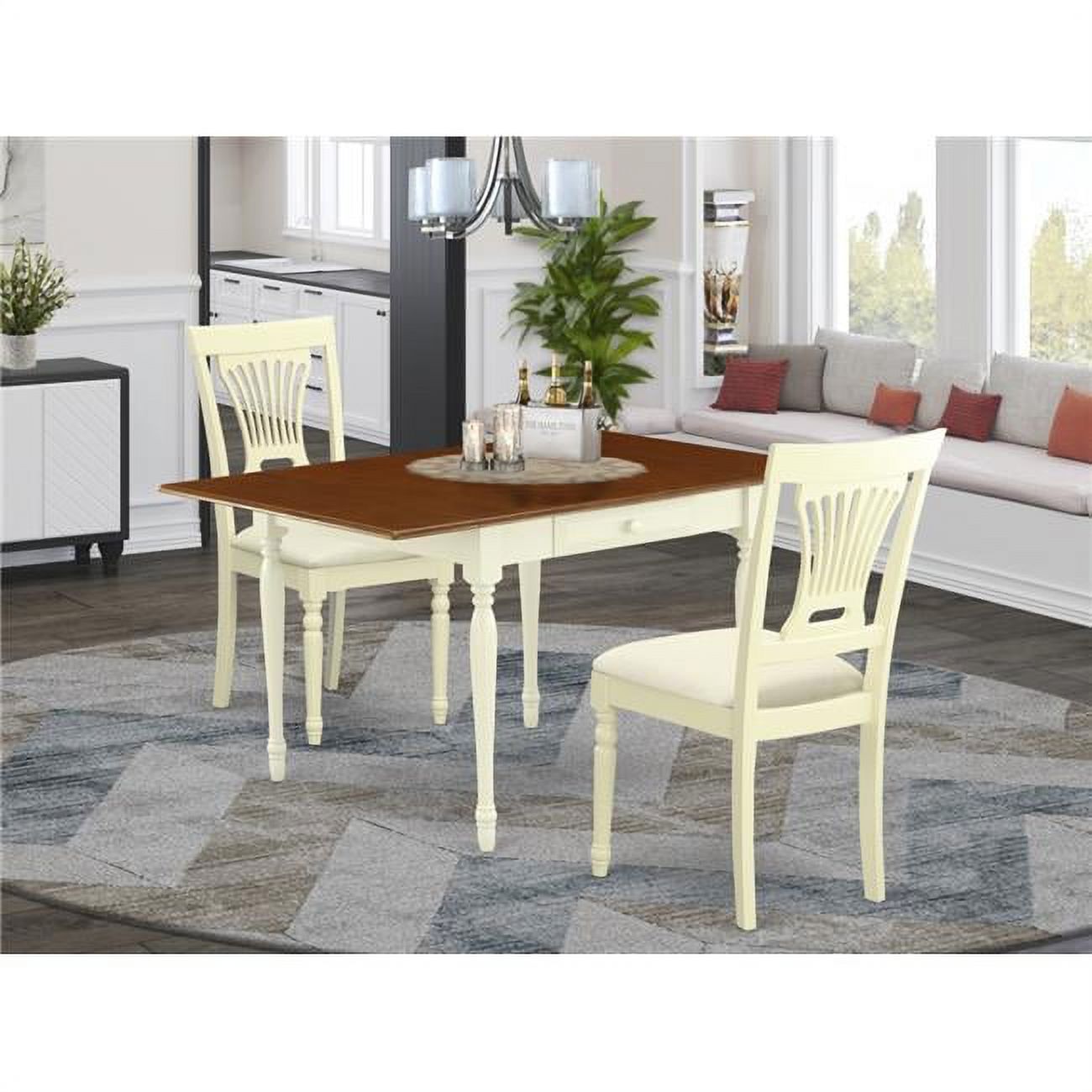 East West Furniture Monza 3-piece Dining Set with Linen Seat in Cherry