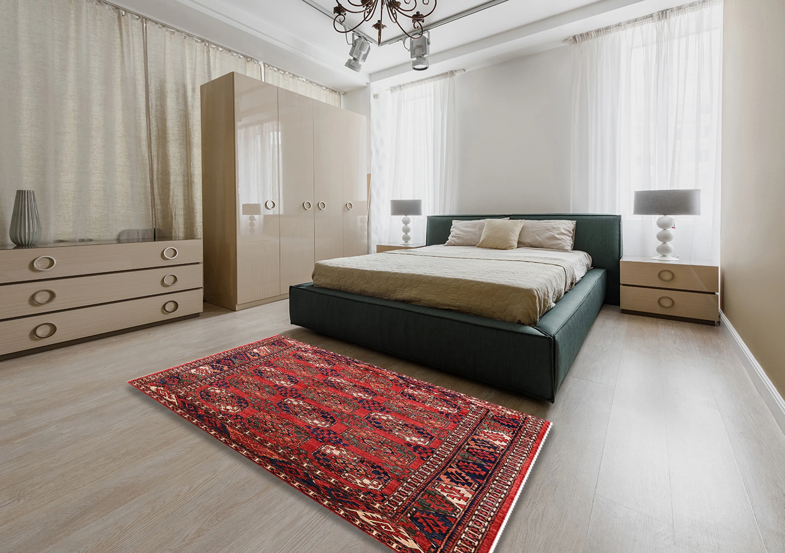 Ahgly Company Indoor Rectangle Mid-Century Modern Red Oriental Area Rugs, 2' x 3'