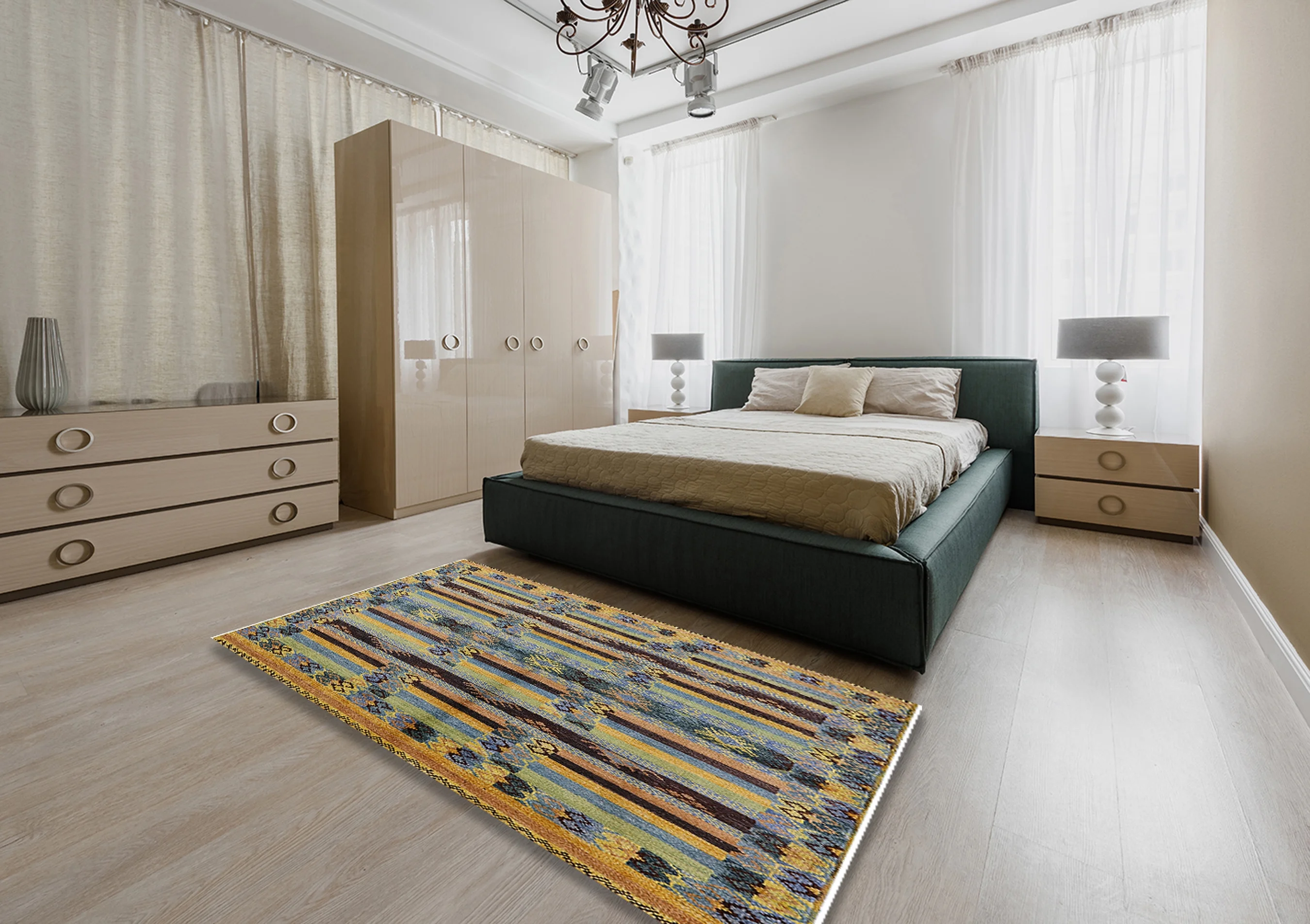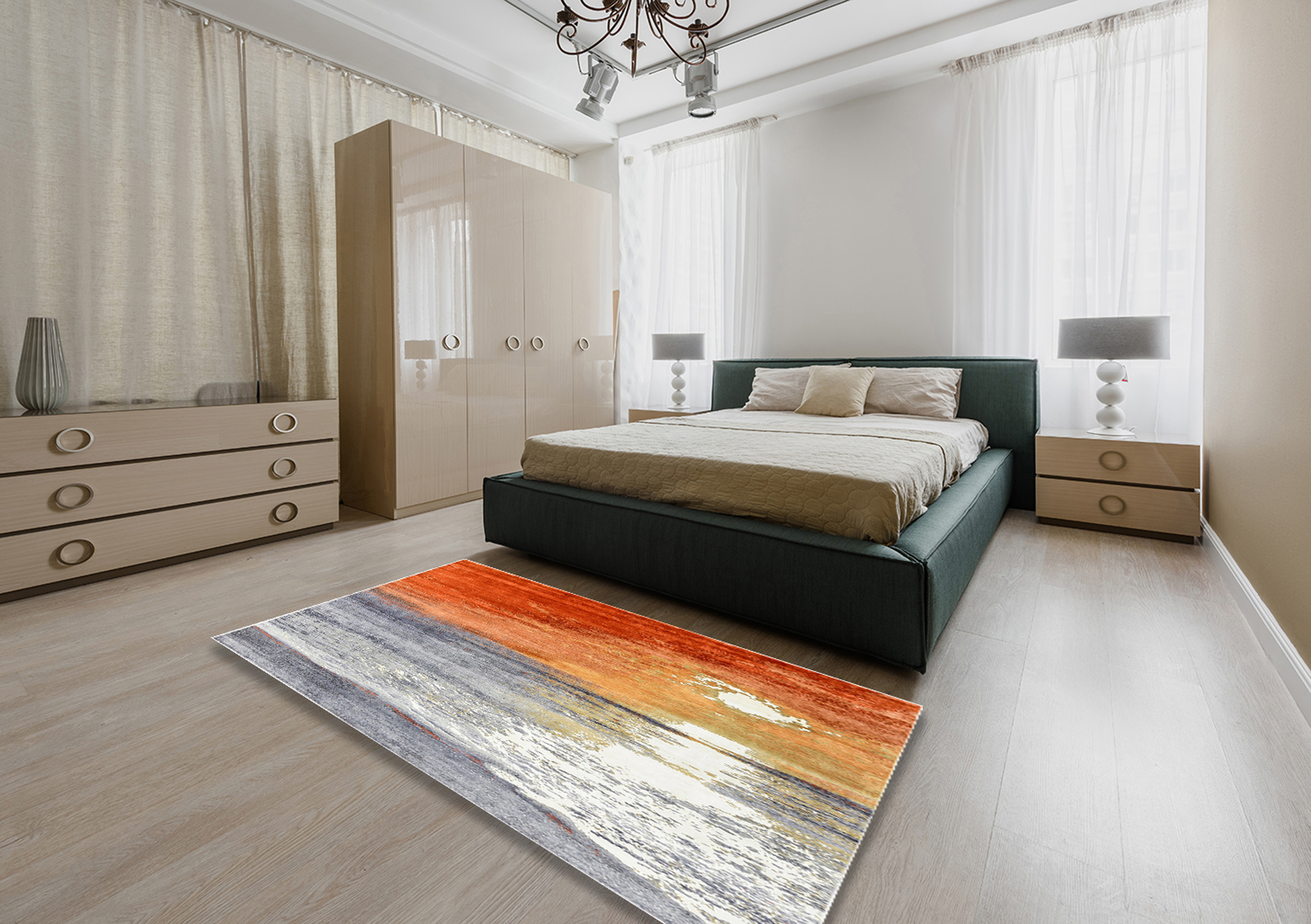 Ahgly Company Indoor Rectangle Mid-Century Modern Desert Sand Beige Oriental Area Rugs, 2' x 5'
