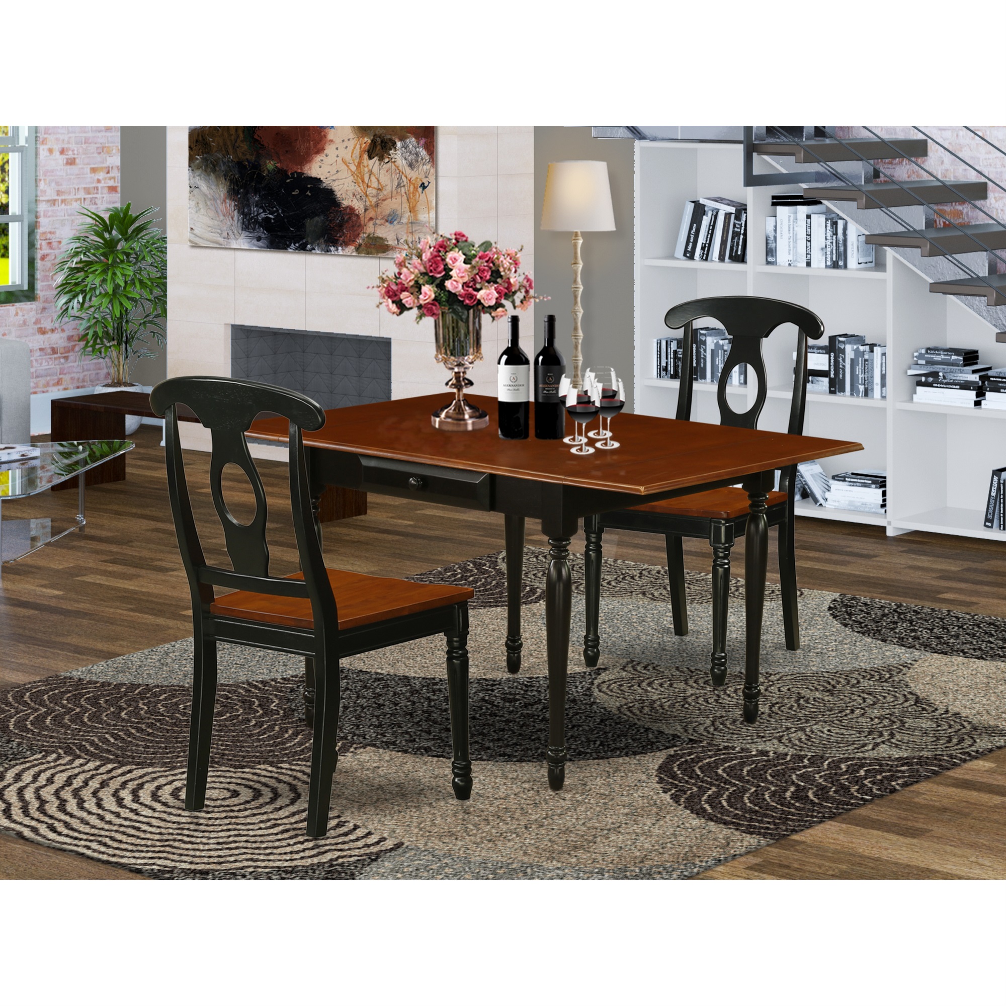 East West Furniture Monza 3-piece Wood Kitchen Table Set in Black and Cherry
