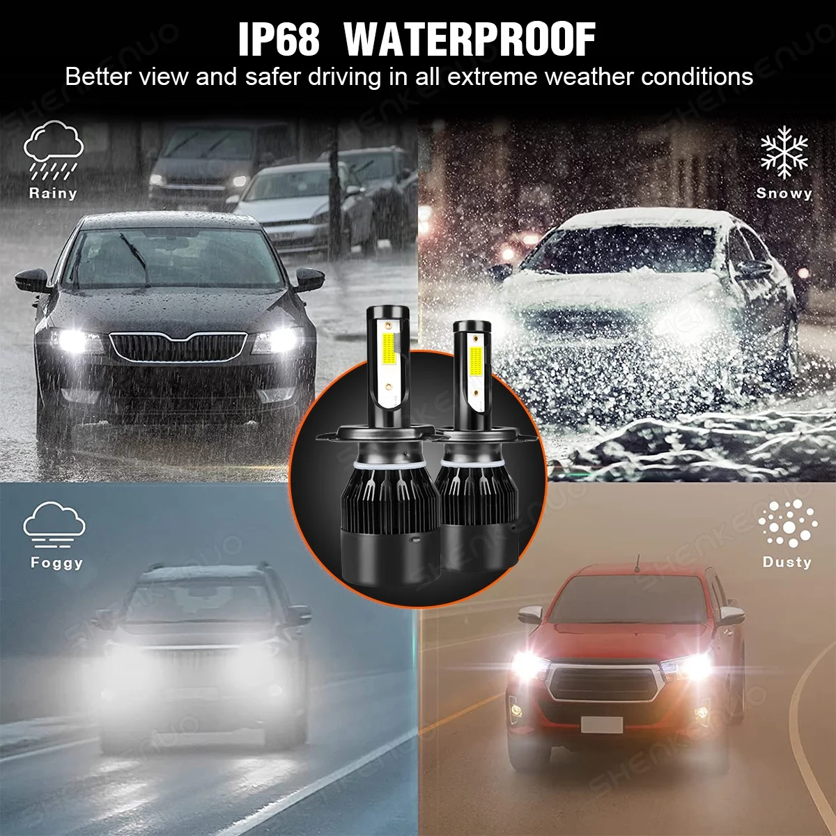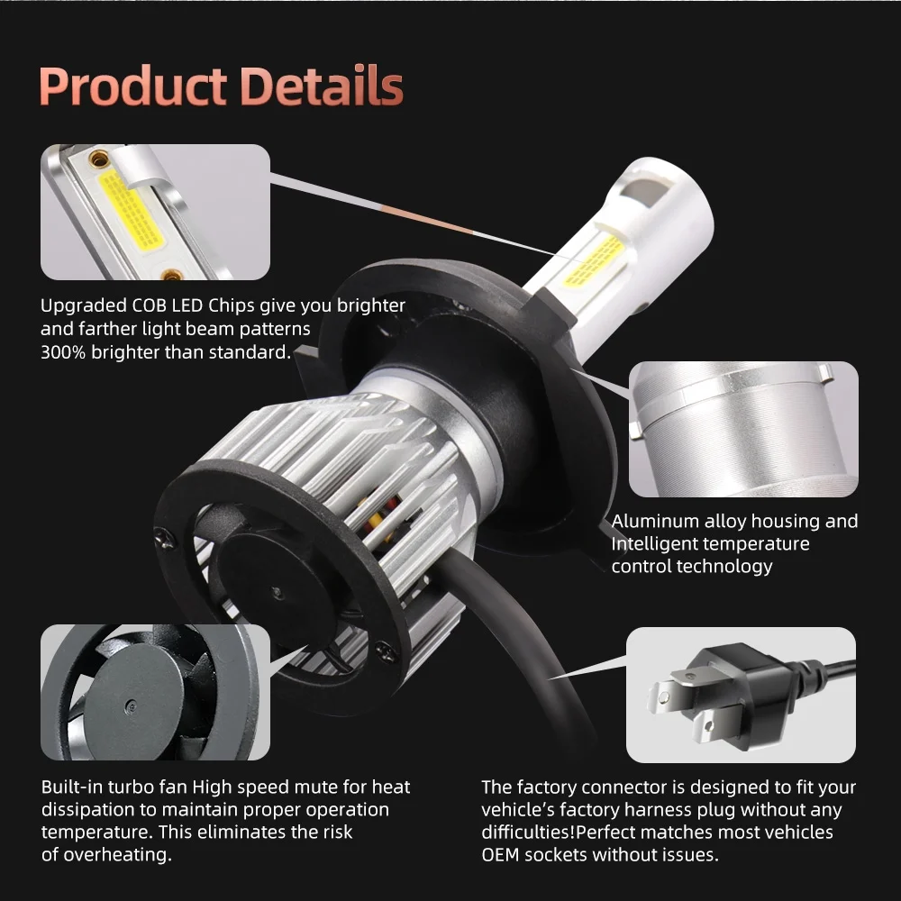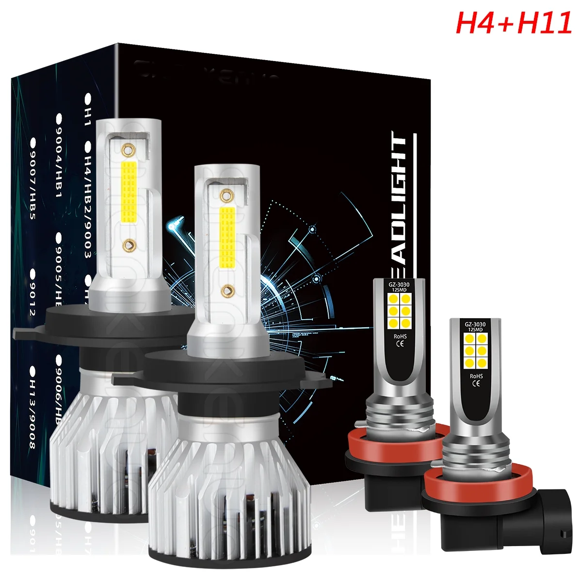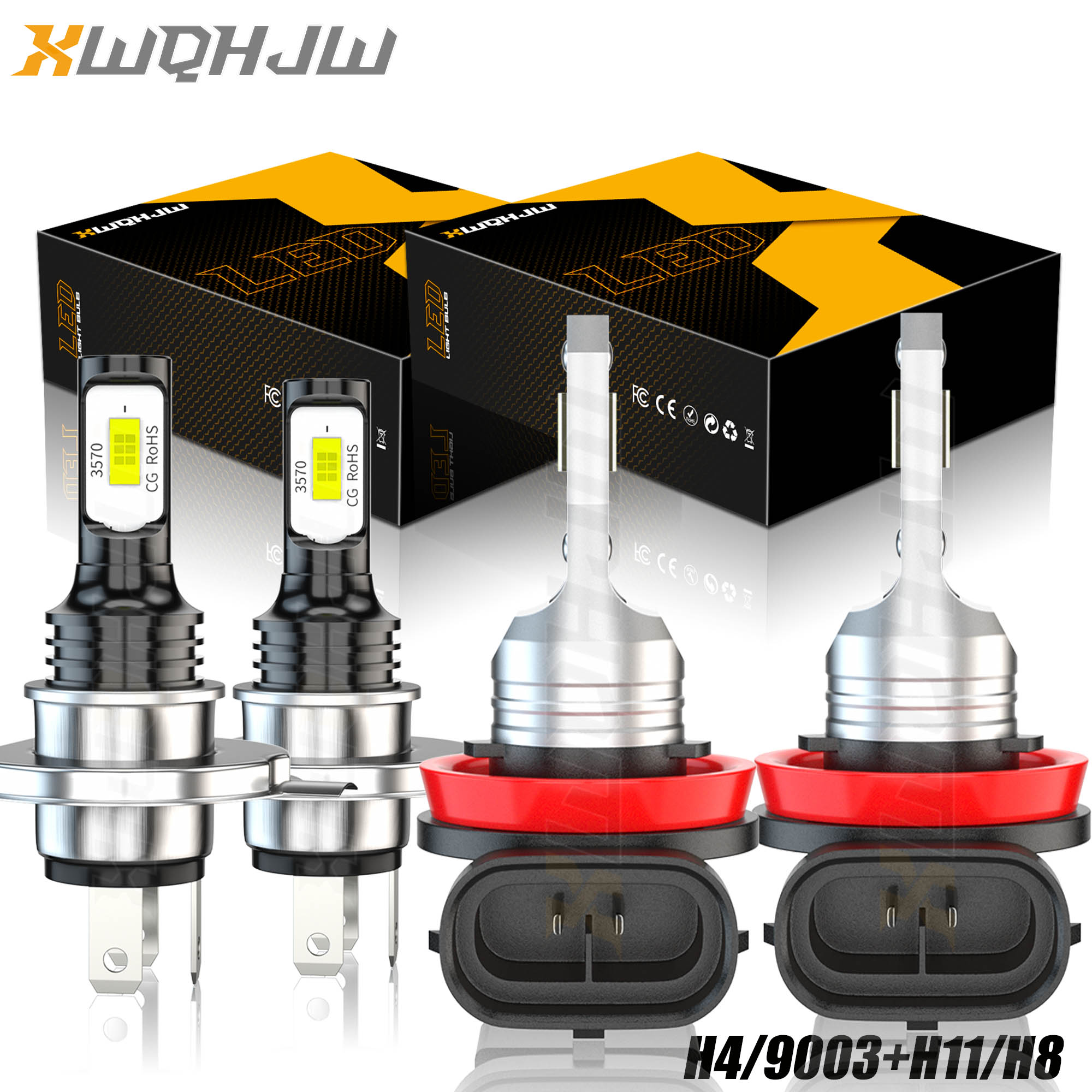 H4 High&Low Beam+H11 Fog Light for Mitsubishi Mirage 2014-2019 LED Headlight Bulbs 4pcs